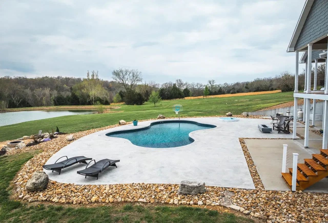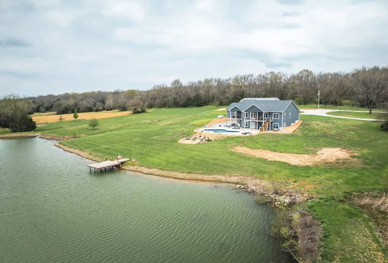 Dawnview Estate is located close to Truman Lake and minutes from Sterett Creek Marina! This stunning 4,400 m/l sq ft home offers 2x6 exterior walls with spray foam insulation, heated bathroom floors, and accent lighting inside and out. The kitchen boasts a granite countertop, quartz island, and a hidden giant walk-in pantry. Also a 40x60 shop with a 16x40 lean to and 400m/l sqft living quarters. Outside, enjoy a pool and spa area less than two years old and a large pond stocked with Bass and panfish, and fruit trees have been planted as well. The property also includes, a hidden safe room accessed through a bookcase, and breathtaking sunrise and sunset views to watch while enjoying the sights and sounds of nature. Property to be surveyed prior to closing.