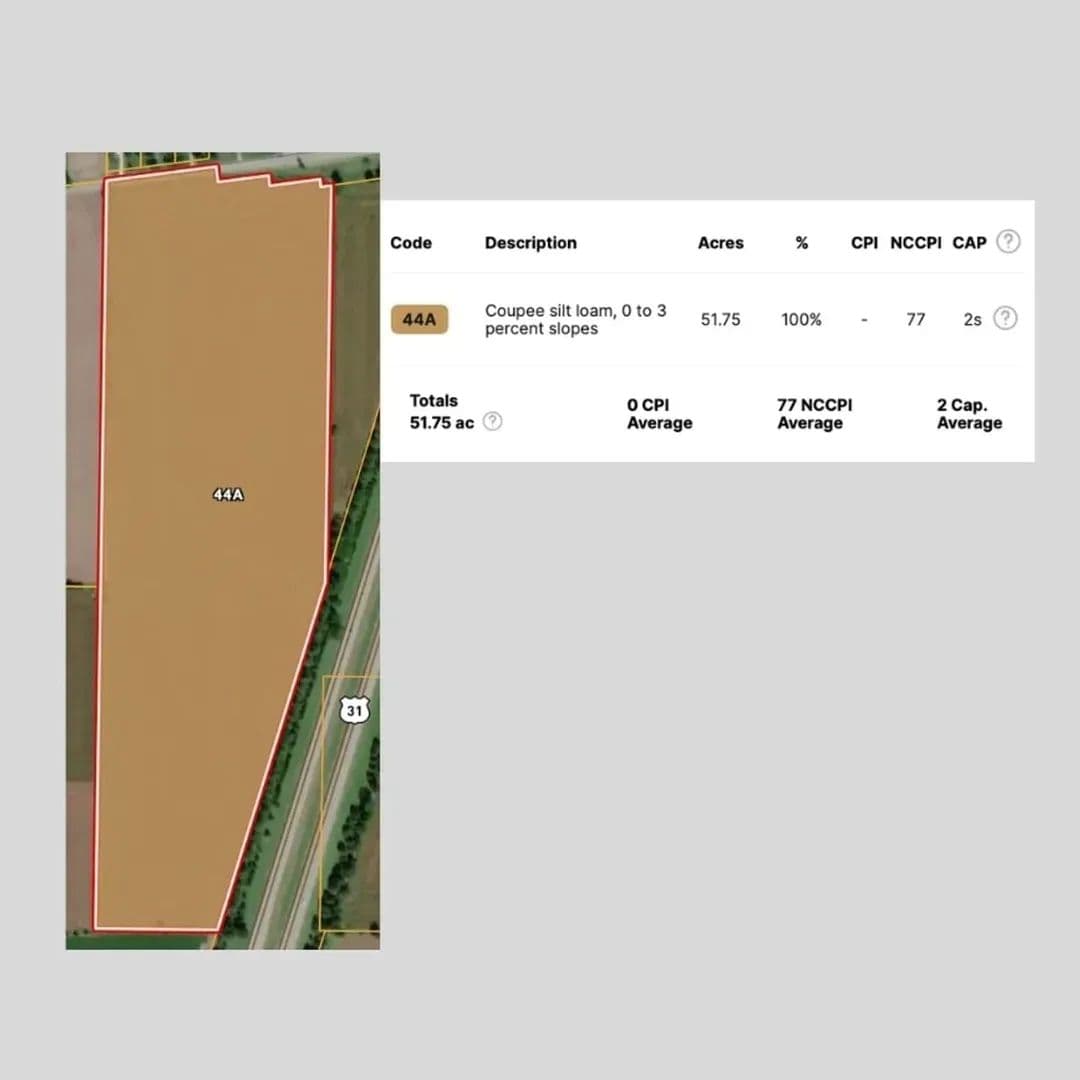This flat acreage is located in a rapidly growing area, offering excellent potential for both agricultural use and long-term investment. The property boasts highly productive, tillable land, making it an ideal choice for farming or development. With all acreage being plantable and situated in a path of growth, this property offers significant upside for future appreciation.