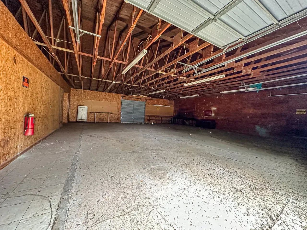 Large shop area with roll-up doors – great for equipment storage, auto work, or warehouse use