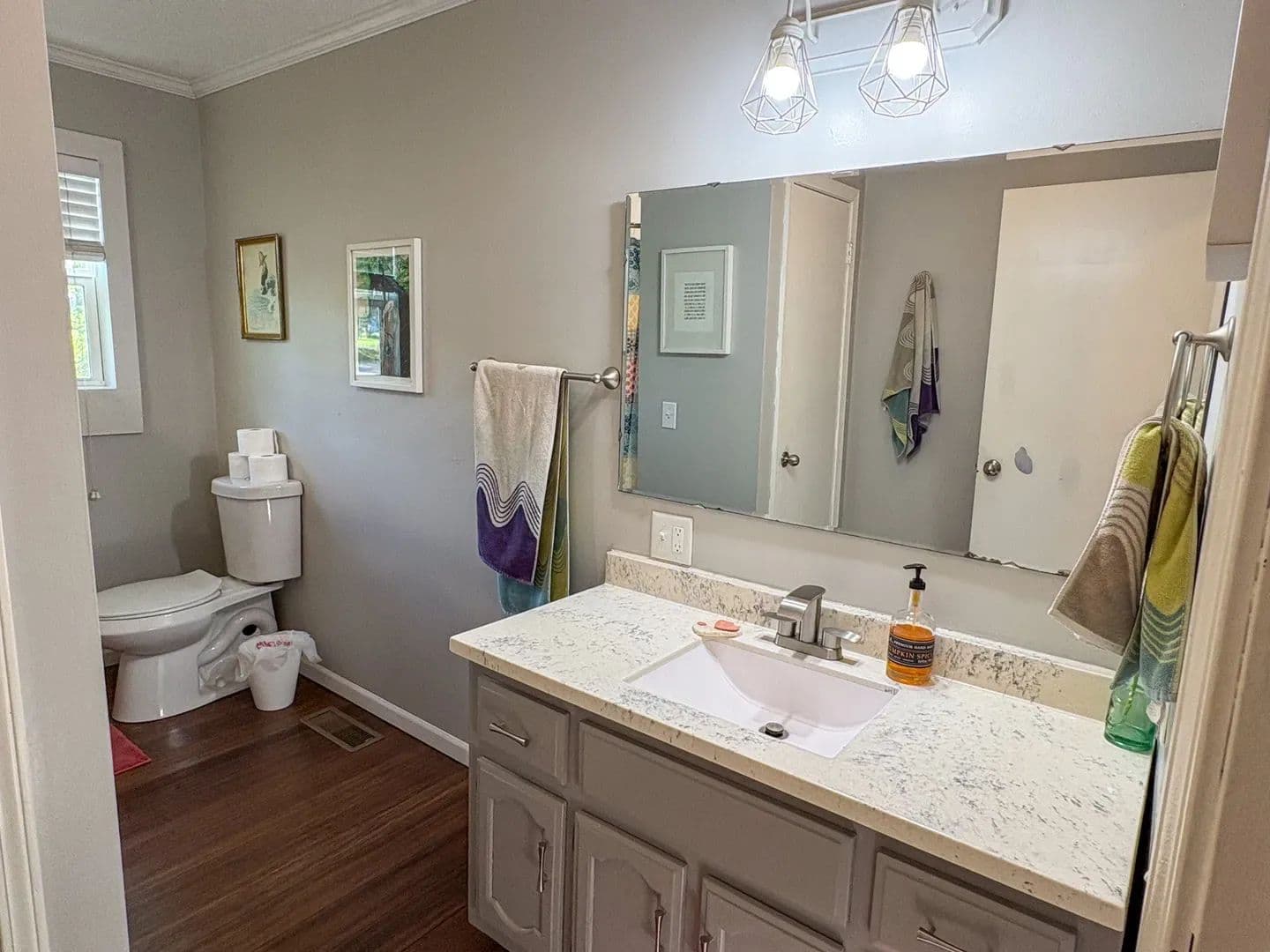 Improvements The home spans 1,951+/- square feet with an amazing kitchen that offers stainless steel appliances, an island and ample countertop space. The home also has an open concept living and dining room that walks out onto the back deck, as well as a master suite in the back, two additional nice-sized bedrooms, an additional bathroom and another room that could be used as a non-conforming bedroom or another office. The home also features new windows throughout, a mud/laundry room and an attached oversized one car garage. The dining room walks out to a beautiful deck space with a fire pit just below, offering the ideal location for entertaining guests or having your morning coffee.