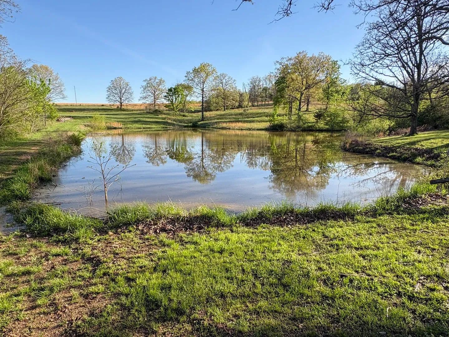 The Chapel Road Farmstead offers a beautiful 3 bedroom / 2 bathroom remodeled farmhouse situated on 30+/- acres with multiple outbuildings, barns, a chicken coupe, green house and spring fed pond. All located less than 10 minutes from the city limits of Willow Springs! Land The 30+/- acres features 2 ponds, one of which is spring fed, a hay field, additional open ground that could be used for grazing and a gorgeous stand of hardwood timber. There is a trail that goes through the property and an abundance of wildlife that frequent it as well.