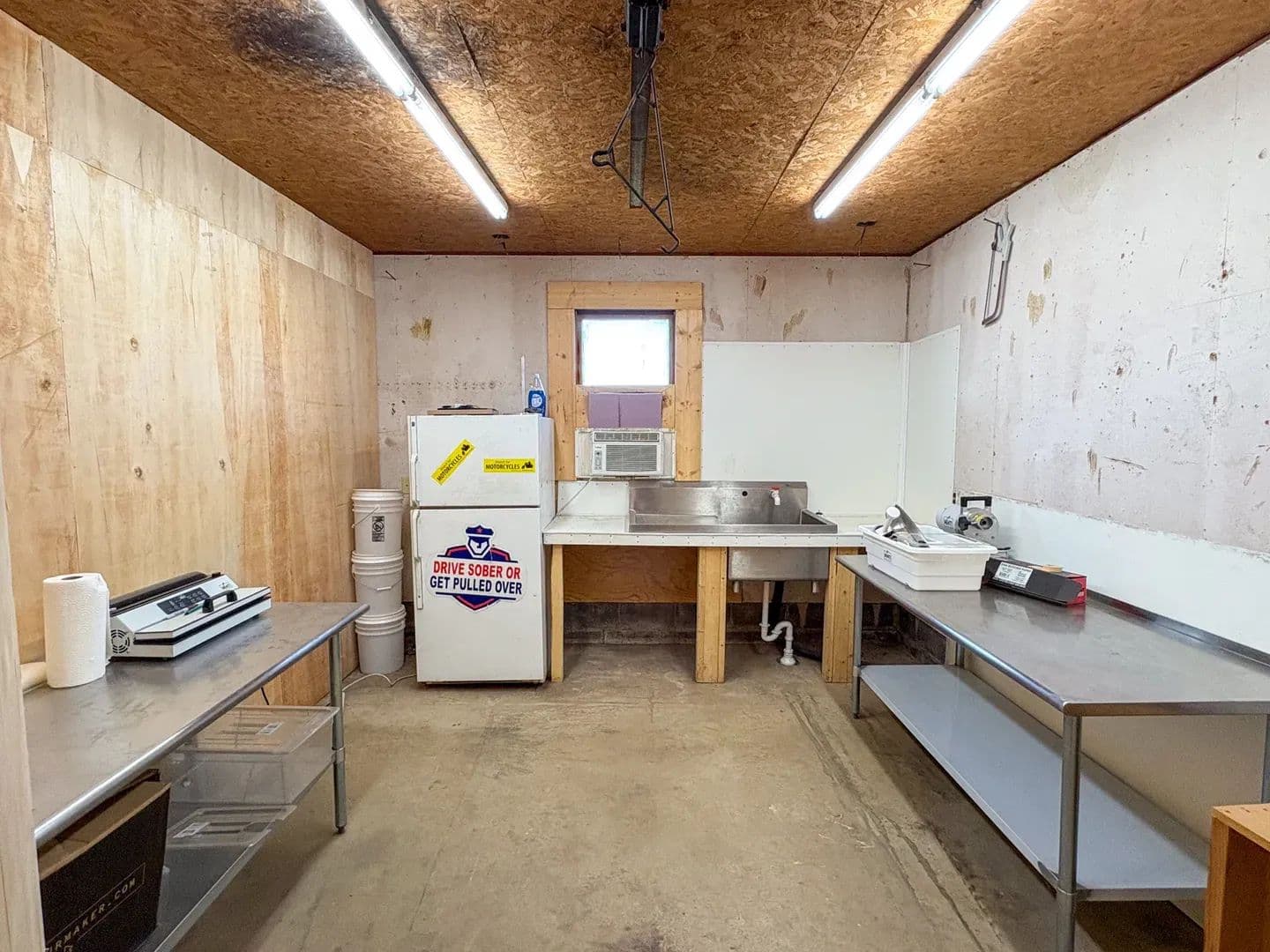 Outside, you will find a large 2 bay shop with plenty of room for equipment and tools, as well as an air conditioned room set up specifically for meat processing. There is also an incredible old style barn, chicken coupe, large greenhouse and hay barn.