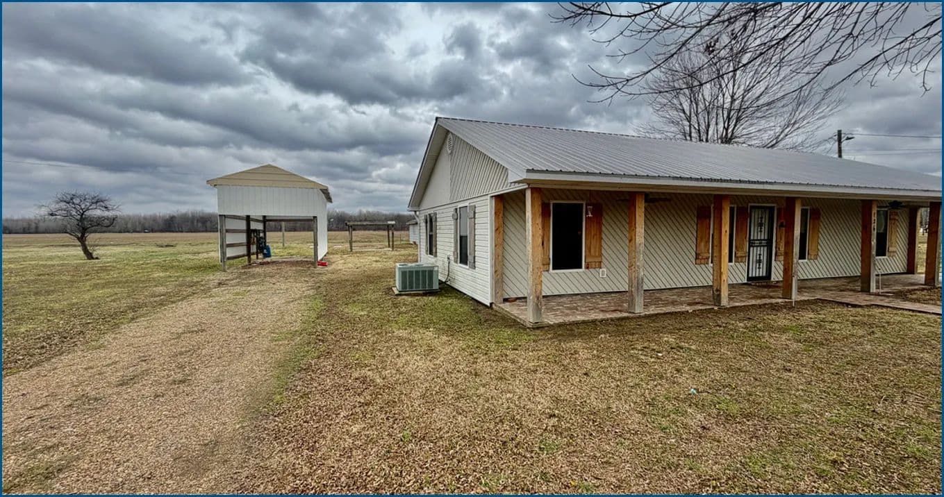 Explore this charming home for sale at 126 Interstate Rd, Shaw, MS. This property includes three bedrooms and two bathrooms and offers 1,722 square feet of living space. It is located on a 1.37-acre lot in Bolivar County, MS, and features a newly constructed covered carport with wooden beams. Additionally, the property's north side offers a site for another house to be built if desired. The spacious backyard provides plenty of room for storage and hobbies, including two versatile sheds and an additional RV shed with a hookup. Don't miss the opportunity to make this remarkable property your own! Call or text Anthony today to schedule your private showing!