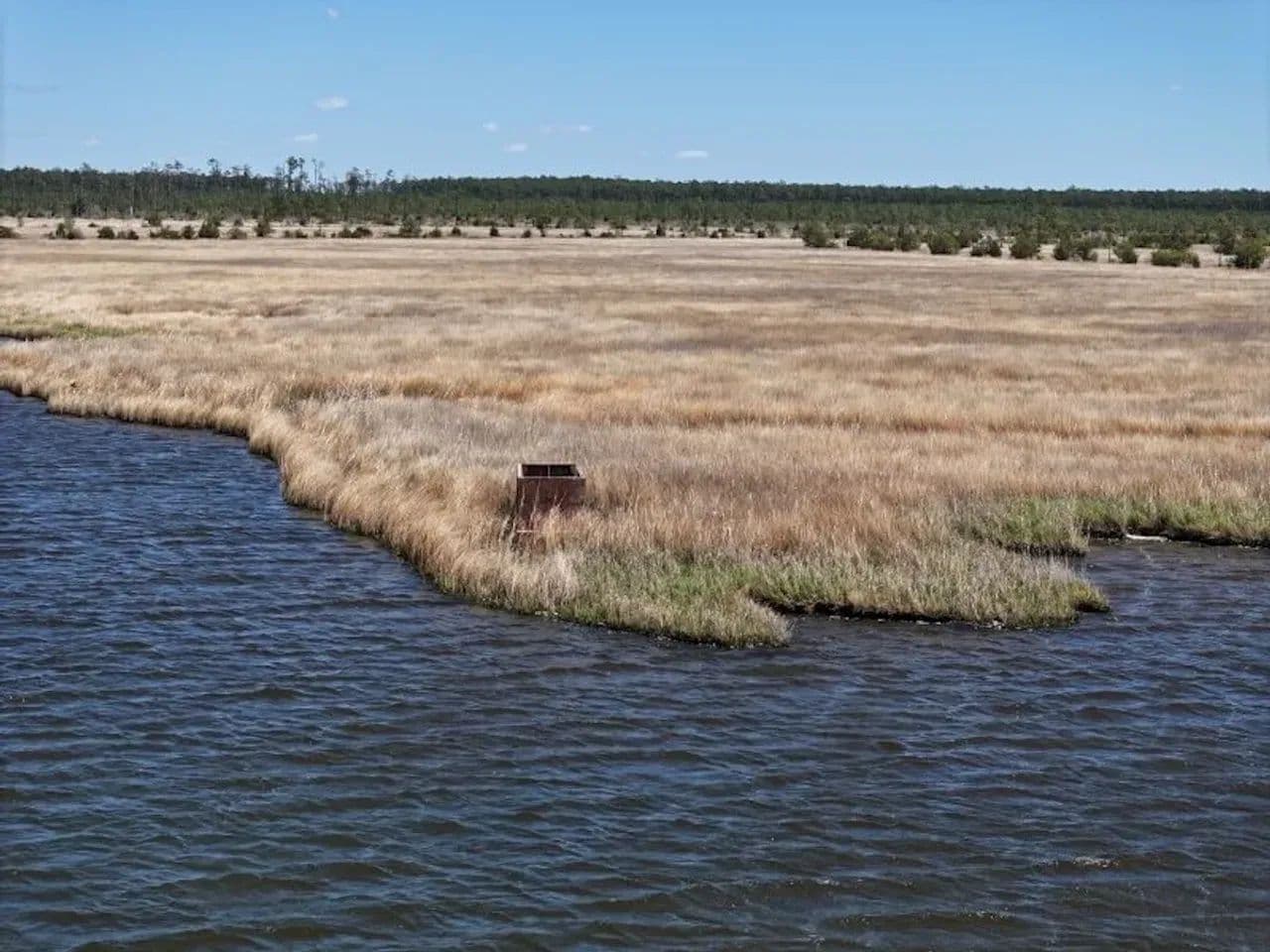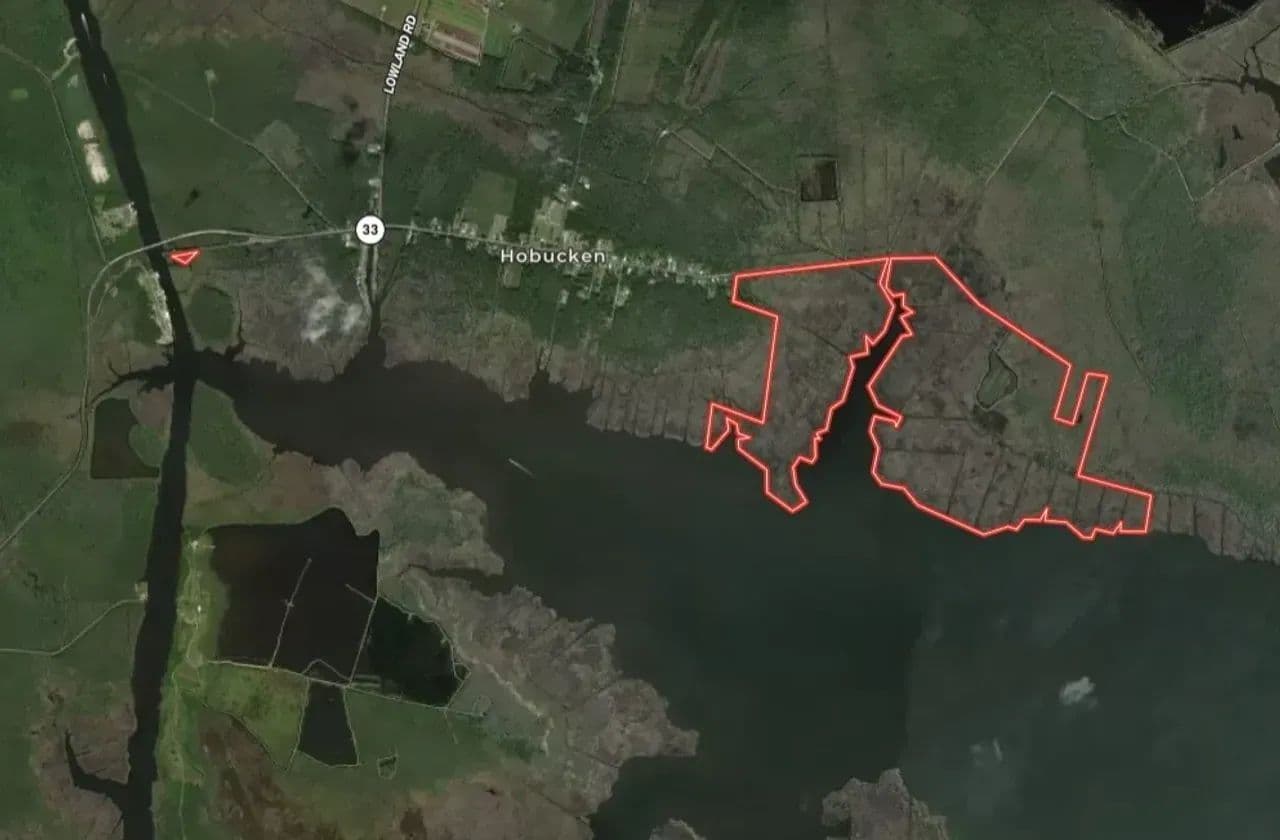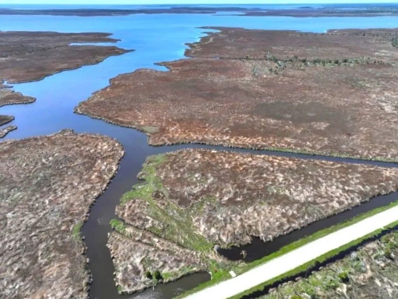 The impoundment features two hunting blinds—one in open water and another tucked into marsh grasses—accessible by vehicle via a dike with a water control station. Two additional small duck holes are within 400 yards, one accessible by boat and on foot.