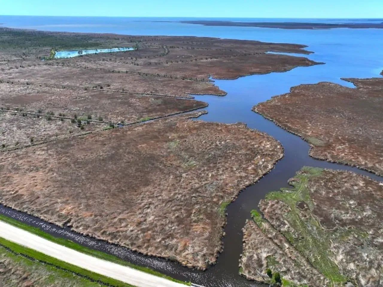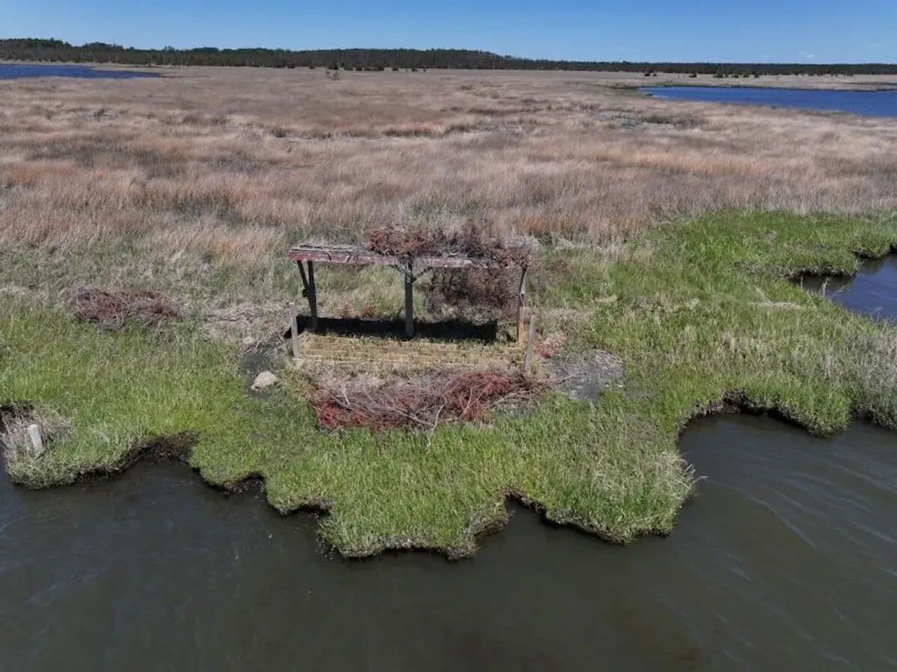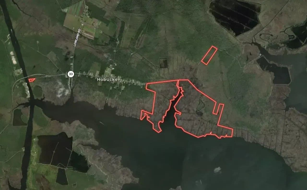 The impoundment features two hunting blinds—one in open water and another tucked into marsh grasses—accessible by vehicle via a dike with a water control station. Two additional small duck holes are within 400 yards, one accessible by boat and on foot.