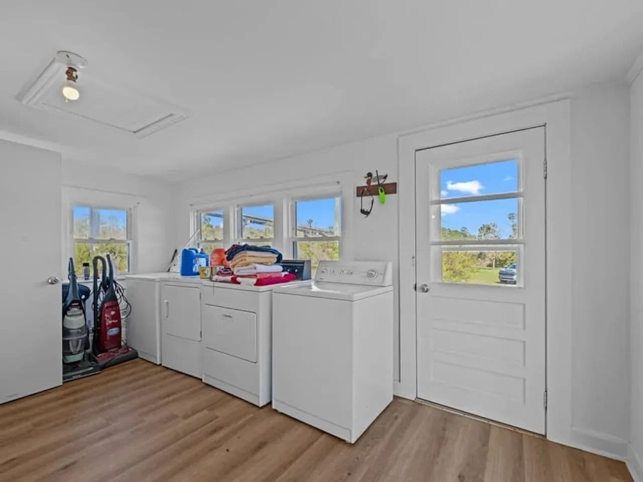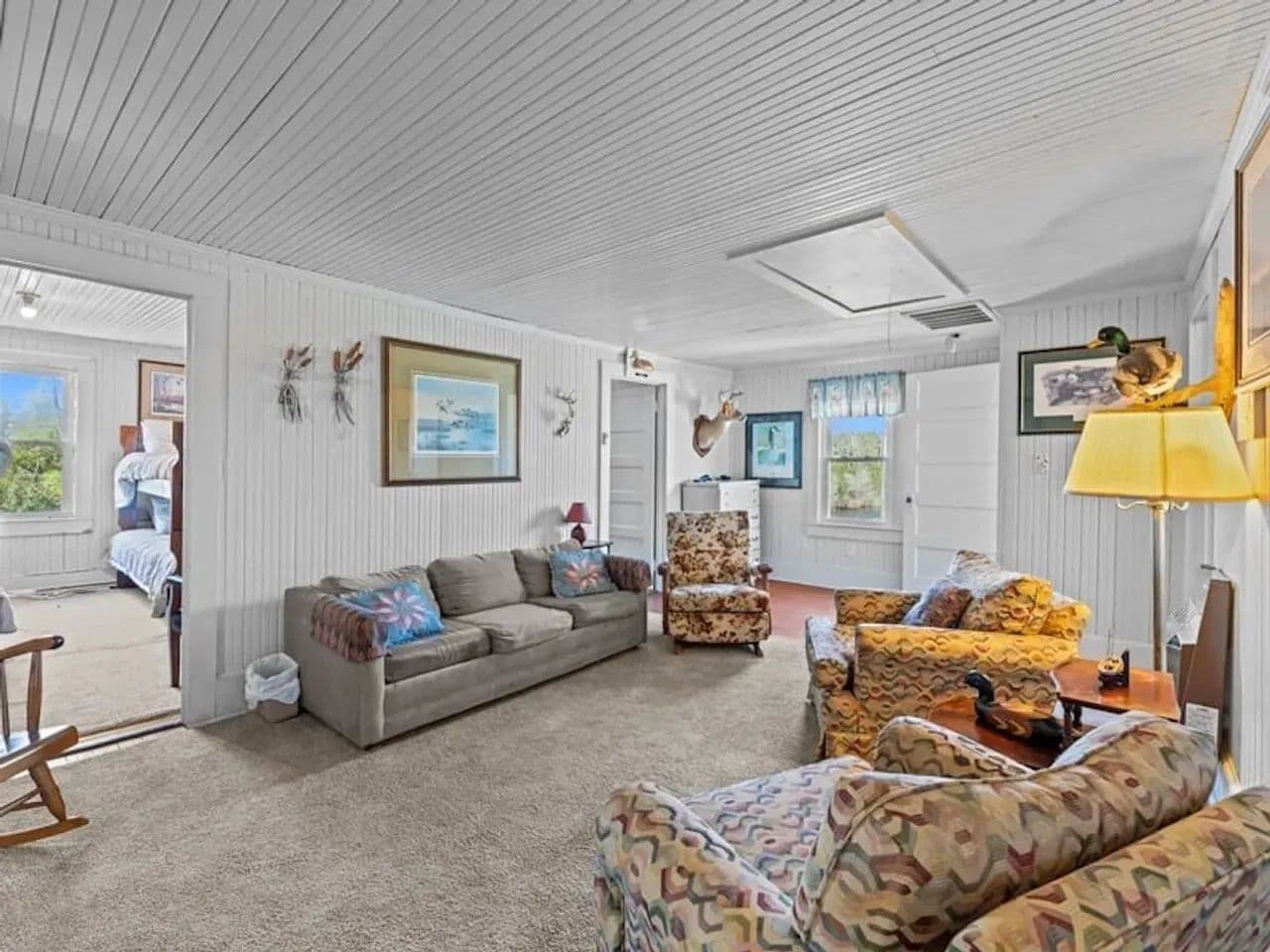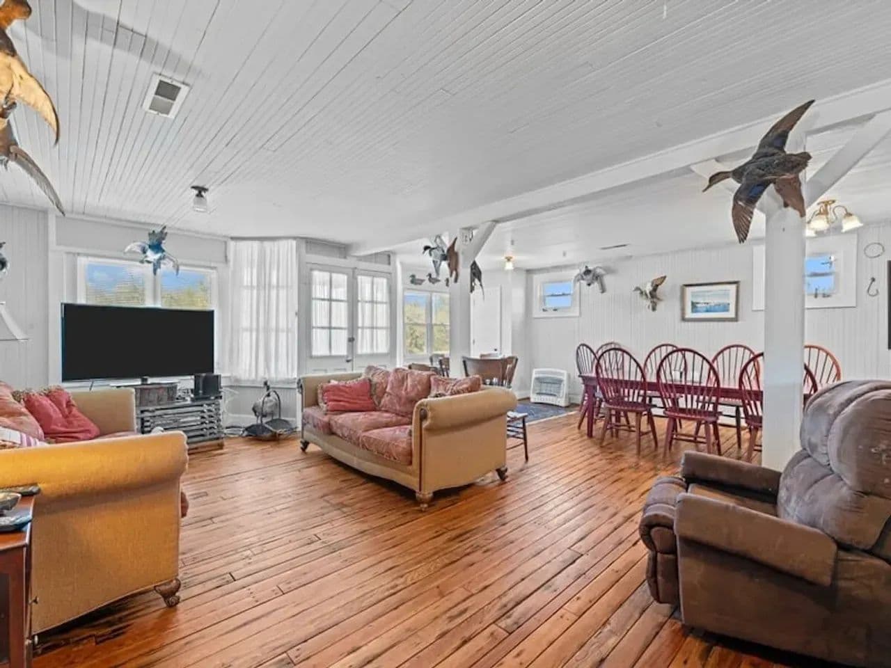 At the heart of the property is the historic Bridgehouse Duck Hunting Lodge. Built in 1939, this 2,923 sq ft, three-story lodge features 7 bedrooms and 4 bathrooms, accommodating up to 28 guests.