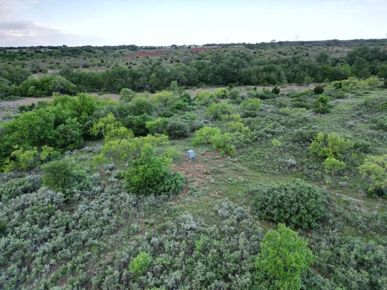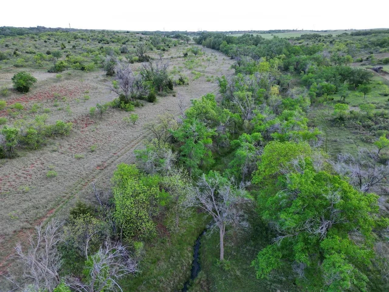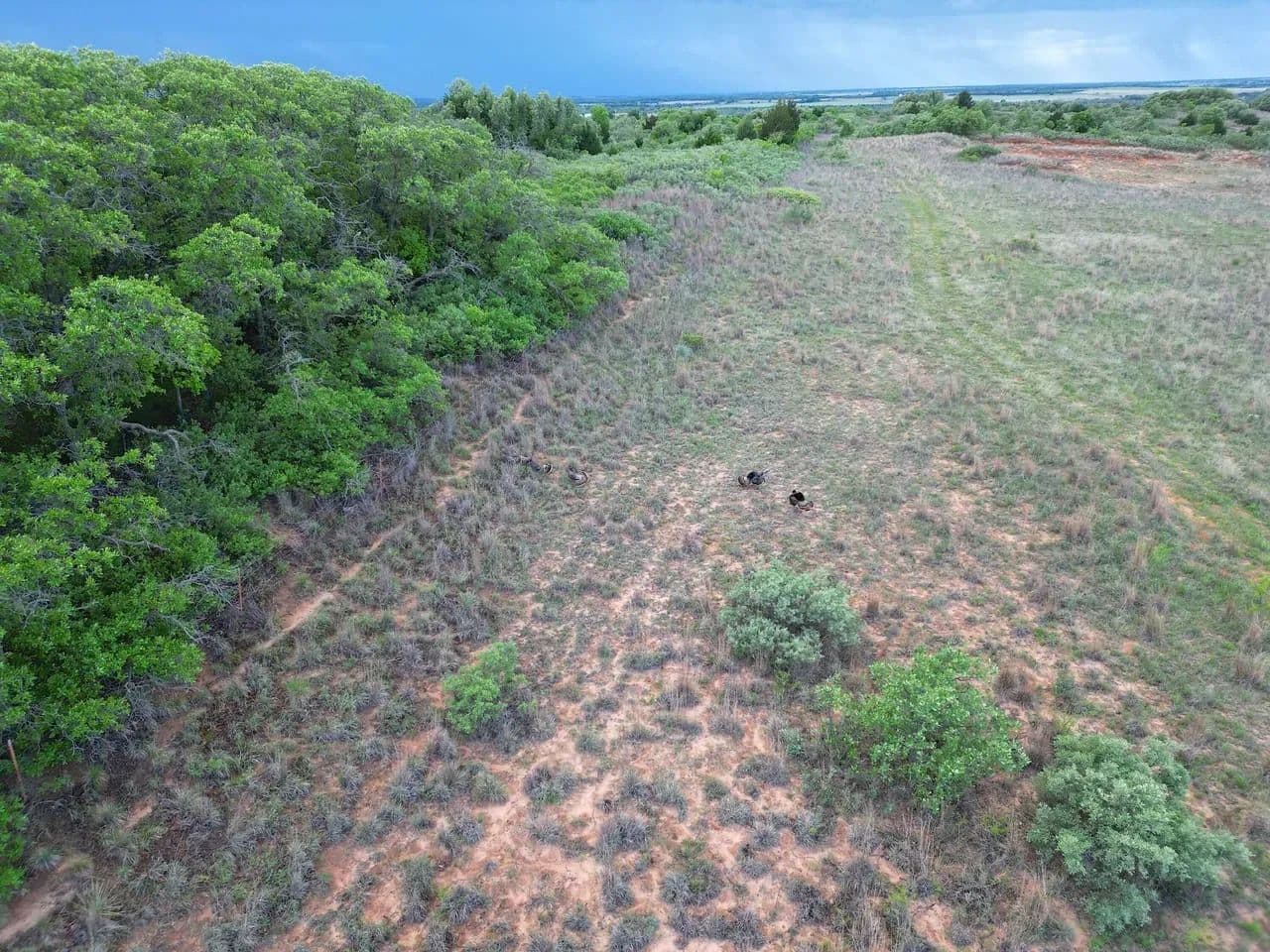 The land is full of wildlife like white-tailed deer, turkey, quail, and even a few wild hogs. There are open areas that are perfect for planting food plots and lots of trails for hiking or riding. The woods are filled with different kinds of trees like Black Locust, Black Walnut, Cottonwood, Elm, Honey Locust, and Post Oak. Thanks to hard work, there are only a few young cedar trees left. The land also has wild grapevines, some with thick trunks that could be used for starting a vineyard. You’ll also find wild plums and black currant bushes growing on the property.