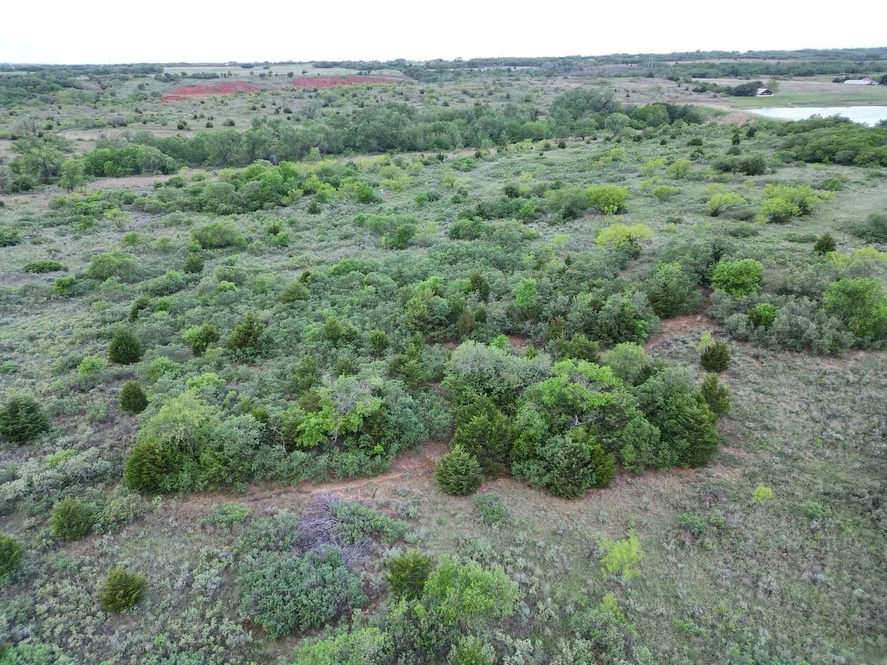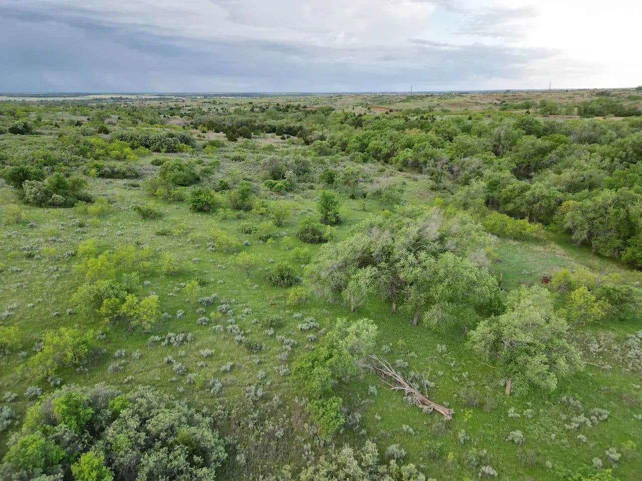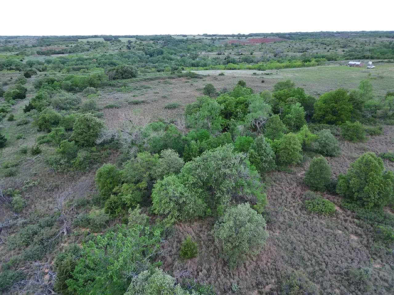 The land is full of wildlife like white-tailed deer, turkey, quail, and even a few wild hogs. There are open areas that are perfect for planting food plots and lots of trails for hiking or riding. The woods are filled with different kinds of trees like Black Locust, Black Walnut, Cottonwood, Elm, Honey Locust, and Post Oak. Thanks to hard work, there are only a few young cedar trees left. The land also has wild grapevines, some with thick trunks that could be used for starting a vineyard. You’ll also find wild plums and black currant bushes growing on the property.