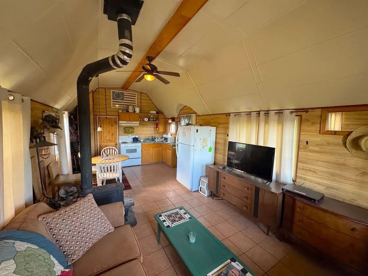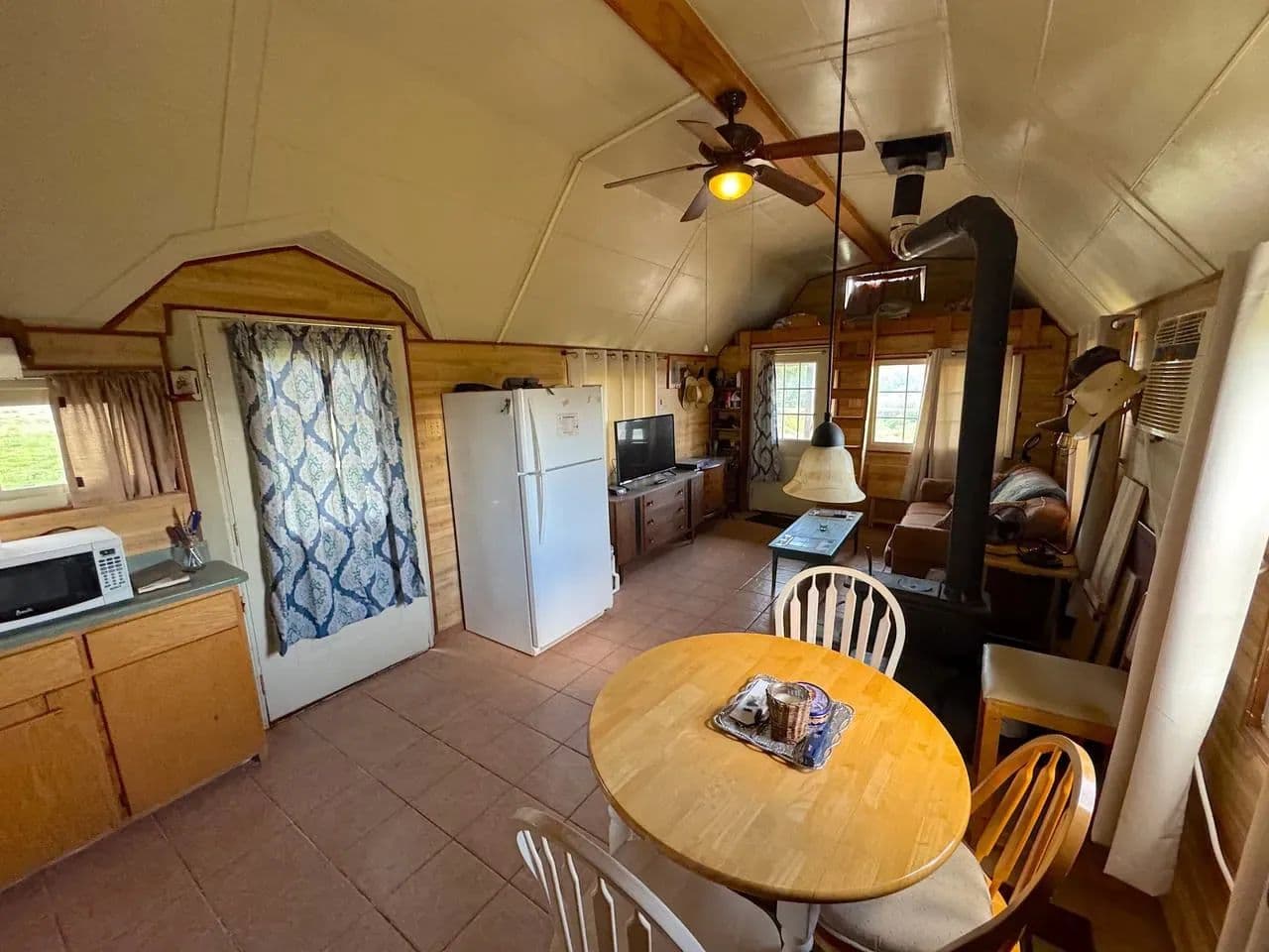 The cabin has all the amenities needed to insure a comfortable stay, electricity, hot water, air conditioning, and a wood-burning stove help make your stay pleasurable no matter the season.