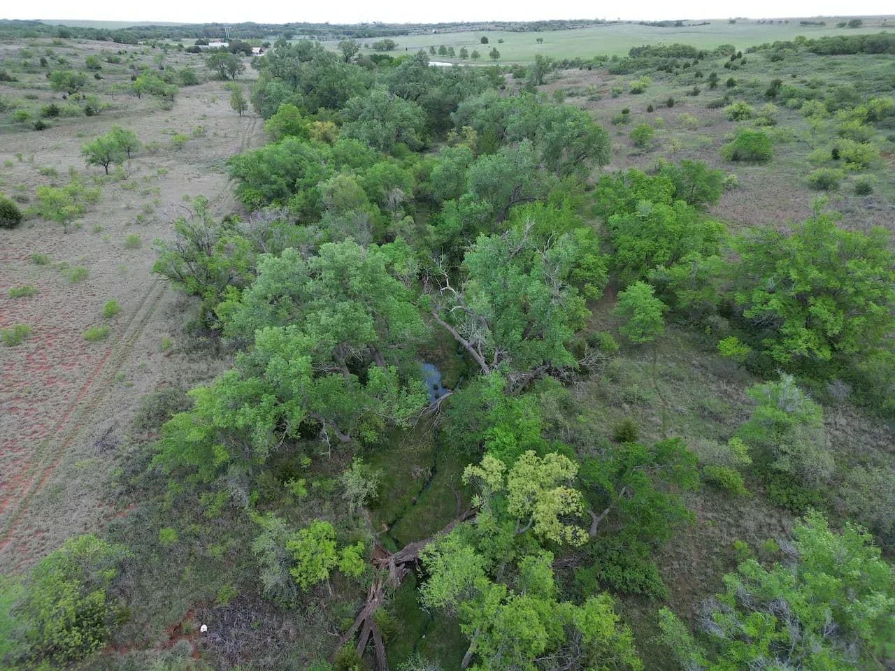 Cat Creek runs through the middle of the land from north to south. It flows all year round because it's fed by natural springs, some of which are right on the property. The creek has been flowing non-stop since 1906, even during dry years. You could build small dams along it if you wanted to.