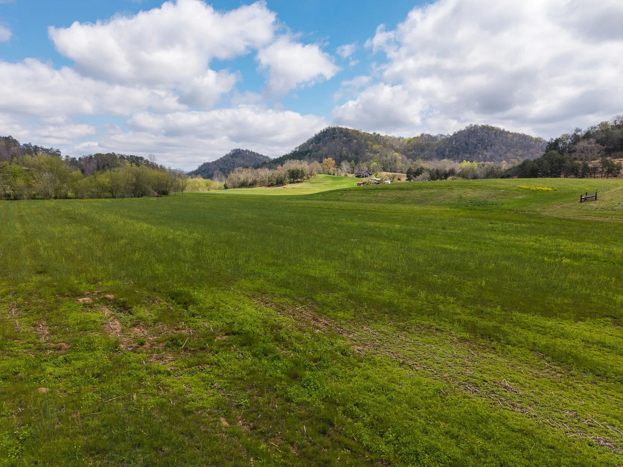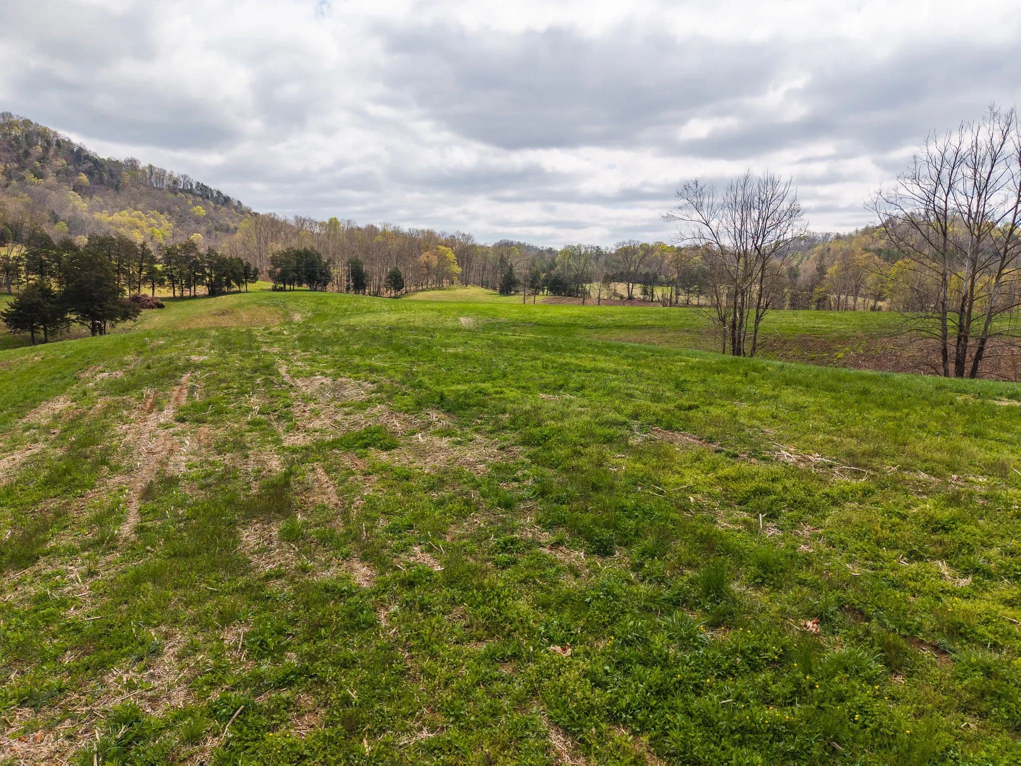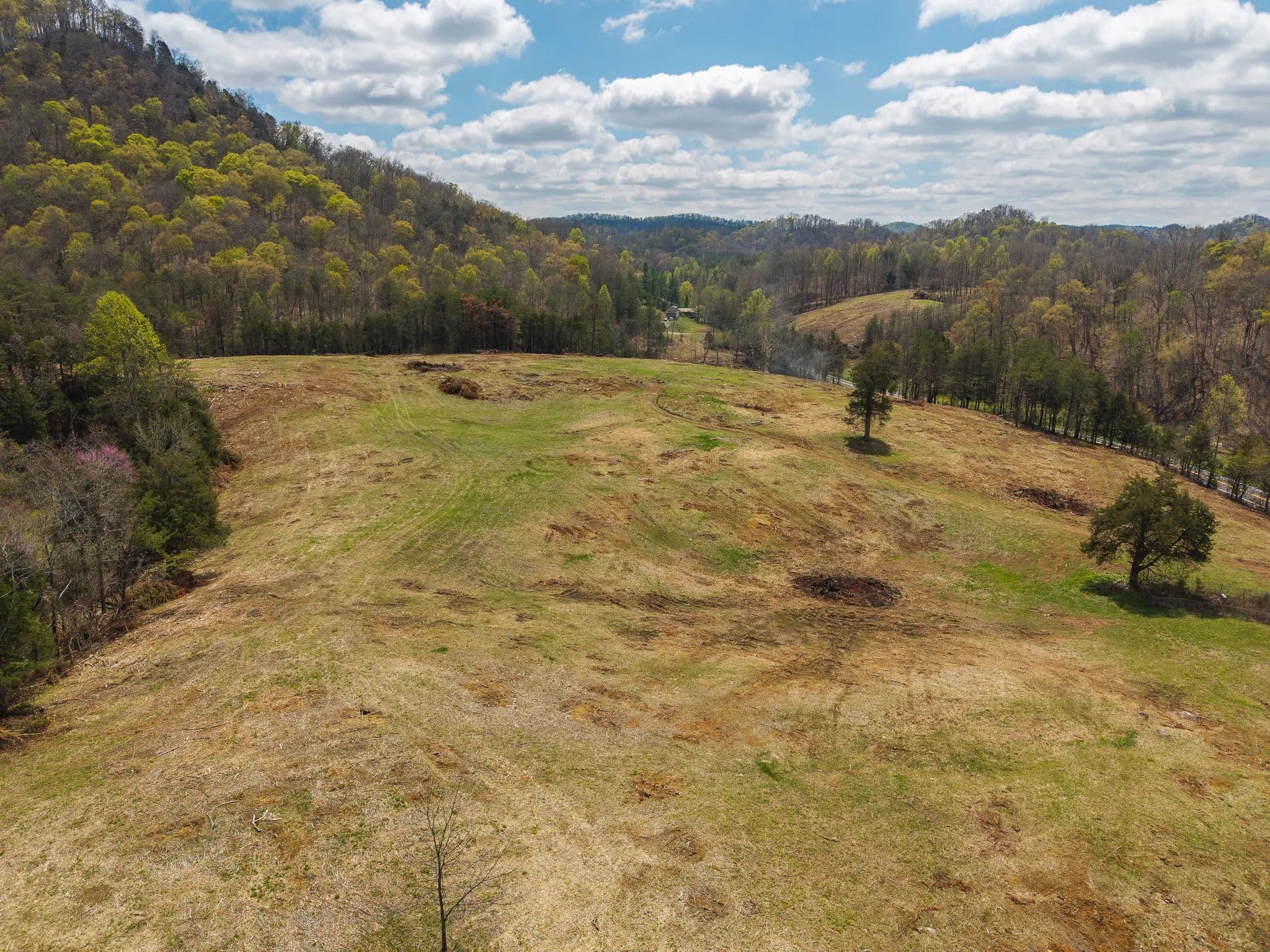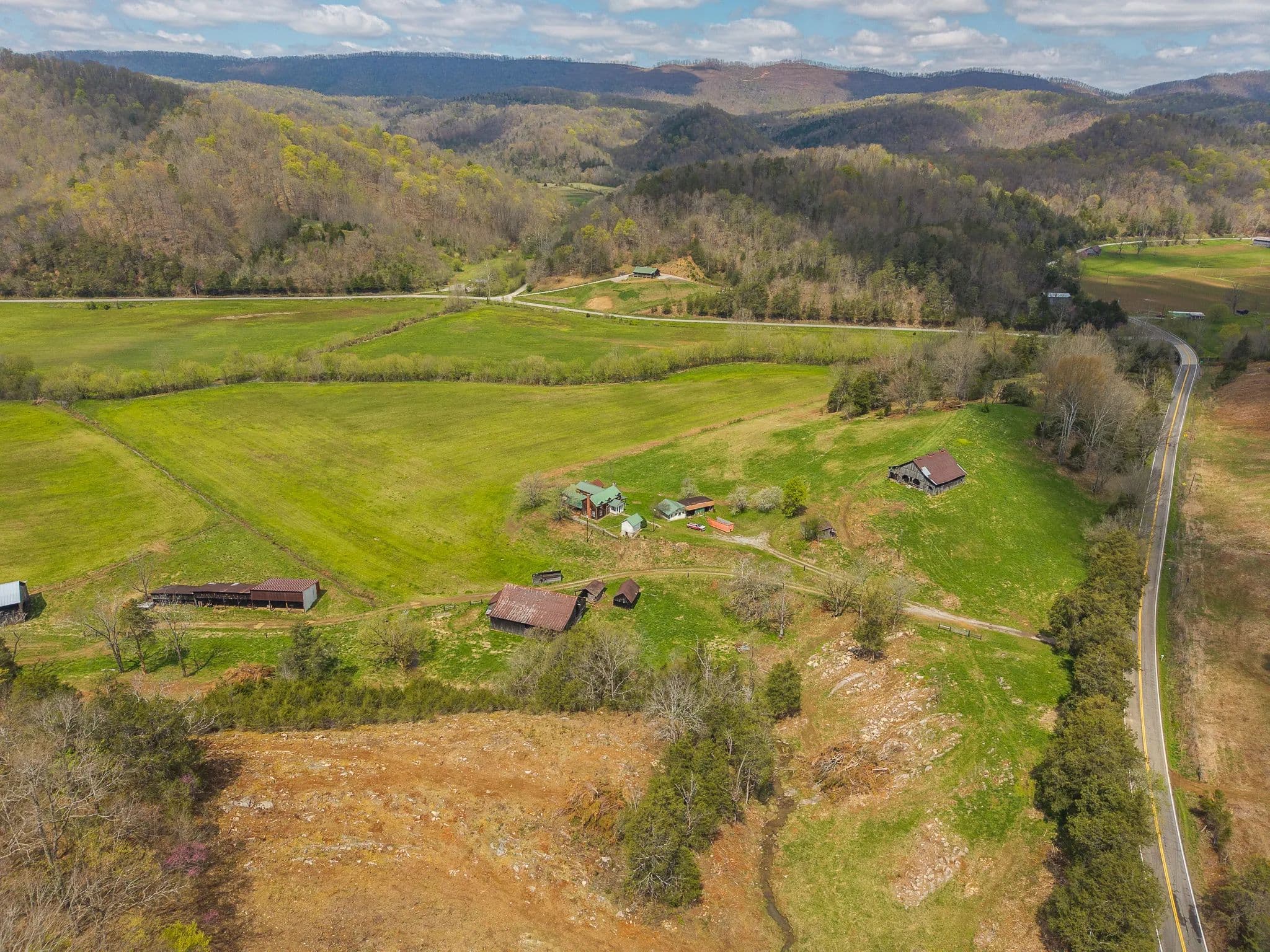 Much of the land has been cleared and newly seeded in grass, with portions suitable for row crops, livestock, or pasture. Additional features include mountain springs, a year-round creek on several tracts, and abundant wildlife, making it equally attractive for hunting and recreation.