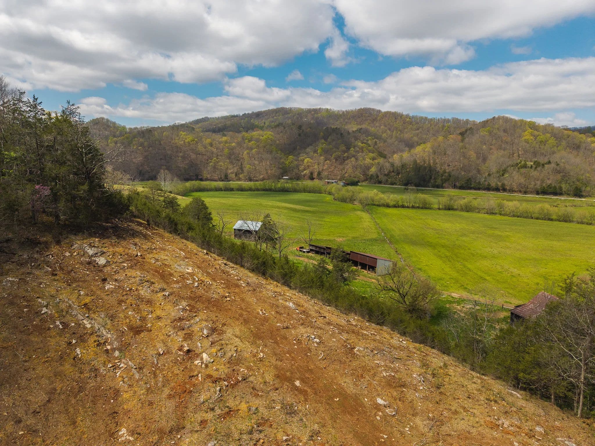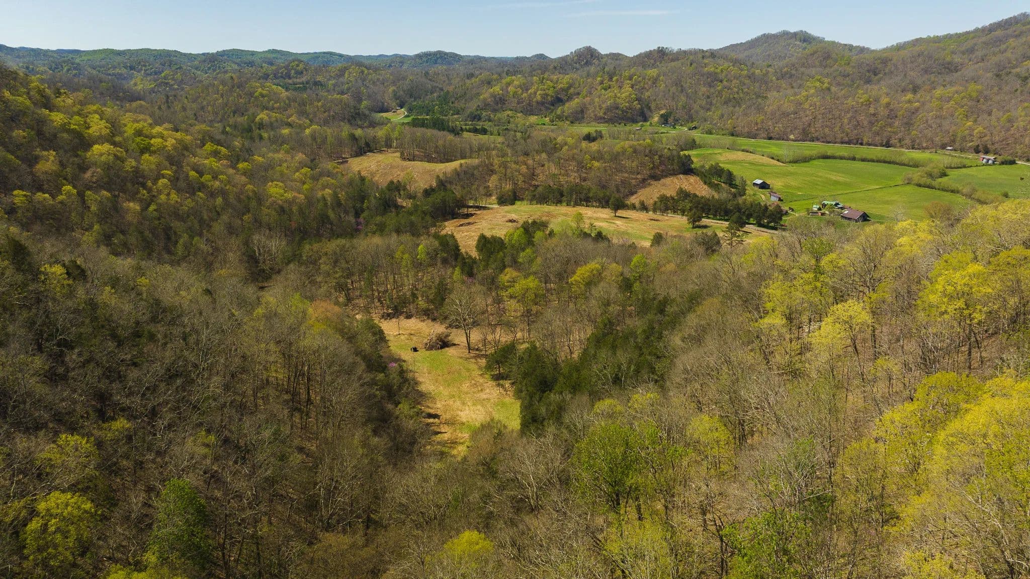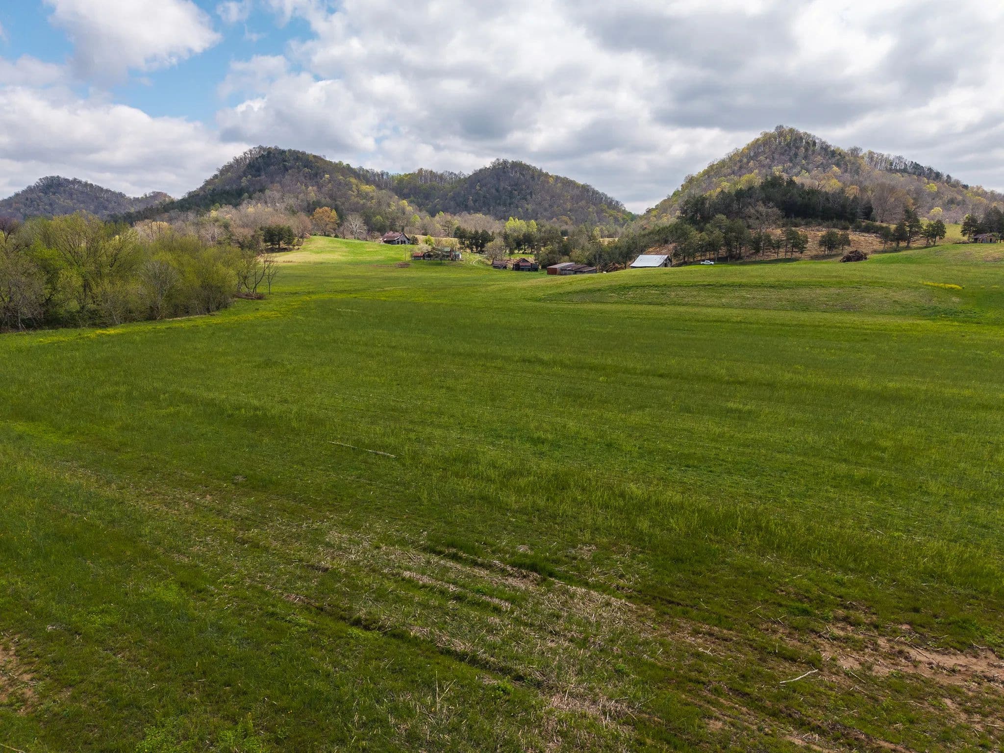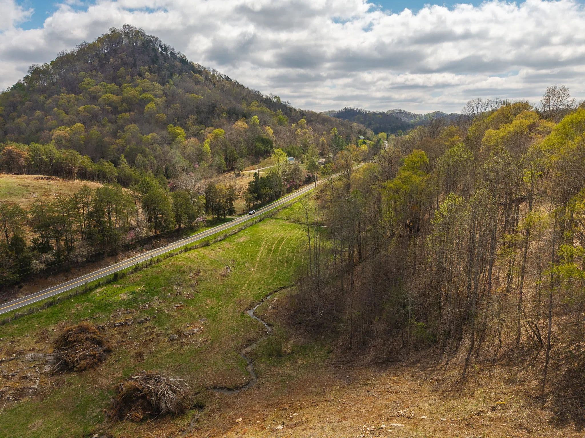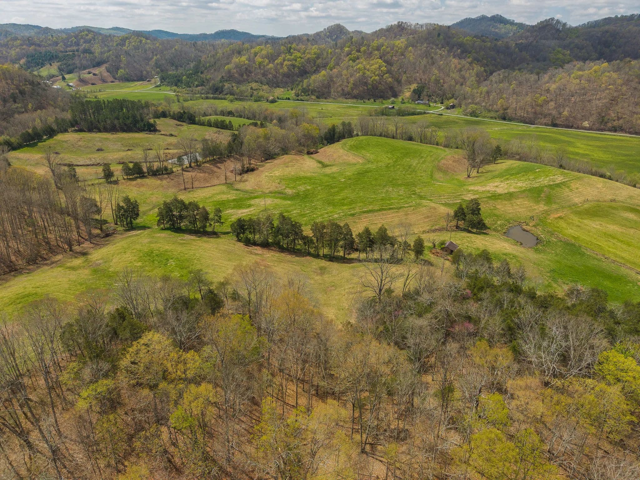 Much of the land has been cleared and newly seeded in grass, with portions suitable for row crops, livestock, or pasture. Additional features include mountain springs, a year-round creek on several tracts, and abundant wildlife, making it equally attractive for hunting and recreation.