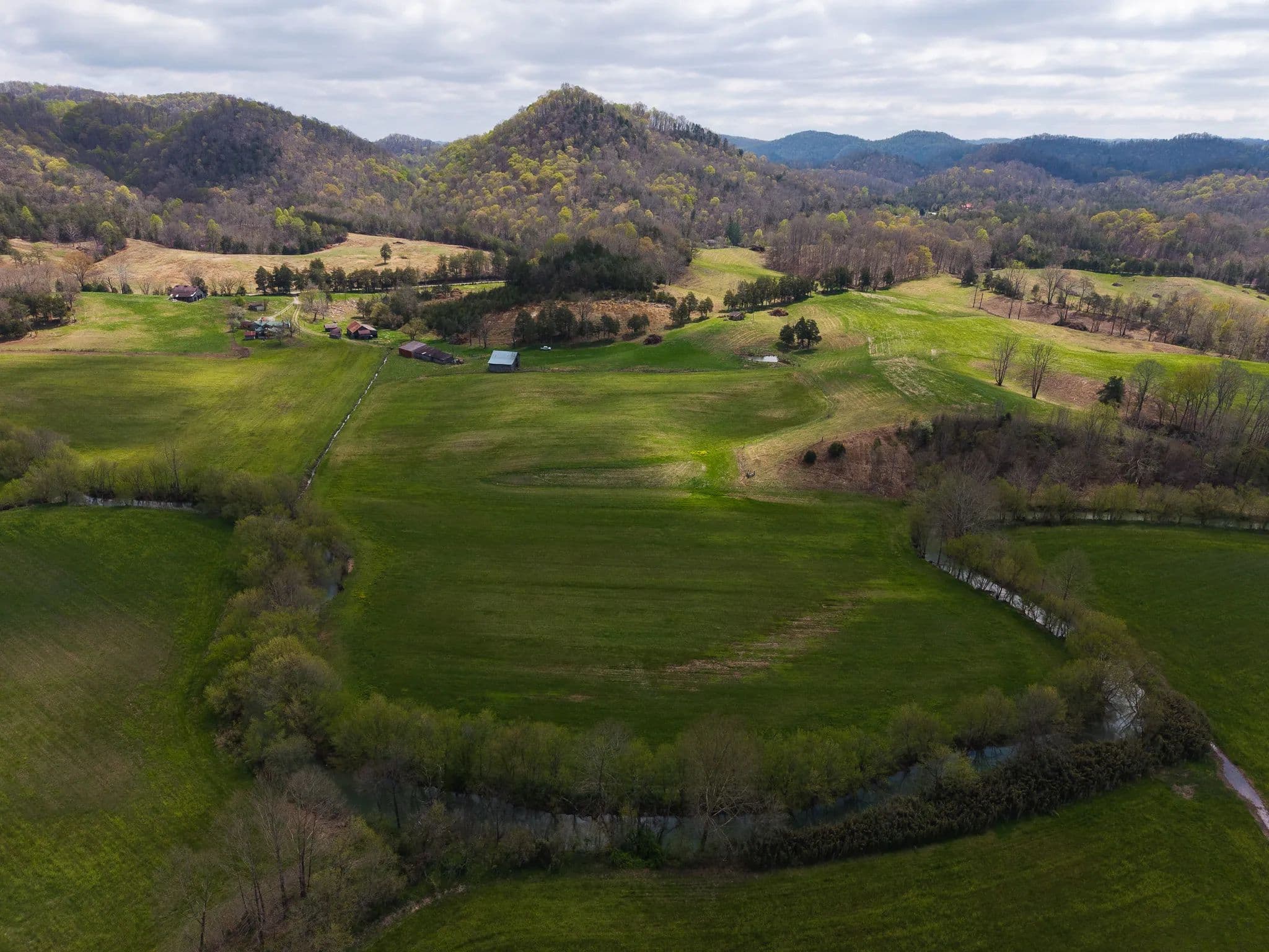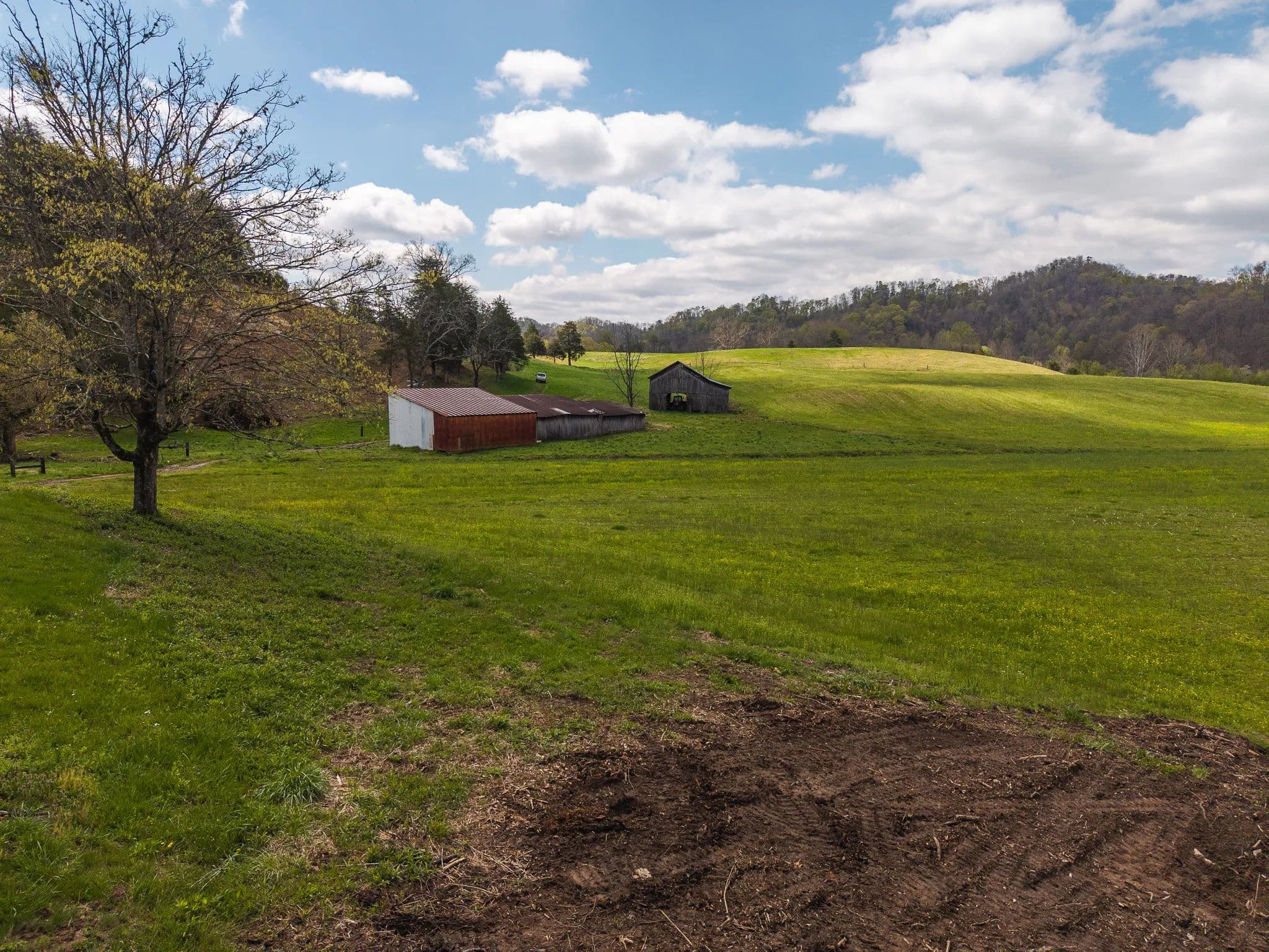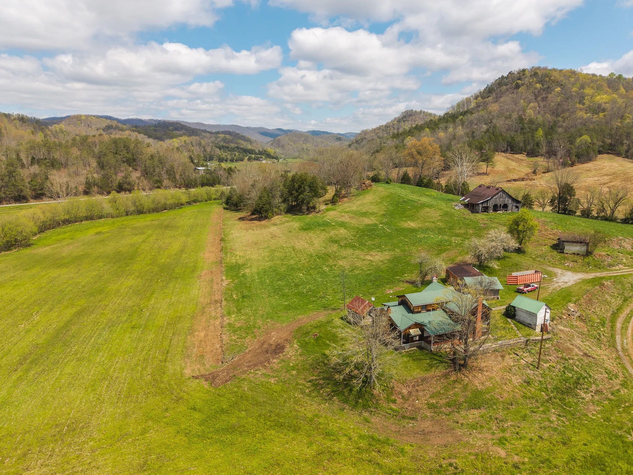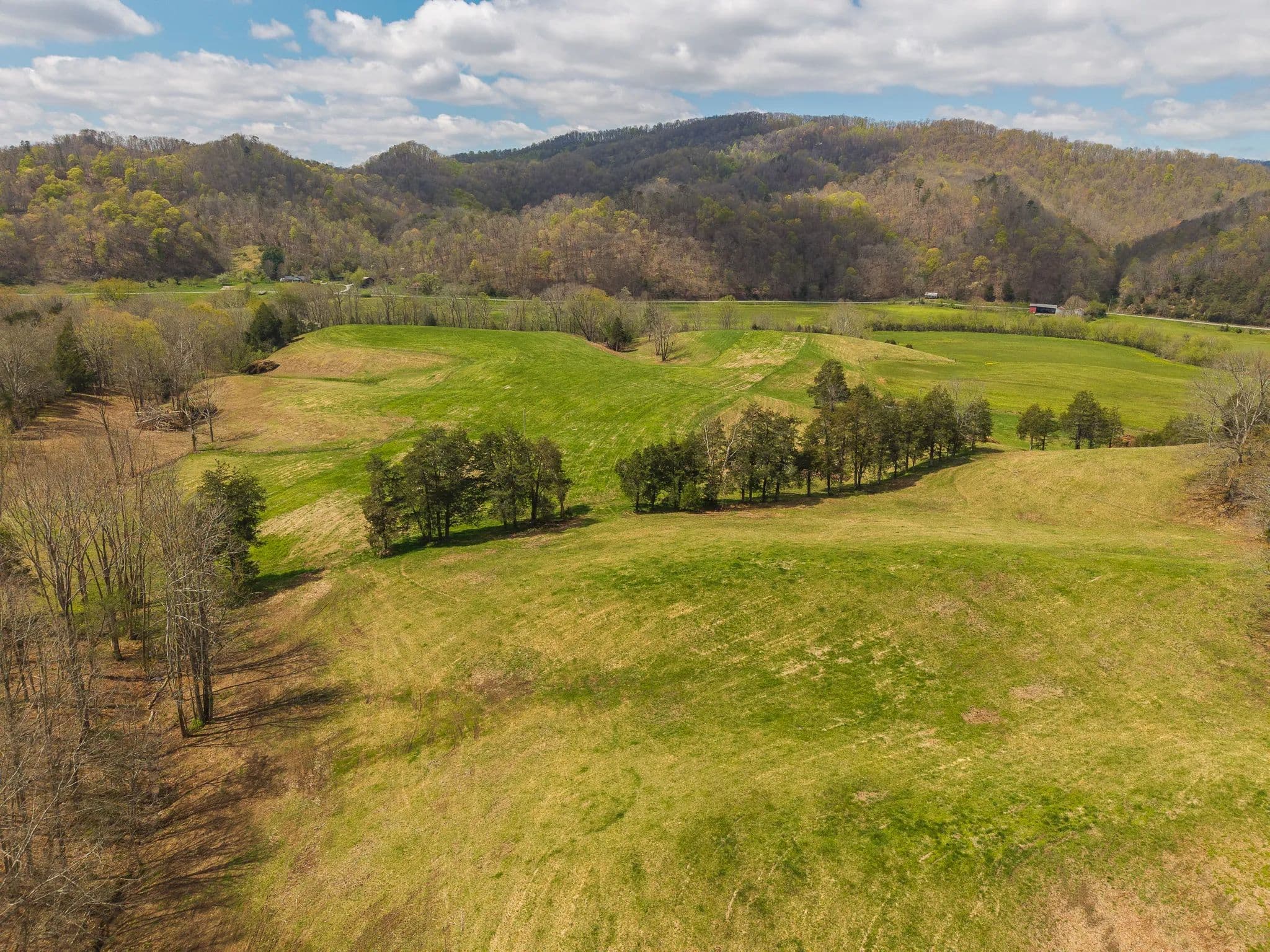 Much of the land has been cleared and newly seeded in grass, with portions suitable for row crops, livestock, or pasture. Additional features include mountain springs, a year-round creek on several tracts, and abundant wildlife, making it equally attractive for hunting and recreation.