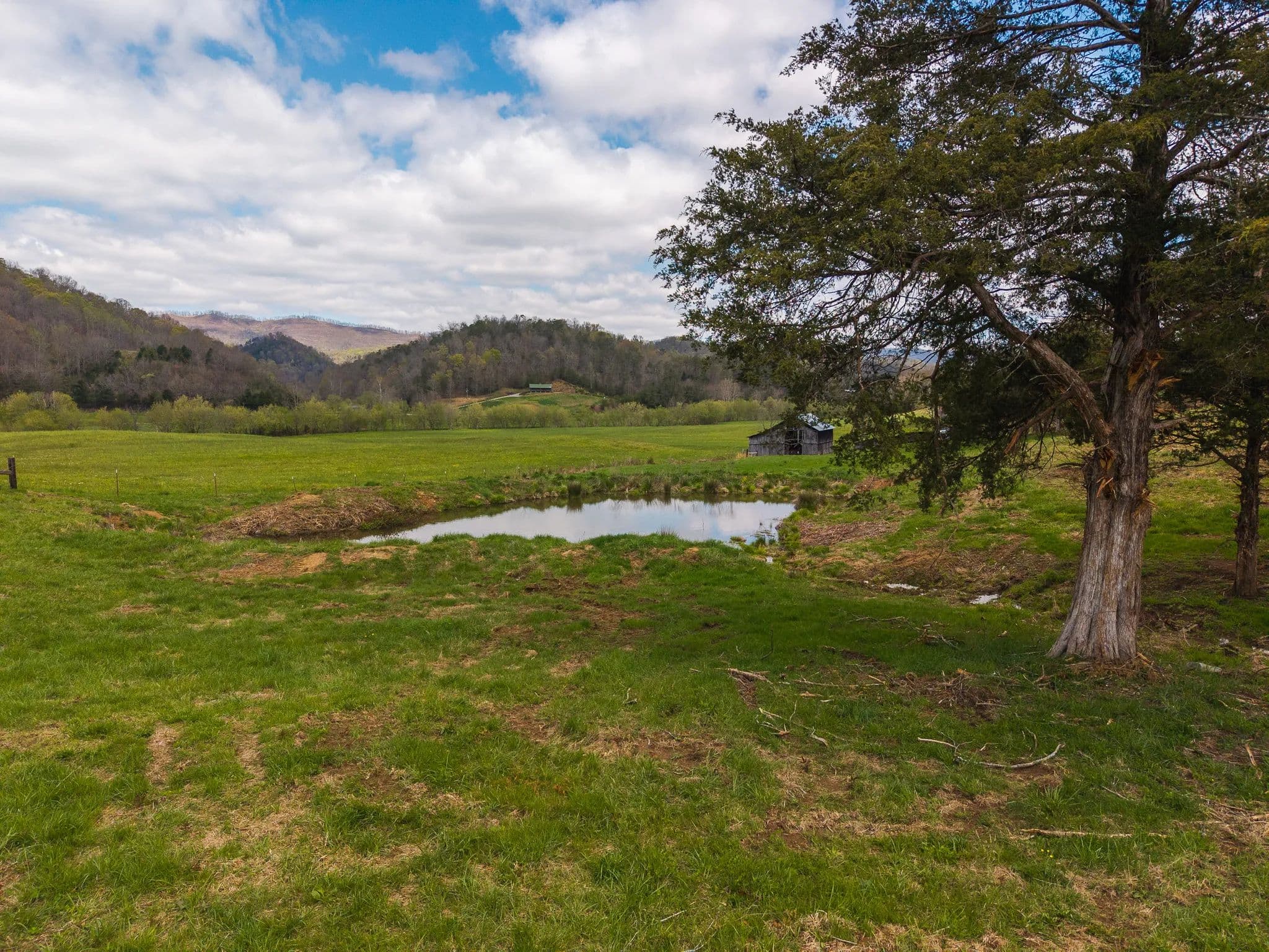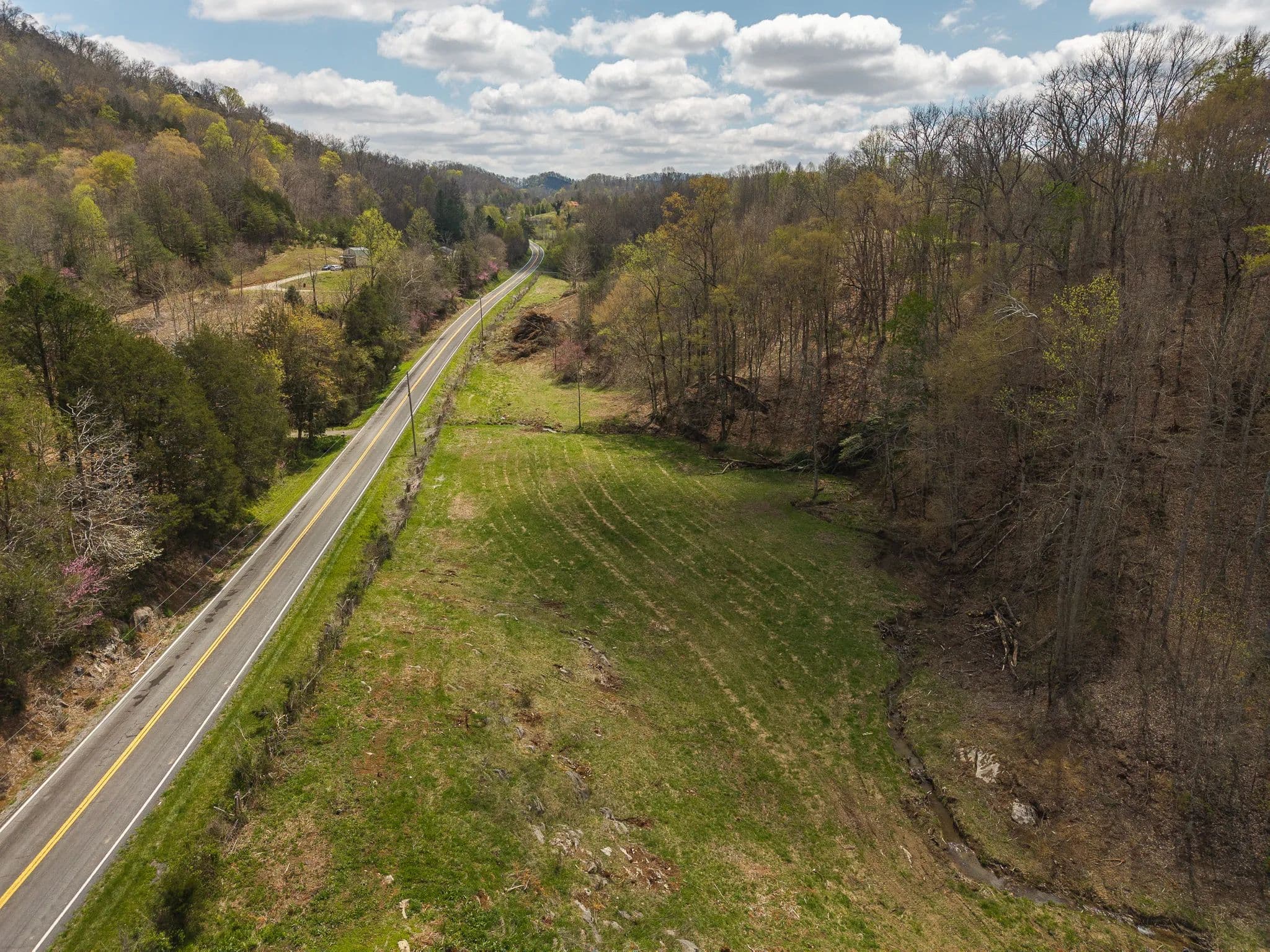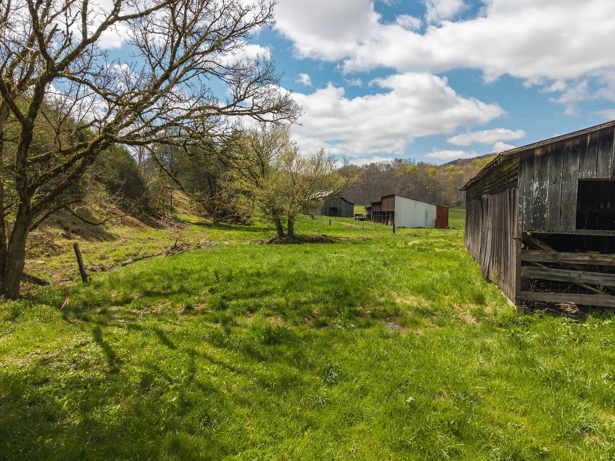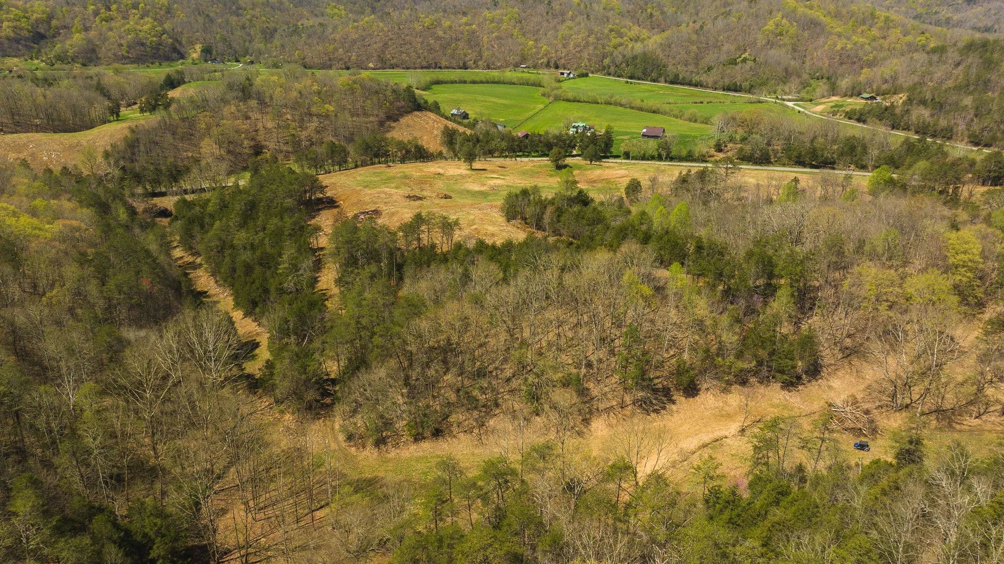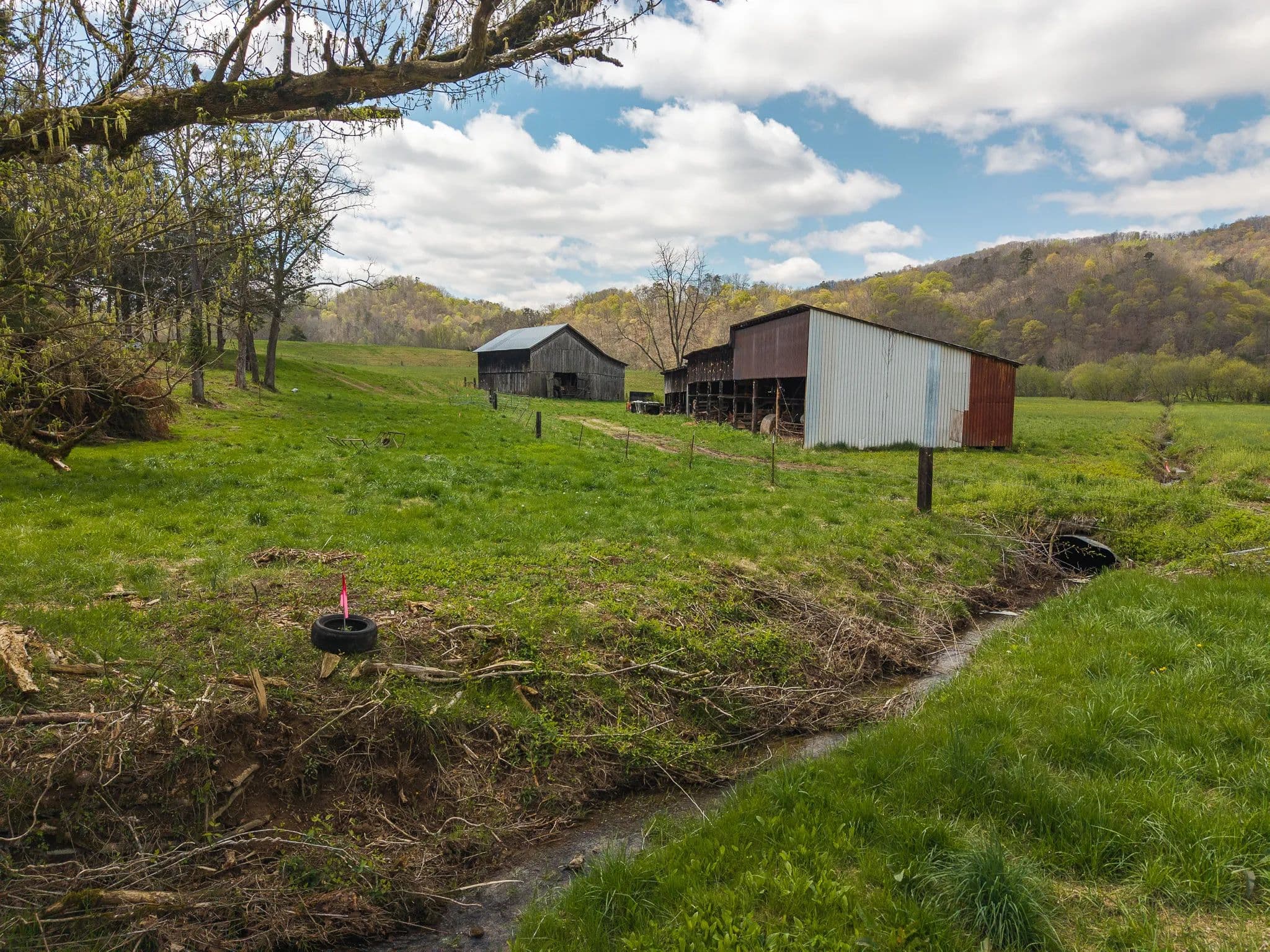 Much of the land has been cleared and newly seeded in grass, with portions suitable for row crops, livestock, or pasture. Additional features include mountain springs, a year-round creek on several tracts, and abundant wildlife, making it equally attractive for hunting and recreation.