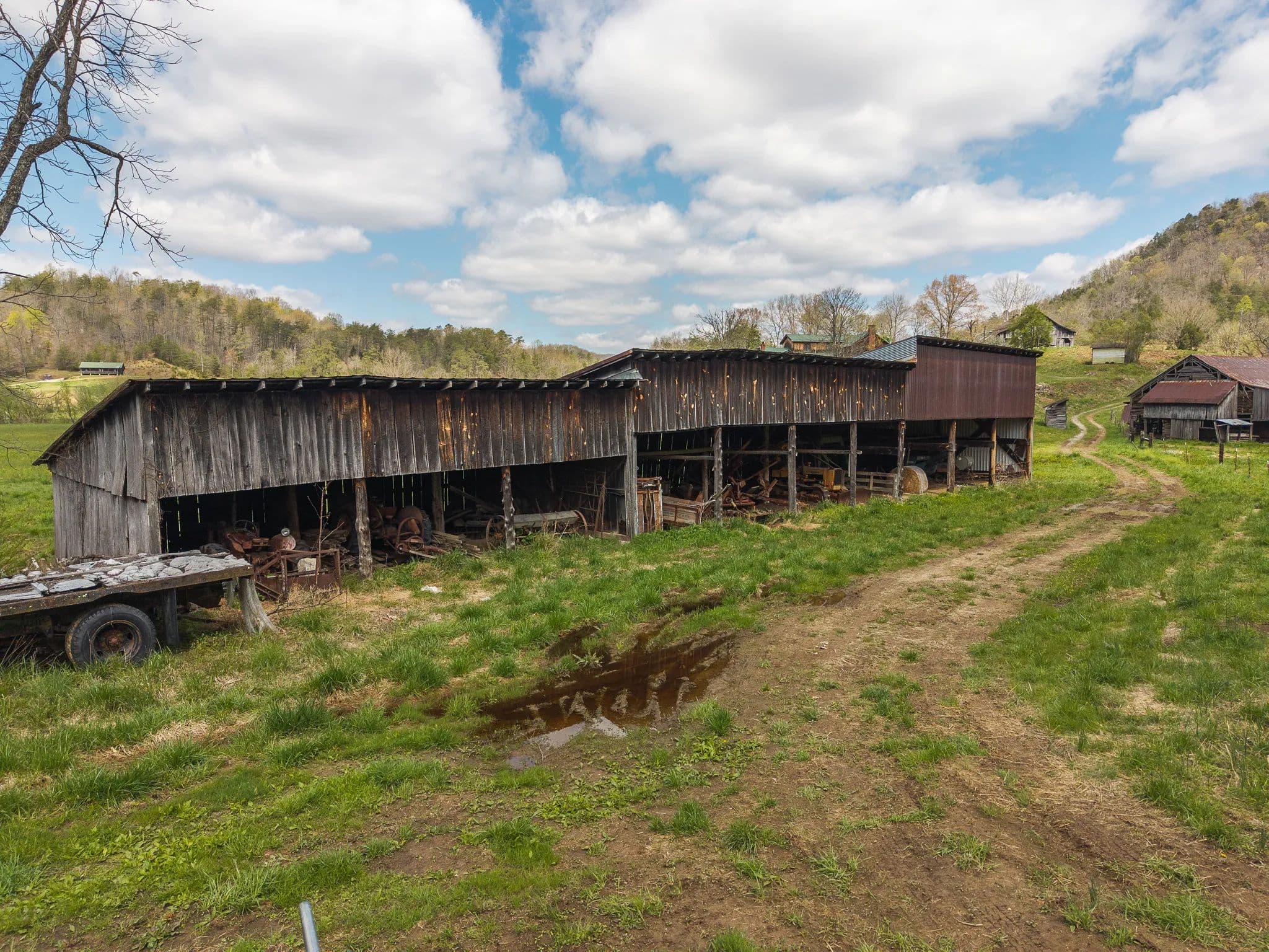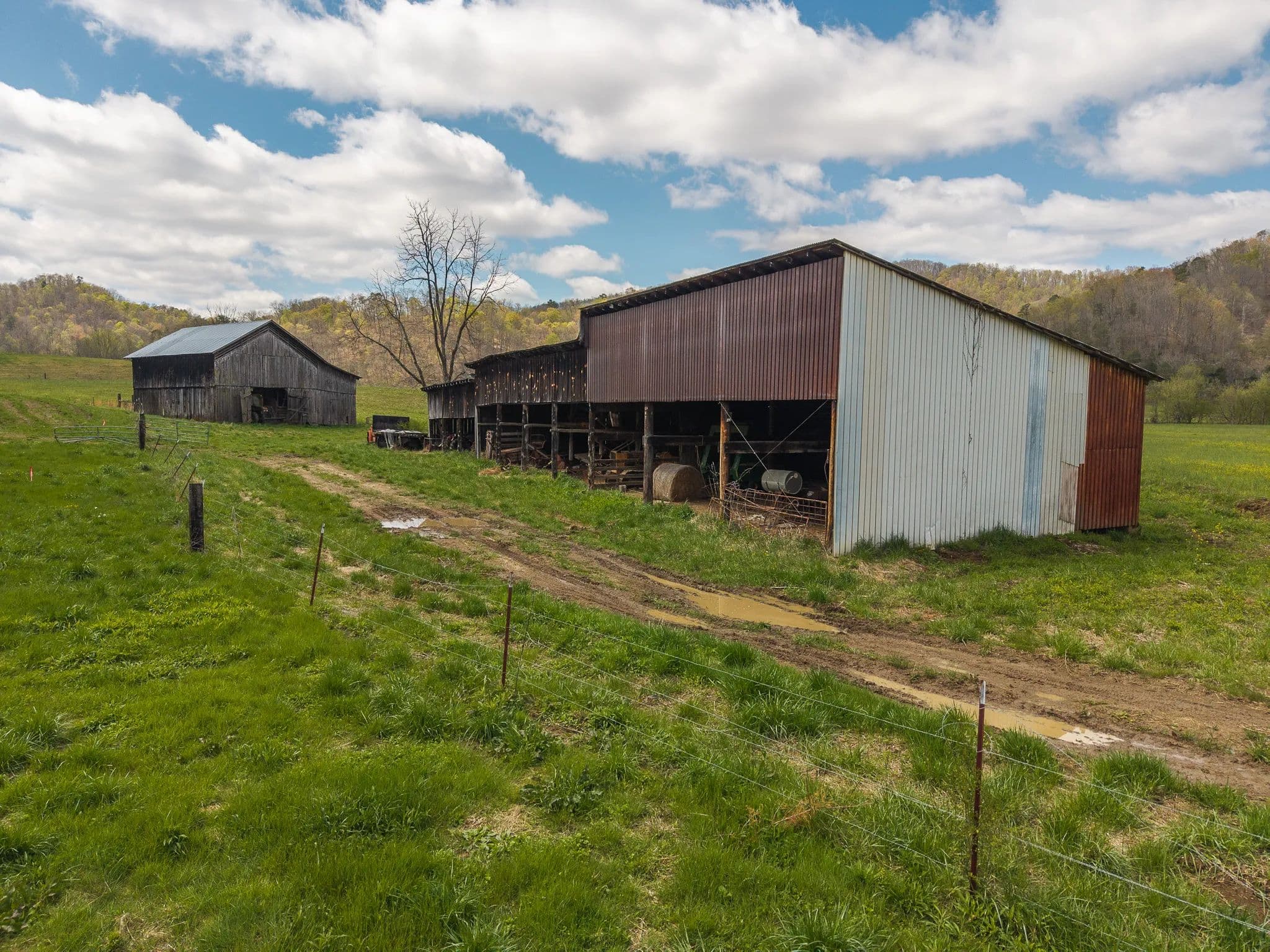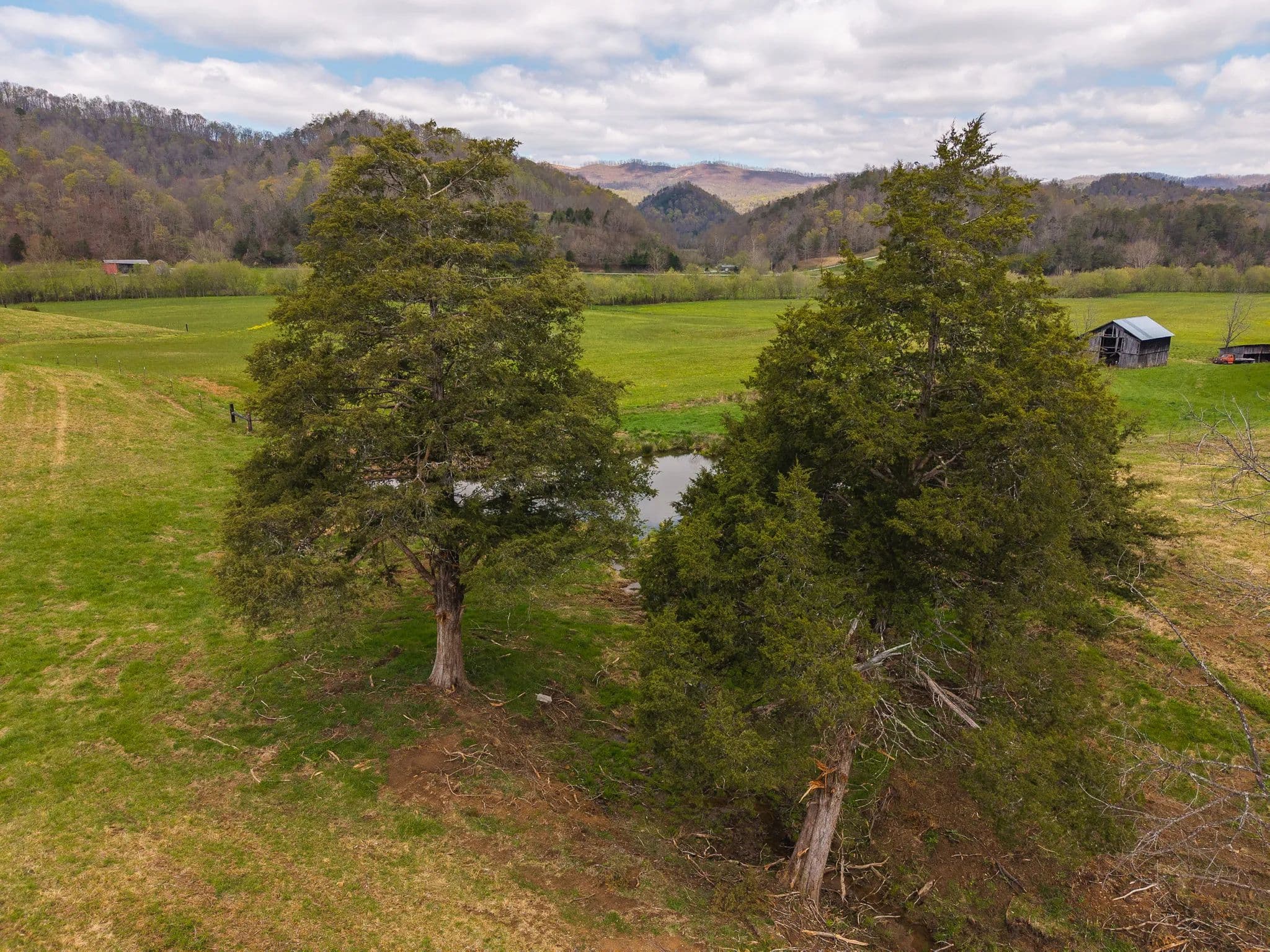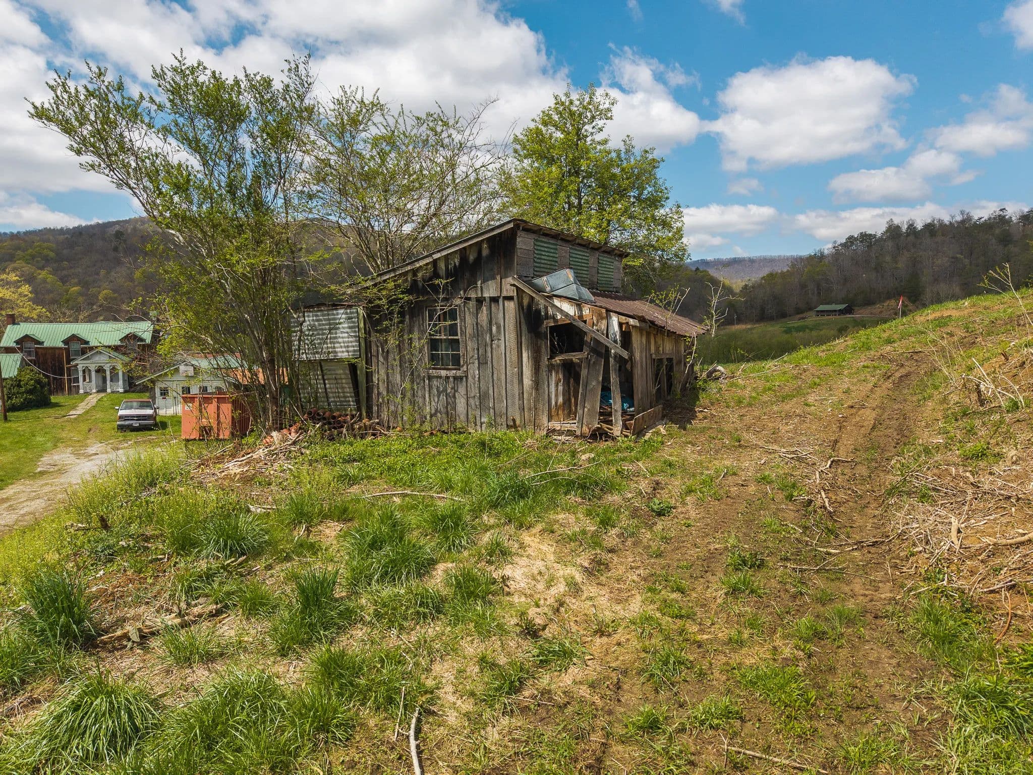 Much of the land has been cleared and newly seeded in grass, with portions suitable for row crops, livestock, or pasture. Additional features include mountain springs, a year-round creek on several tracts, and abundant wildlife, making it equally attractive for hunting and recreation.