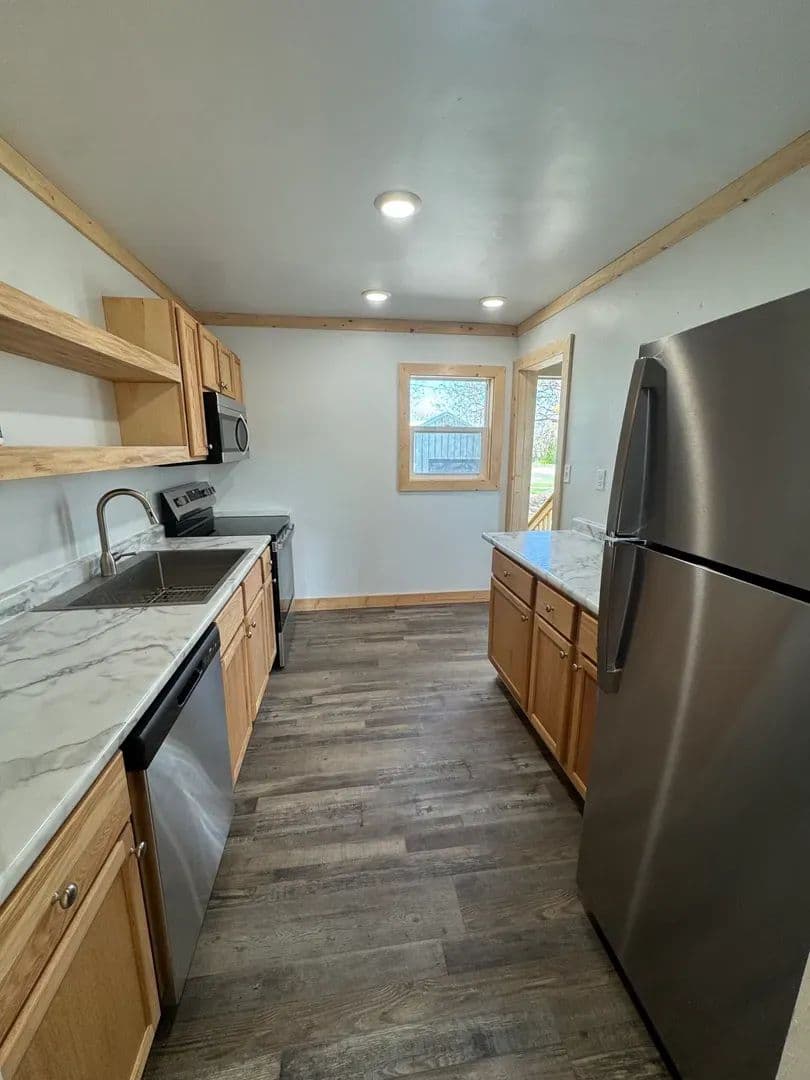 This remodeled, 1,600 square foot home in Wagner, South Dakota, offers a perfect blend of modern conveniences and cozy living. The property features three bedrooms and two updated bathrooms. The semi-open concept allows for natural light, creating a warm and inviting atmosphere throughout the home. A spacious 16x20 shed also sits on the property. It is a perfect spot to store vehicles, boats or use as additional storage. Land Outside, the property boost a well-maintained yard with mature trees that provide shade over the entire backyard. The front yard overlooks a baseball diamond where you can easily enjoy watching games from your yard on those summer nights.