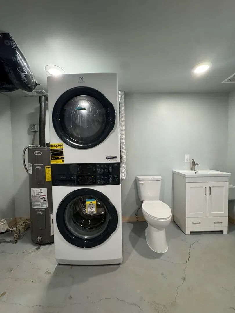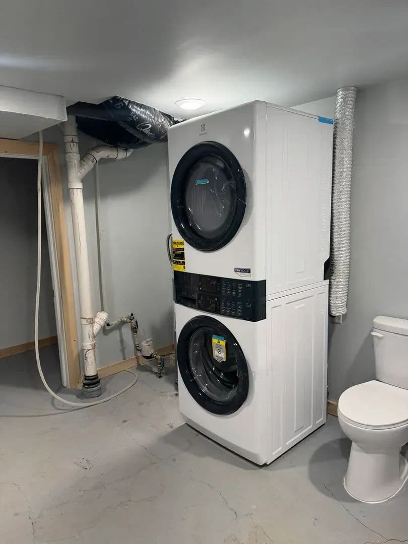 Appliances (stackable washer/dryer, stainless steel dishwasher, Refrigerator and Stove)