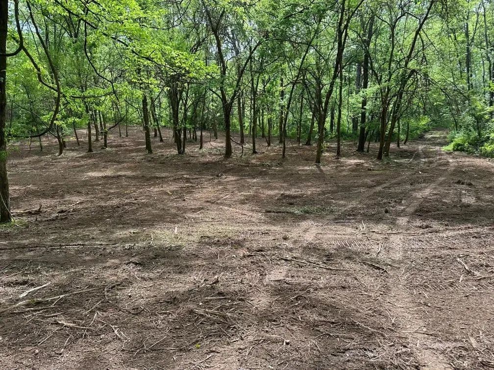 Primary build site area within the hardwoods has been neatly cleared of the undergrowth providing visualization of a gorgeous private build site option.