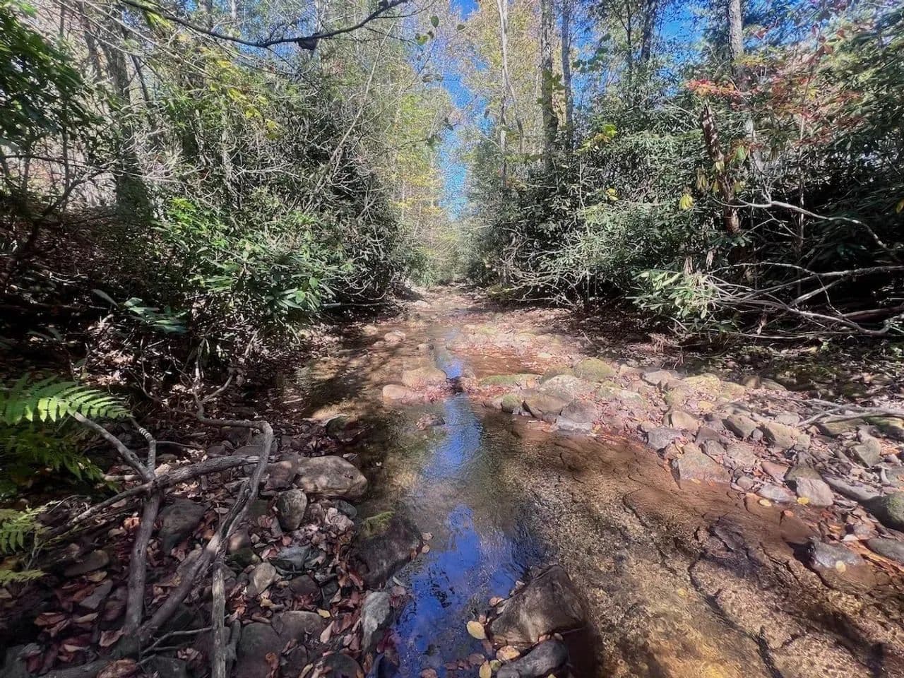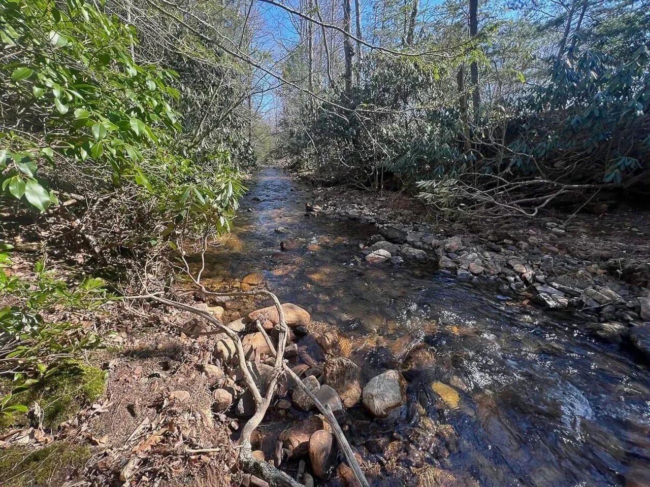 Here, nature remains untouched by development, logging, or motorized traffic. This pristine landscape is a haven for outdoor enthusiasts, offering backcountry hunting, horseback riding, and native brook trout fishing in the crystal-clear waters of Johns Creek, which gently winds through the property.