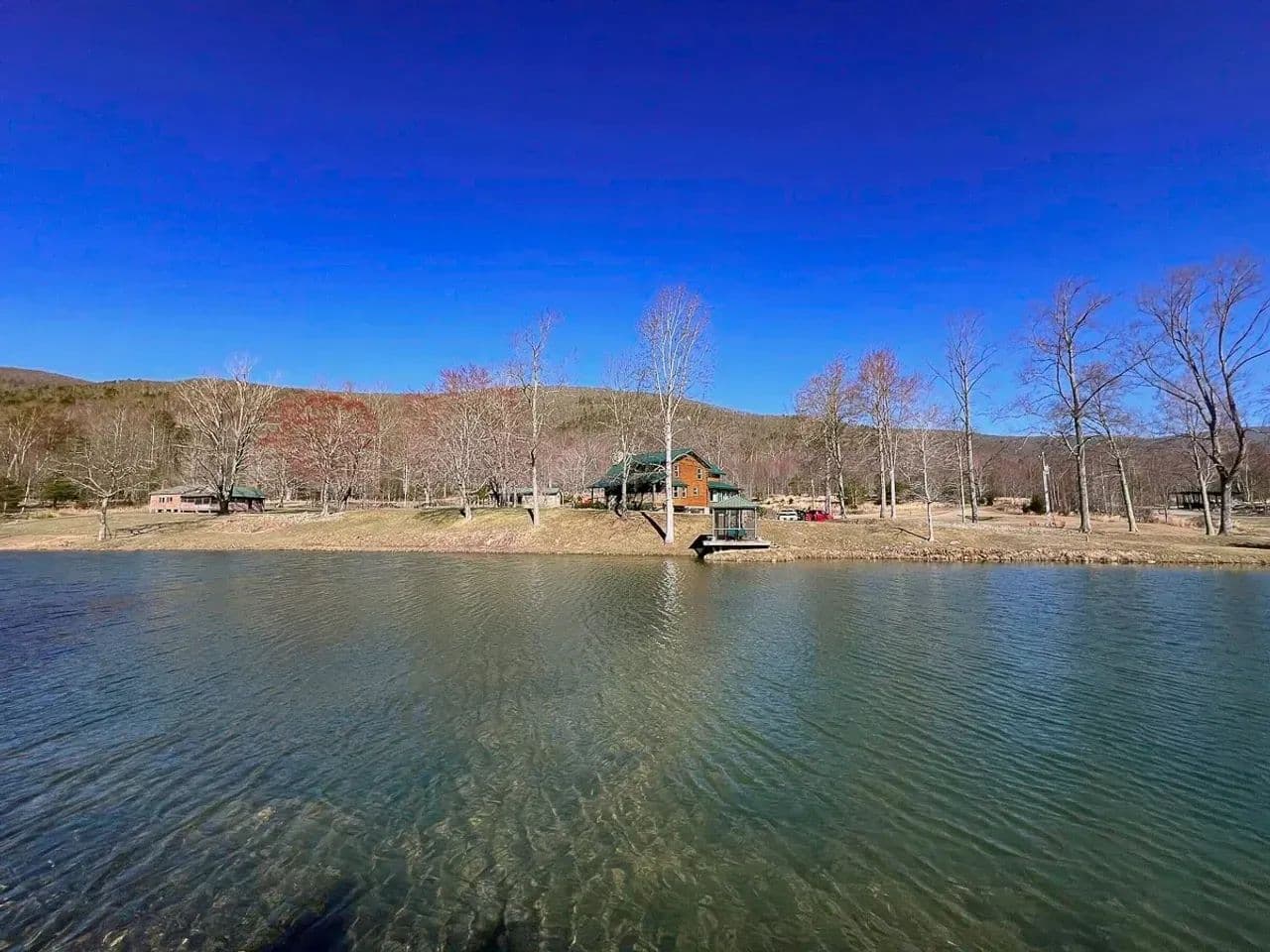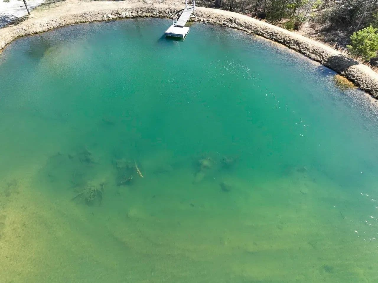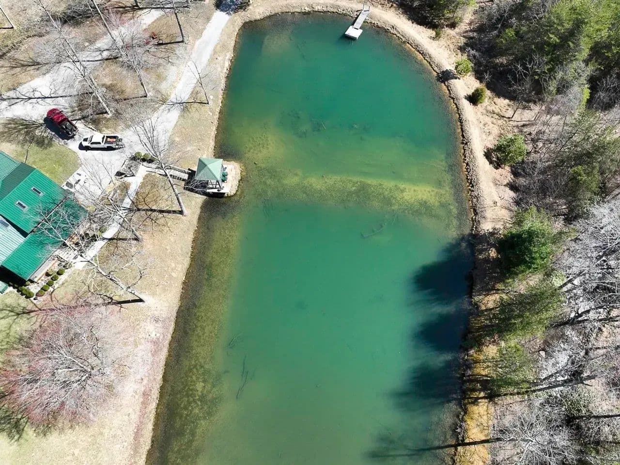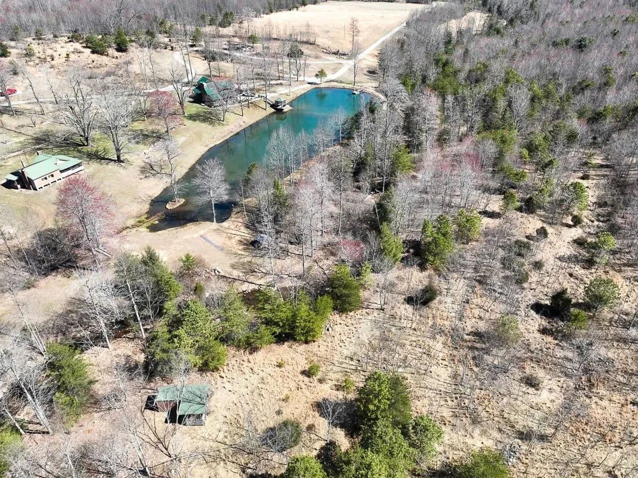 At the heart of this secluded sanctuary lies a charming 3-4 bedroom, 2-bathroom cabin, overlooking a picturesque, one-acre stocked pond teeming with largemouth bass, crappie, and other panfish.