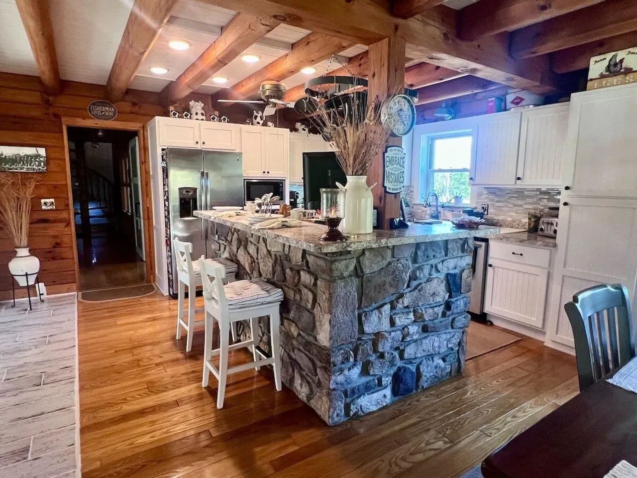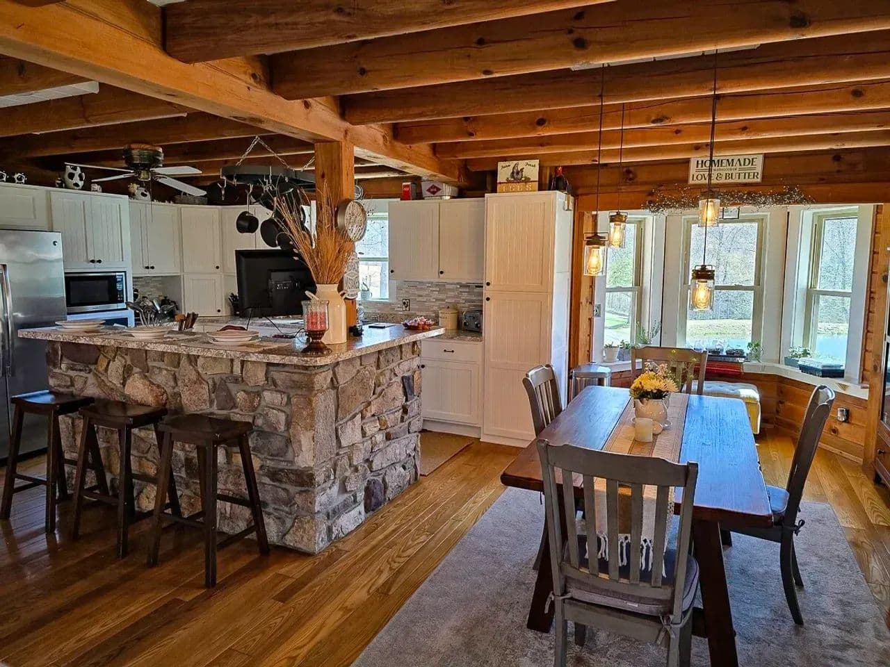 From the upstairs primary suite, take in panoramic views of the pond and surrounding meadows—home to abundant wildlife including deer, bear, turkey, eagles, and more.