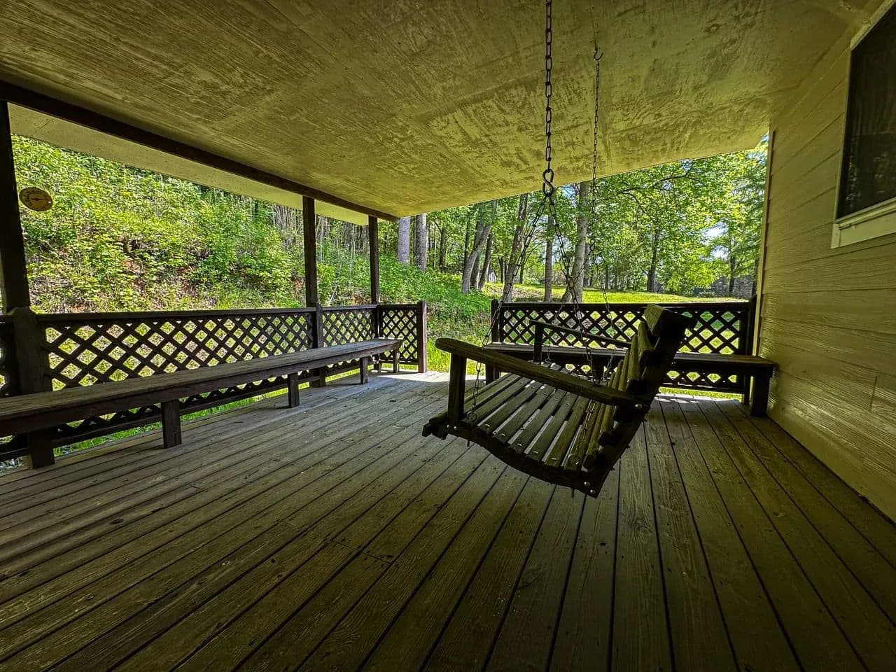 Cozy back porch with a swing, perfect for enjoying the quiet evenings