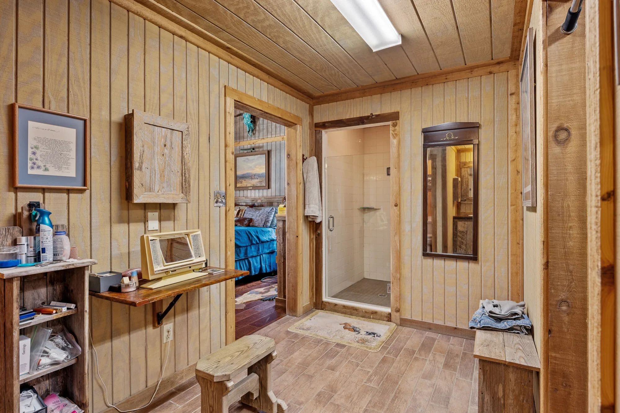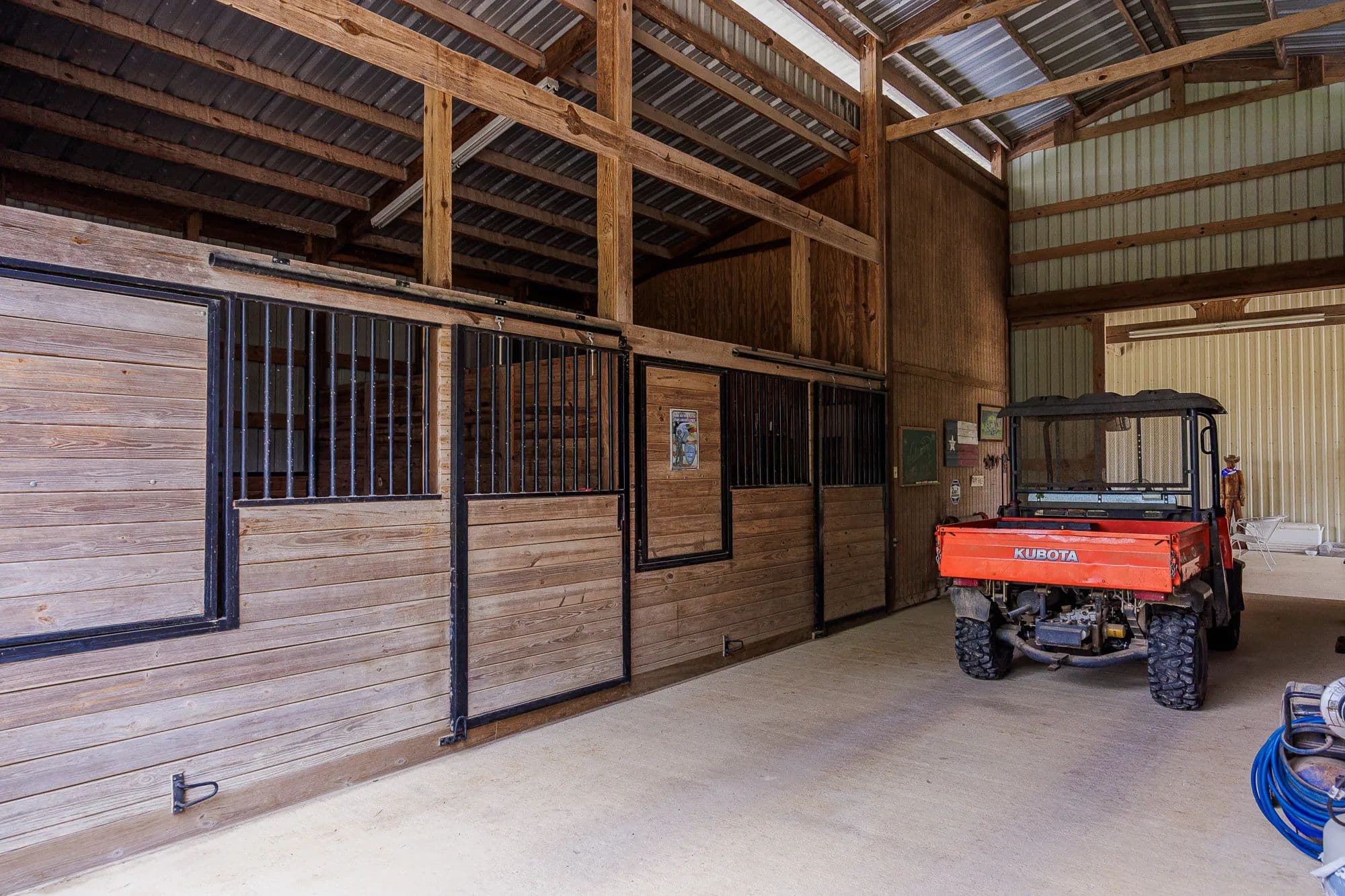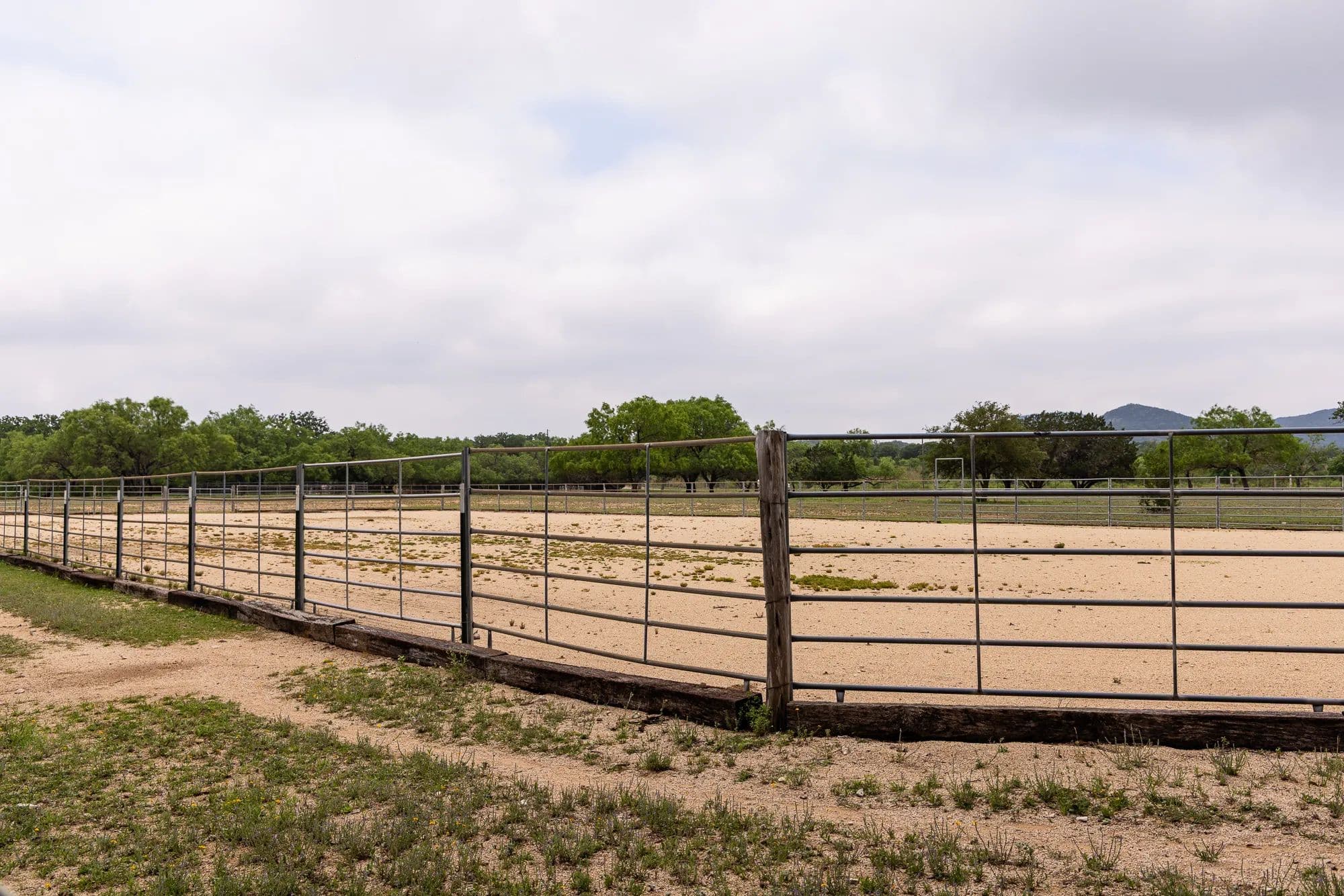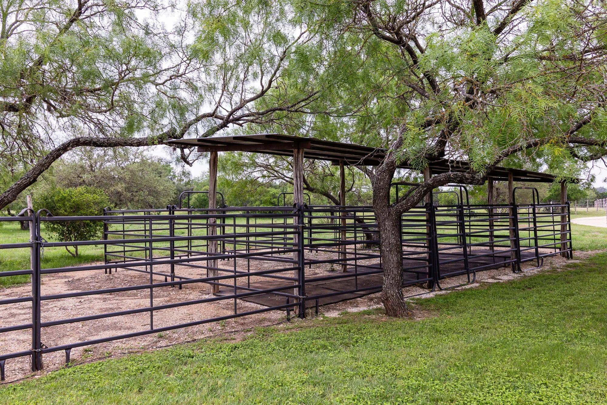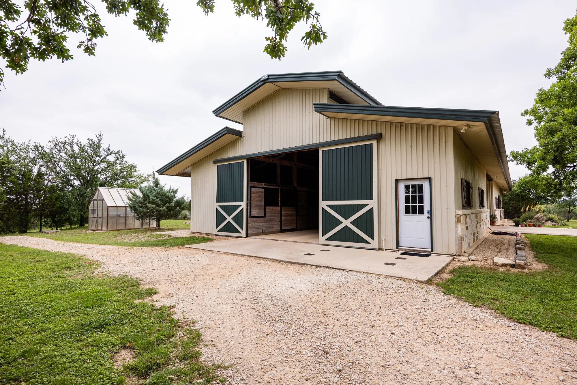 Everyone knows the famous spot on Highway 16 between Bandera and Medina where the huge canopy of Pecan Trees cover the roadway like a warm blanket. Kyle Ranch Road is a premier address in the county at this location. Come escape to this gorgeous 50 acres just two miles south on Kyle Ranch Road. The 2000+ SF home is perched overlooking the beautiful Oak covered countryside. The barndominium is split with a patio in the center for entertaining. The main home is a two bedroom, two bath home with a massive open concept living room, dining room and kitchen. The other section of the barn contains a third bedroom and full bathroom, office/laundry area, heated/cooled storage/workshop and two horse stalls. The covered back porch is 10 feet wide by 40 feet long. The interior of the home has saltillo tile floors, with wood flooring in the primary bedroom. The focal point of this home is the amazing kitchen. The Cypress cabinets and mesquite countertops were handmade by a local artisan who is renown for his woodwork. They are a masterpiece. The wood-burning fireplace was assembled with rock from the property and stands stately in the corner of the living room so as not to obstruct the amazing hill country views. This is truly a home to enjoy indoors and out. The property is divided into numerous pastures. The owners have horses and there is a round pen and sand arena, plus covered sheds in 3 paddocks for shelter. The 10 acre field is across the creek from the improvements and has good native grasses for cattle and horses. Winans Creek runs through the center of the property. It flowed for many, many years until this last drought that we are currently still experiencing. When it is flowing, there are beautiful waterfalls and deep holes along the bluff. For now, the creek bed provides topographical change in the landscape with solid rock bottom areas meandering around to the large bluff and great hardwoods for the turkey to hide in. Other improvements on the property include a 476 deep well with a 1500 gallon storage tank, greenhouse with electric and water, tractor barn with electric and another storage building next to the arena. This is an amazing property in a perfect location in the Hill Country of Bandera. Make your appointment today to come see what you are missing.