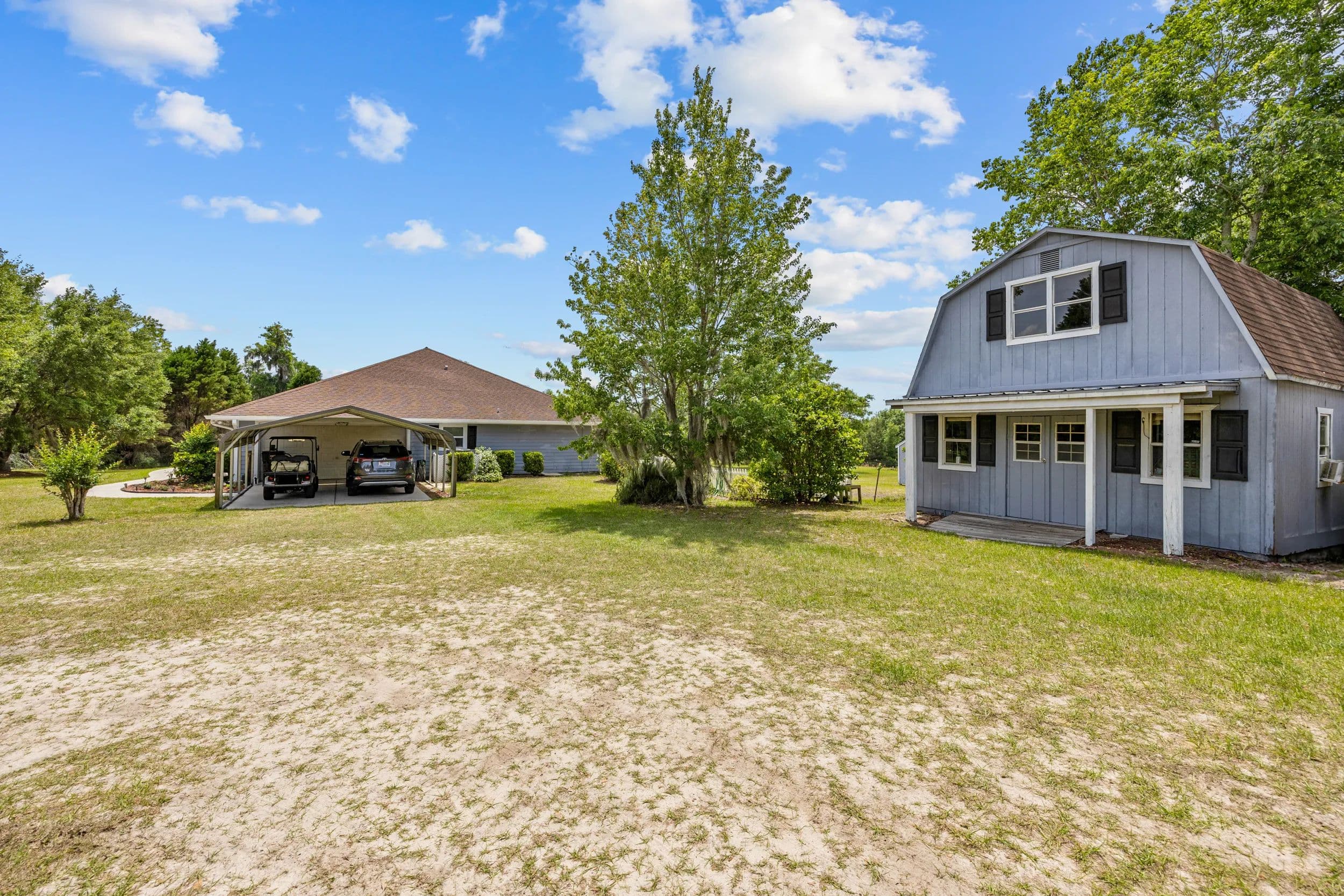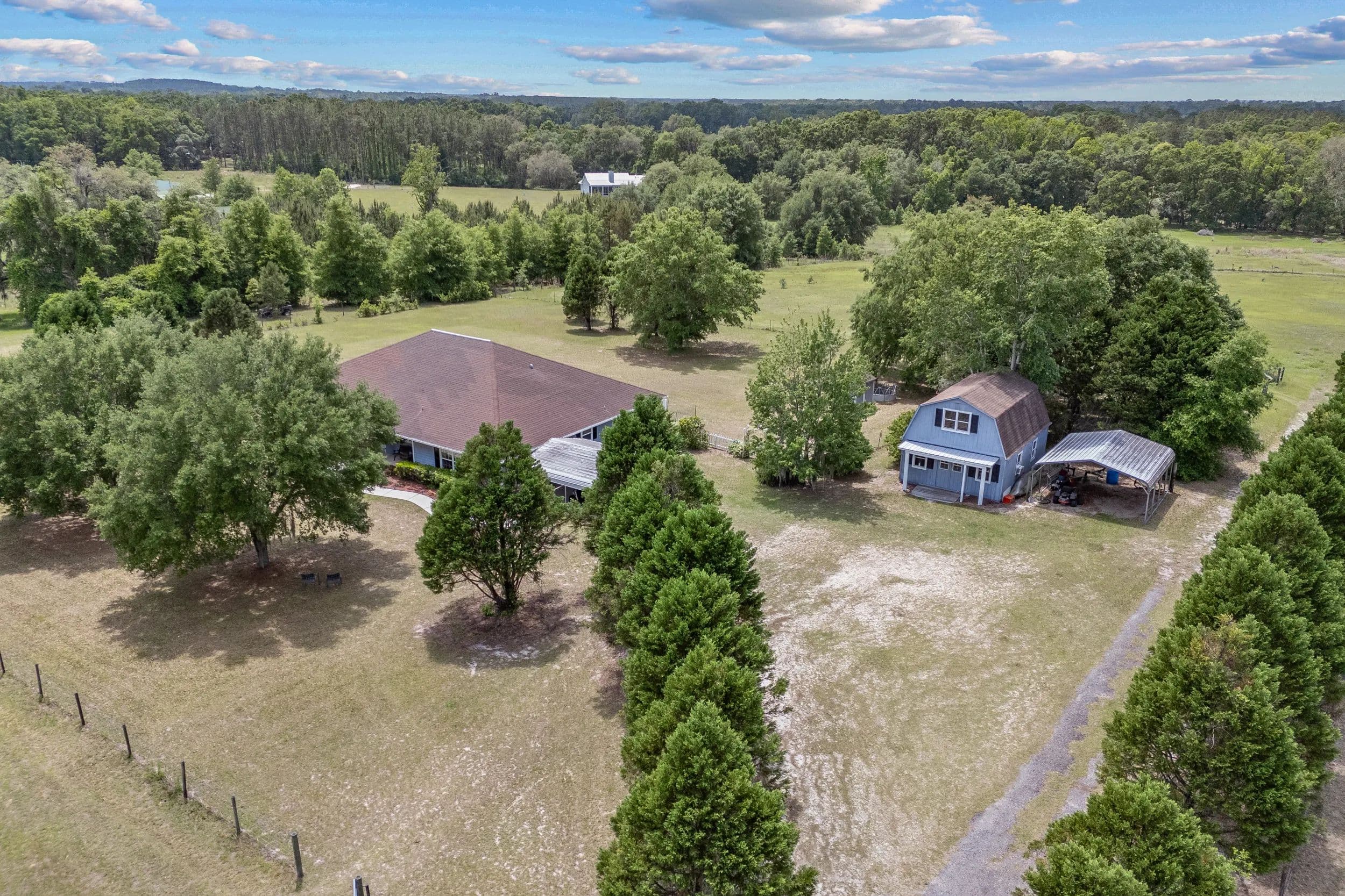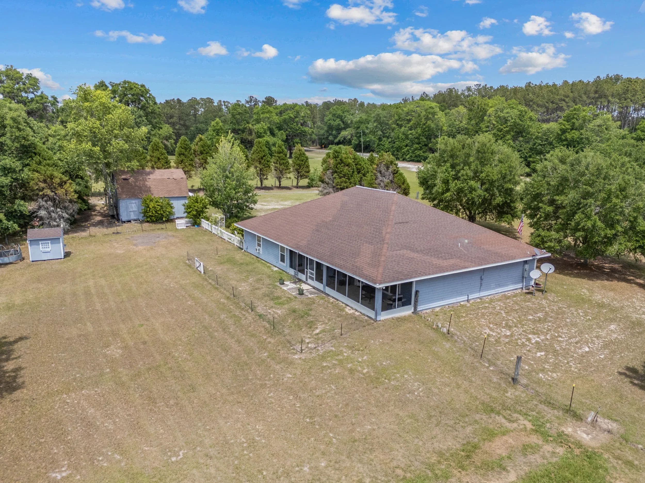 Welcome to your private retreat! This 3-bedroom, 2-bath home + office sits on over 6 beautiful, fully fenced acres with Santa Fe River access, offering the best of peaceful country living just minutes from downtown Alachua and High Springs. Set back off a paved road with a private drive, the home boasts excellent curb appeal, fruit trees, and an adorable front porch that invites you in. Step inside to a bright office filled with natural light, perfect for working from home. The spacious living room features vaulted ceilings, a cozy brick fireplace, and opens to a large screened-in back porch with stunning backyard views—ideal for relaxing or entertaining. The kitchen is a chef’s dream, complete with a large island with seating, ample counter space, and a big window over the sink that overlooks the front yard. The kitchen flows seamlessly into the generous dining area. A split floor plan ensures privacy, with a roomy master suite offering tray ceilings, direct access to the screened porch, and a luxurious en-suite bath with dual sinks, abundant storage, and a jacuzzi tub. Additional features include a 2-car garage, a detached matching shed with power—perfect for hobbies or a workshop—plus two separate carports to store all your vehicles, boats, or toys. All of this is conveniently located near I-75, top colleges, hospitals, and North Florida’s famous rivers and springs. This property combines comfort, space, and natural beauty—schedule your showing today!