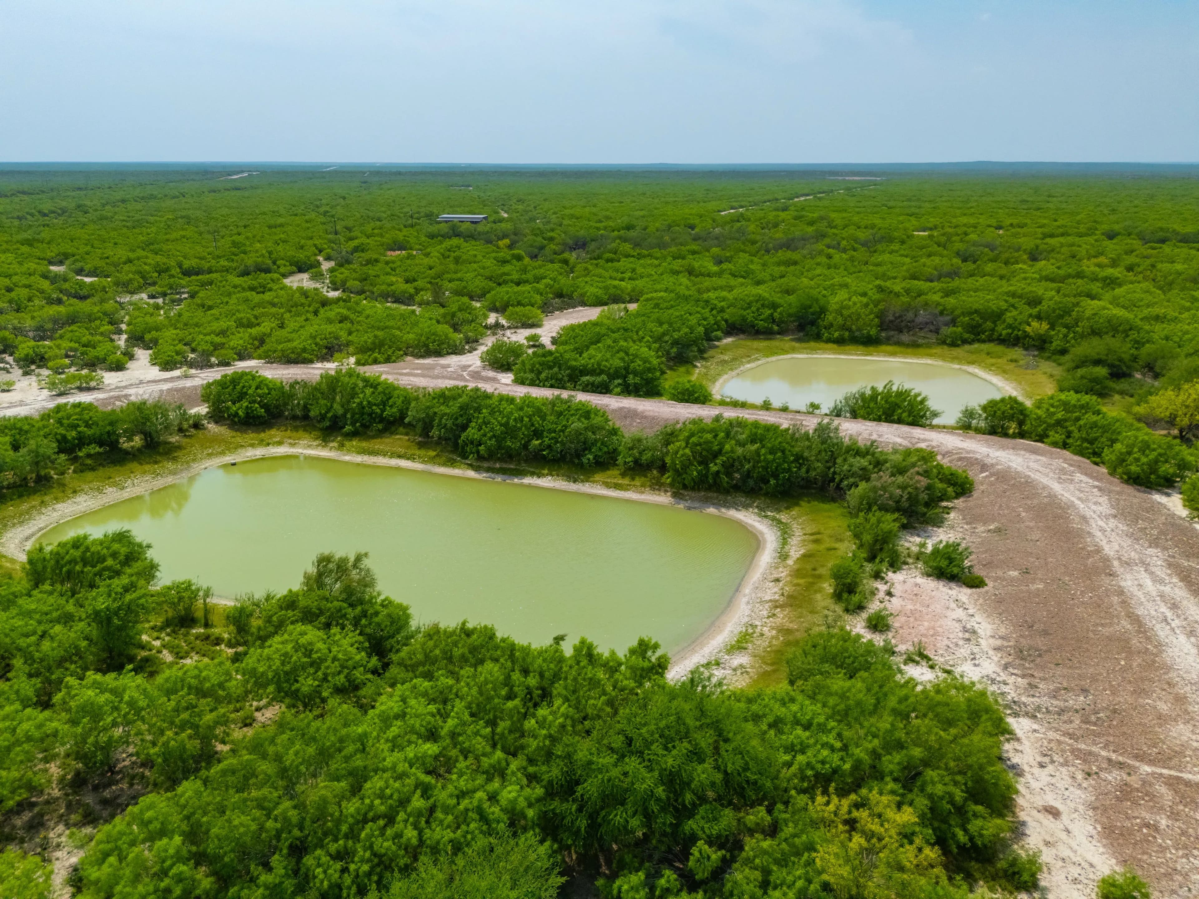 This ranch is watered by numerous tanks. There are 14 tanks spread across the ranch, including a +/-20-acre tank in the northern section and a +/-10-acre tank in the central portion. Many of these tanks are actually “stacked” dams and pits, with the upstream pit and tank spilling over into a second tank–so this number is actually understated. This infrastructure was developed by a long time South Texas ranching family–they are done “right”. The wet weather creeks will pool during wet periods.