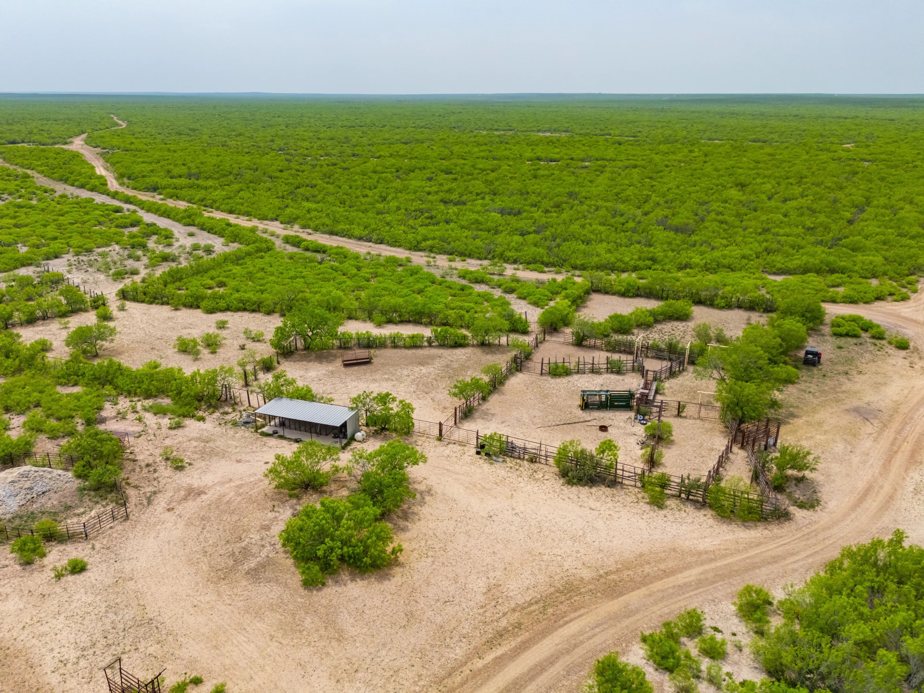 An all weather ranch road runs from the gate at Highway 59 well north into the ranch to the northern set of pens. Numerous lateral ranch roads and senderos provide good access to the remainder of the ranch.