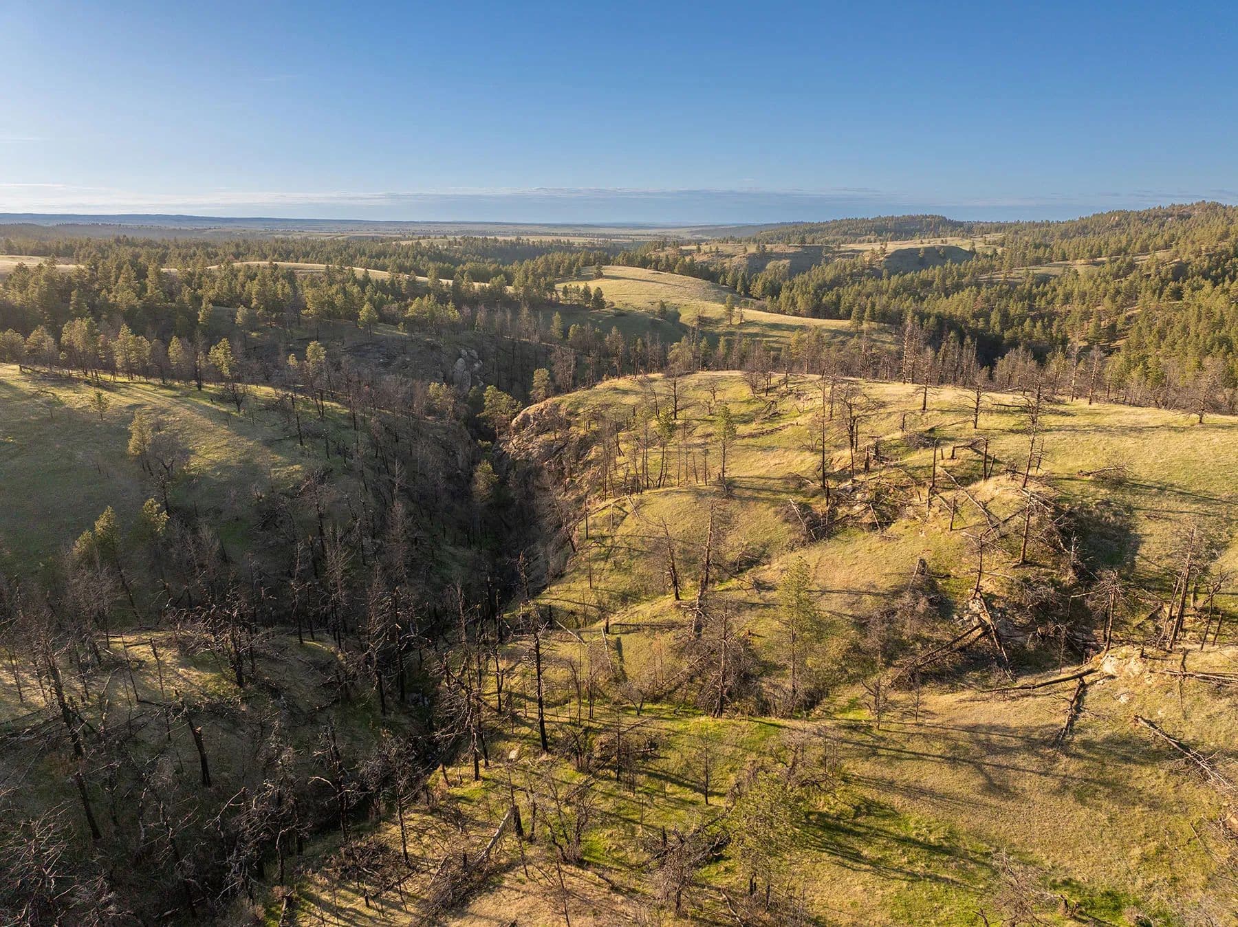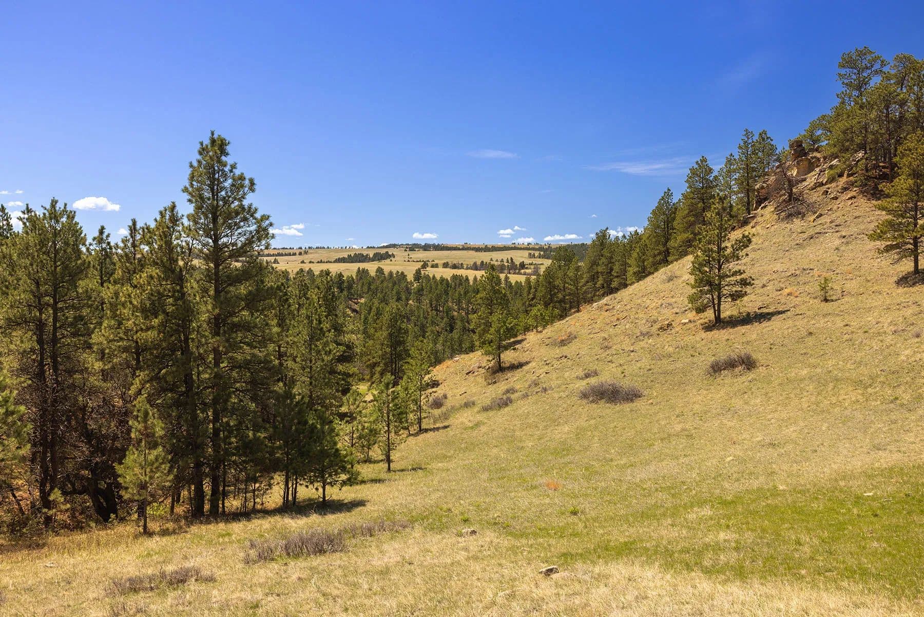 Located approximately 17 miles northwest of Spearfish and four miles northeast of Beulah, the Riley Ranch is a rare opportunity to own part of the Wyoming Black Hills with excellent recreational amenities. This ranch consists of 1,484+/- deeded acres and is bounded on all sides by large land holdings. It offers a diverse mix of topographical landscapes, including open meadows, wooded draws, rimrock ledges, and high plateaus, all providing dramatic views and outstanding wildlife habitat. The varying terrain is well-suited with many ideal locations for a residential build or a subtle mountain cabin. The deep canyons of the ranch, lined with ponderosa pine and oak trees, provide dark protective timber and numerous springs and ponds. Accompanying the natural water features, the ranch has an artesian spring-fed pipeline system that flows into improved livestock watering tanks that benefit both domestic livestock and wild game. Wildlife on the Riley Ranch includes elk, both species of deer, turkey, as well as bald and golden eagles, falcons, hawks, owls, bobcats, and mountain lions. The ranch has been well cared for and is evident of good stewardship. It is a perfect recreational property with a strong grazing component.