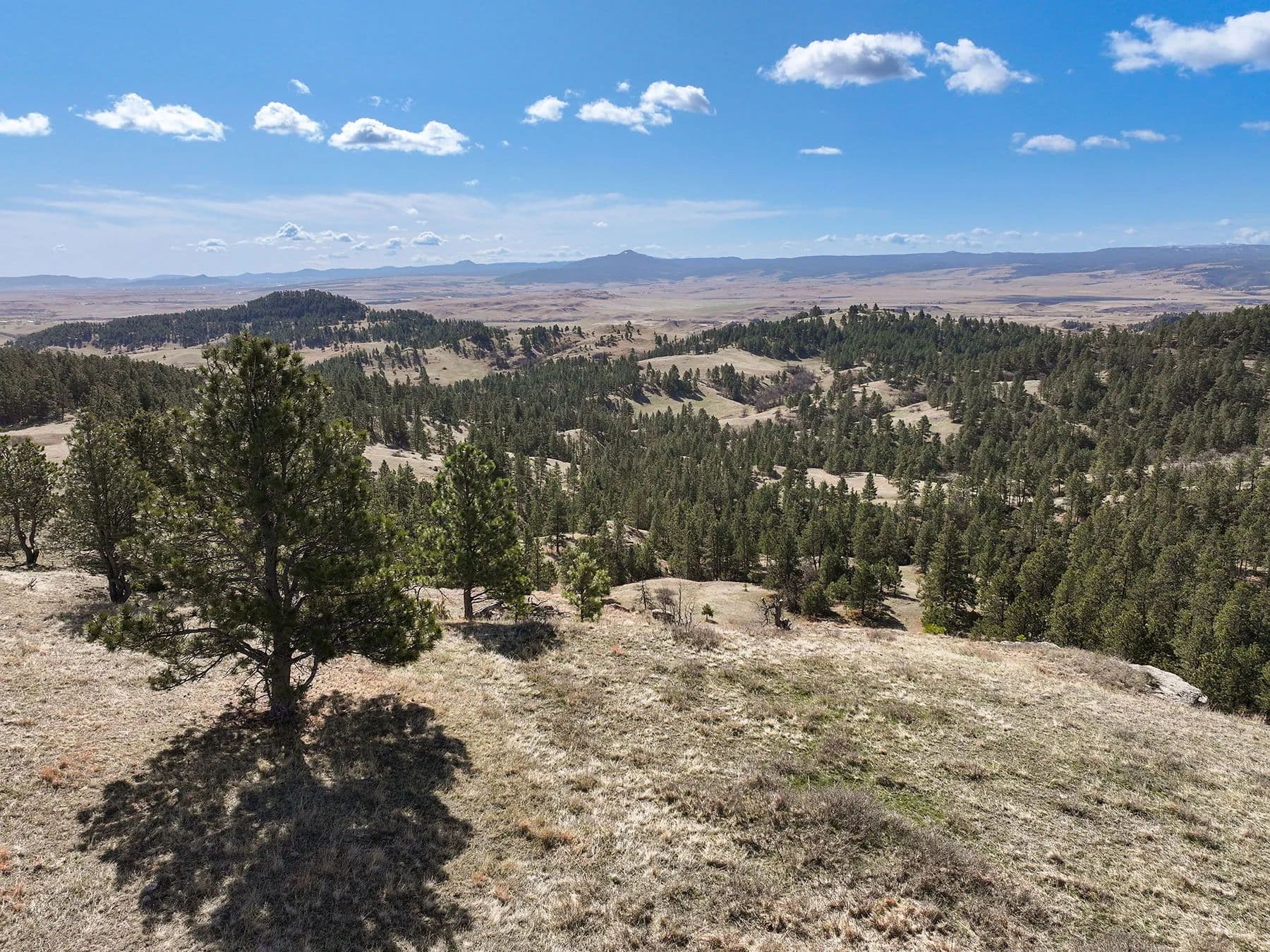~ Views: Exceptional sweeping views of the Wyoming and South Dakota Black Hills. Up close setting is timbered, mountainous, and a dramatic terrain.