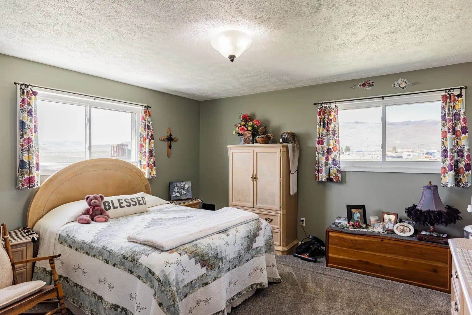 Loafer View Ranch comes with 3 acre-feet of water rights, ensuring a reliable water supply for agricultural use. The property features two wells: a 190’ deep well producing 90 GPM, servicing the main residence, and a 360’ deep, 16” cased well on the north end with a 900 GPM capacity when new, providing ample water for irrigation and livestock.