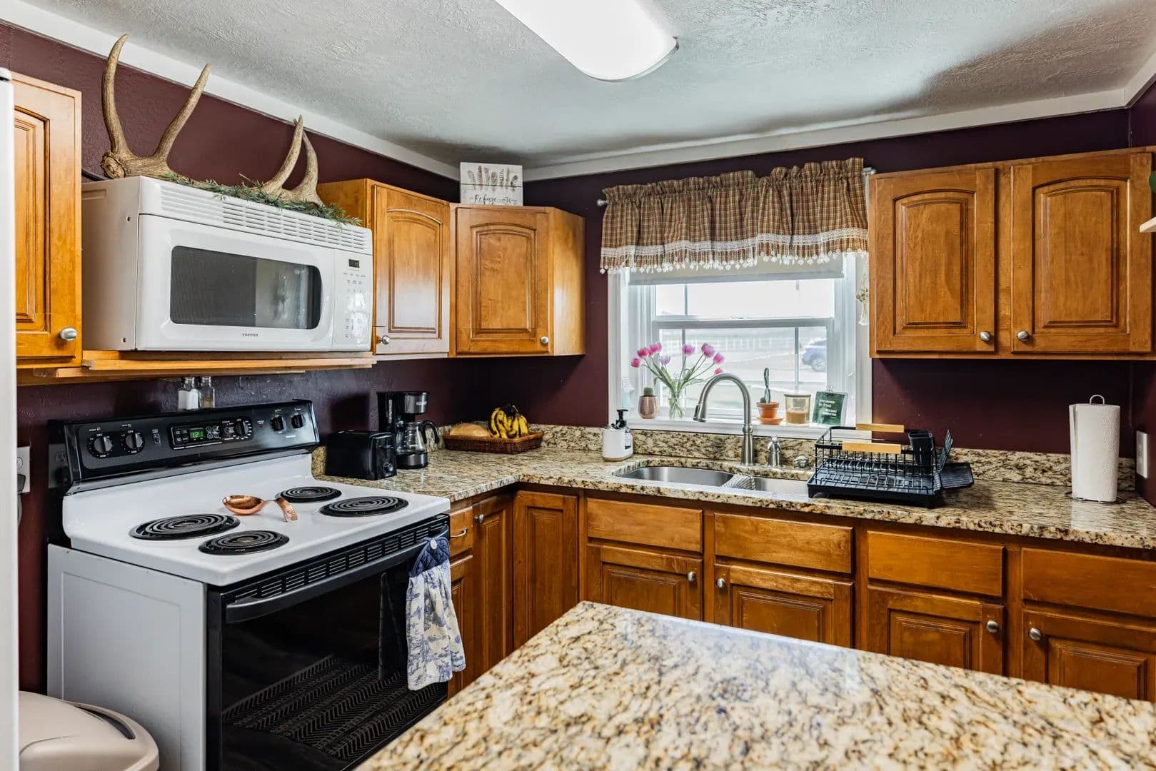 The 2,700 sq. ft. ranch-style home, originally built in 1970 and fully renovated in 2017, boasts 5 bedrooms and 3 full bathrooms. Modern upgrades include a new roof, natural gas connection, and a two-car garage. The open-concept living area, filled with natural light, creates a warm and inviting space perfect for family gatherings or quiet evenings.