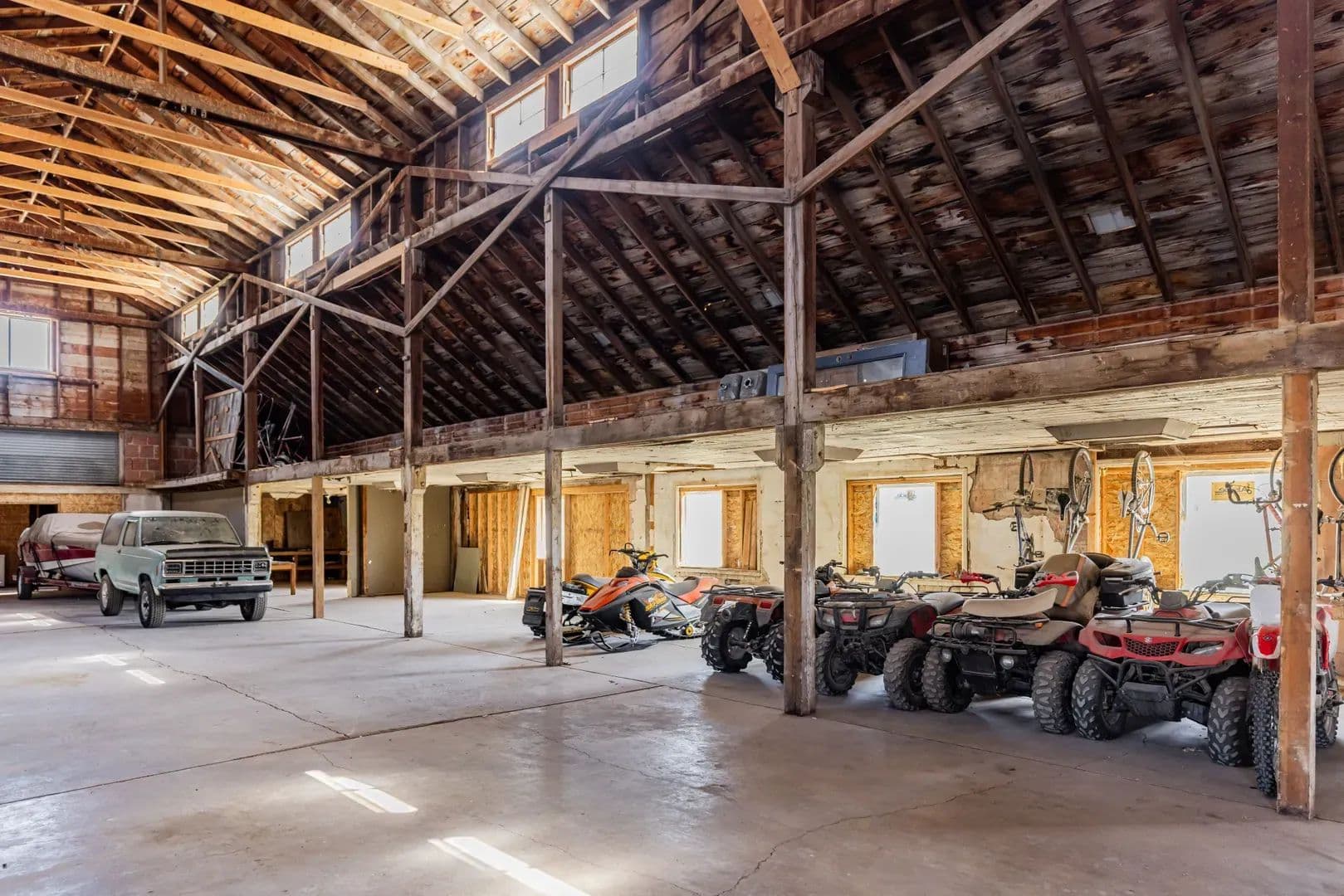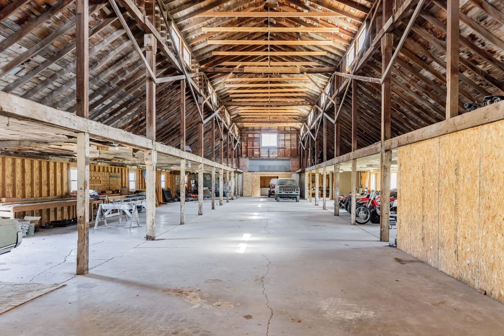 At the heart of the property stands a magnificent 1947-built barn, measuring 50’x180’ with additional bump-outs, totaling over 9,000 sq. ft. Fully restored in 2017, the barn features a new metal roof and siding, concrete flooring, and 220V power supply. Its spacious interior is ideal for equipment storage, livestock housing, or workshop space.