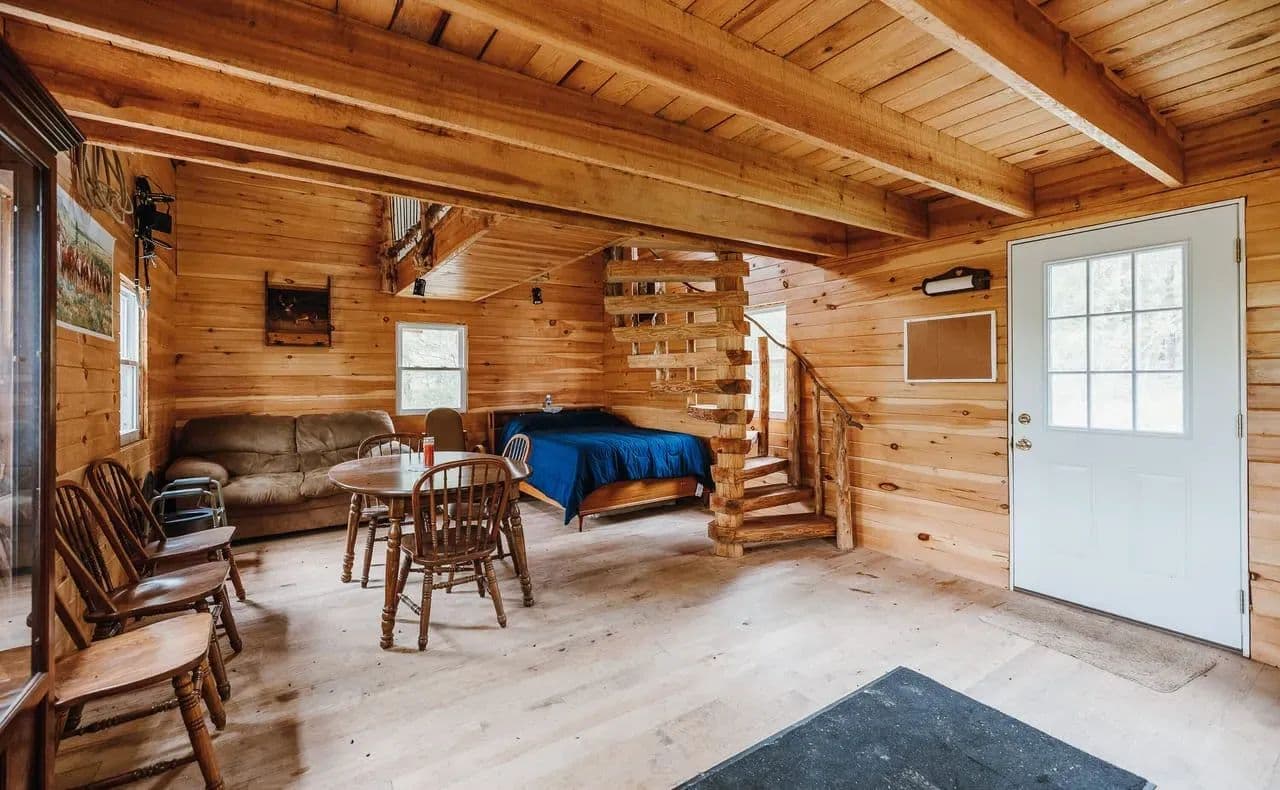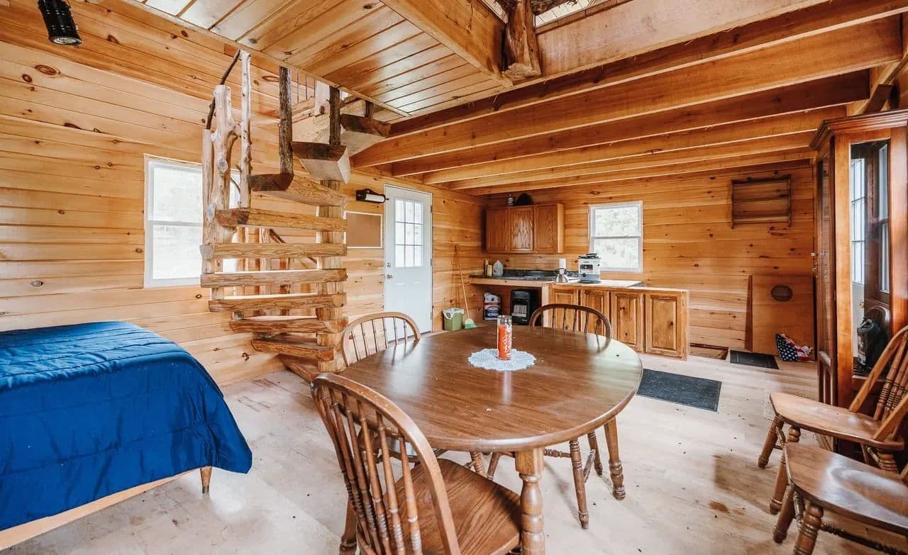 Escape to your own private retreat with this stunning 40-acre property, ideal for off-grid living. Mostly wooded and teeming with wildlife, the land features a beautiful wet weather creek that adds to its natural charm. Nestled in the heart of this peaceful setting is a handcrafted, Amish-built 1-bedroom cabin offering rustic character and unique touches, including a hand-carved spiral staircase leading to a cozy loft. Enjoy breathtaking views from the back deck that overlooks the expansive property. The cabin sits atop a full walk-out basement, providing additional space and potential. While there is no water or electric currently on the property, electric access is nearby, making it easy to connect if desired. Whether you're looking for a hunting retreat, weekend getaway, or a step toward sustainable living, this off-grid haven offers endless potential in a truly serene environment.