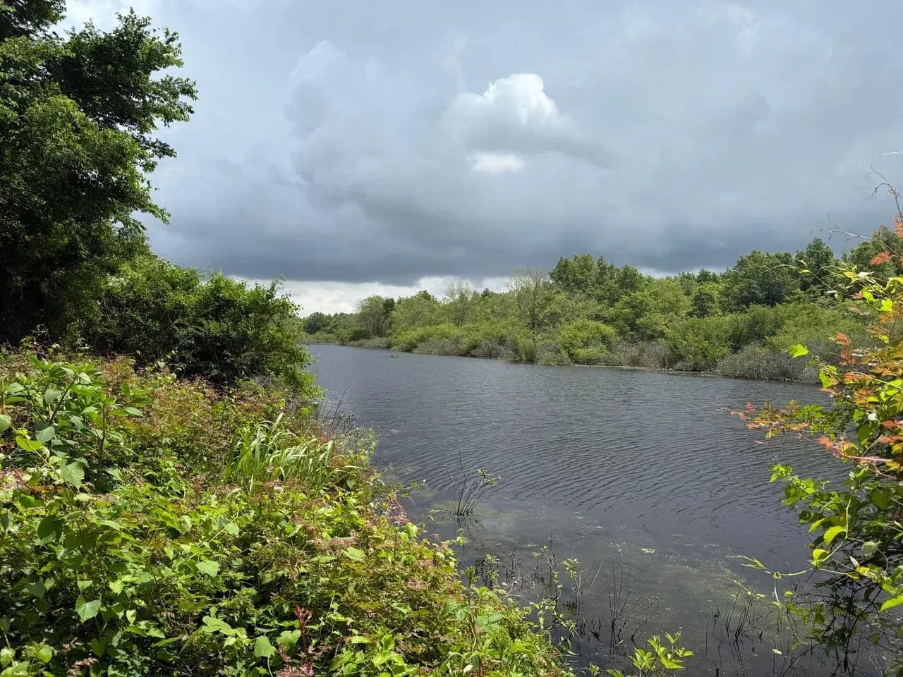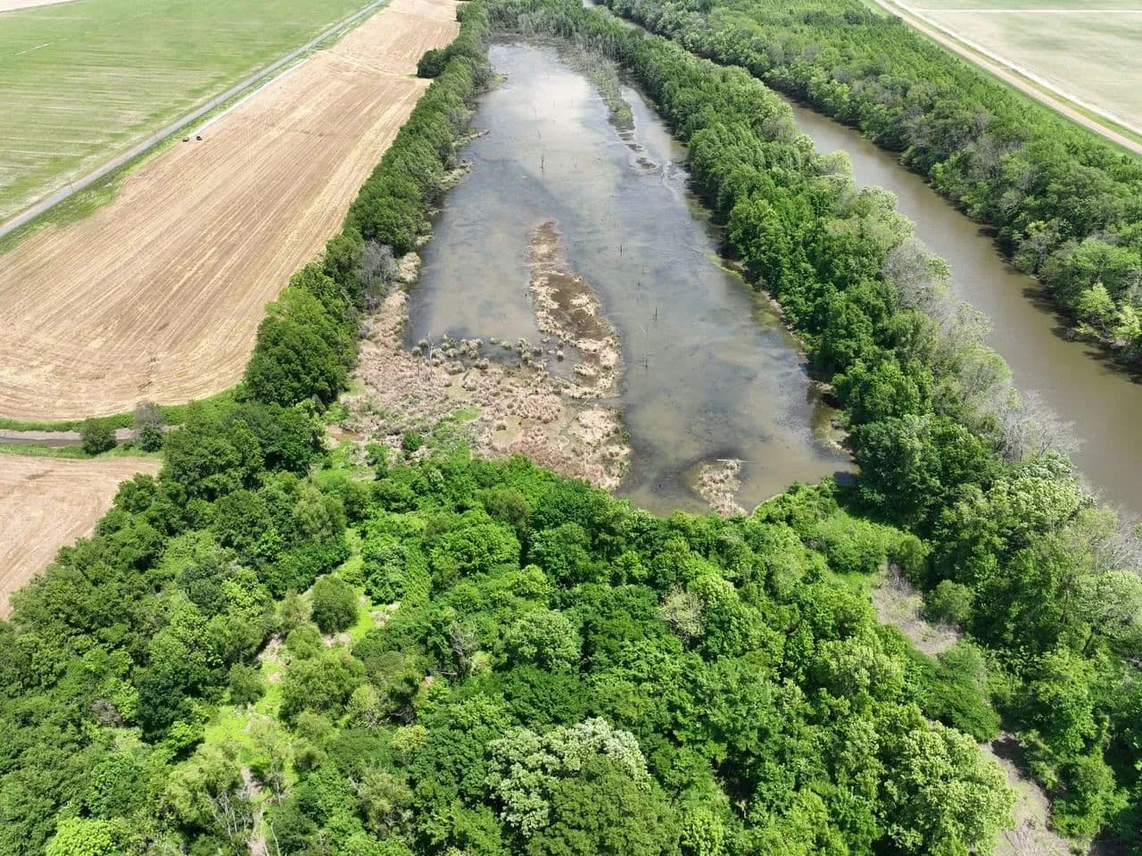 Two natural water features, including one enhanced by a screw-gate water control structure—ideal for duck habitat management