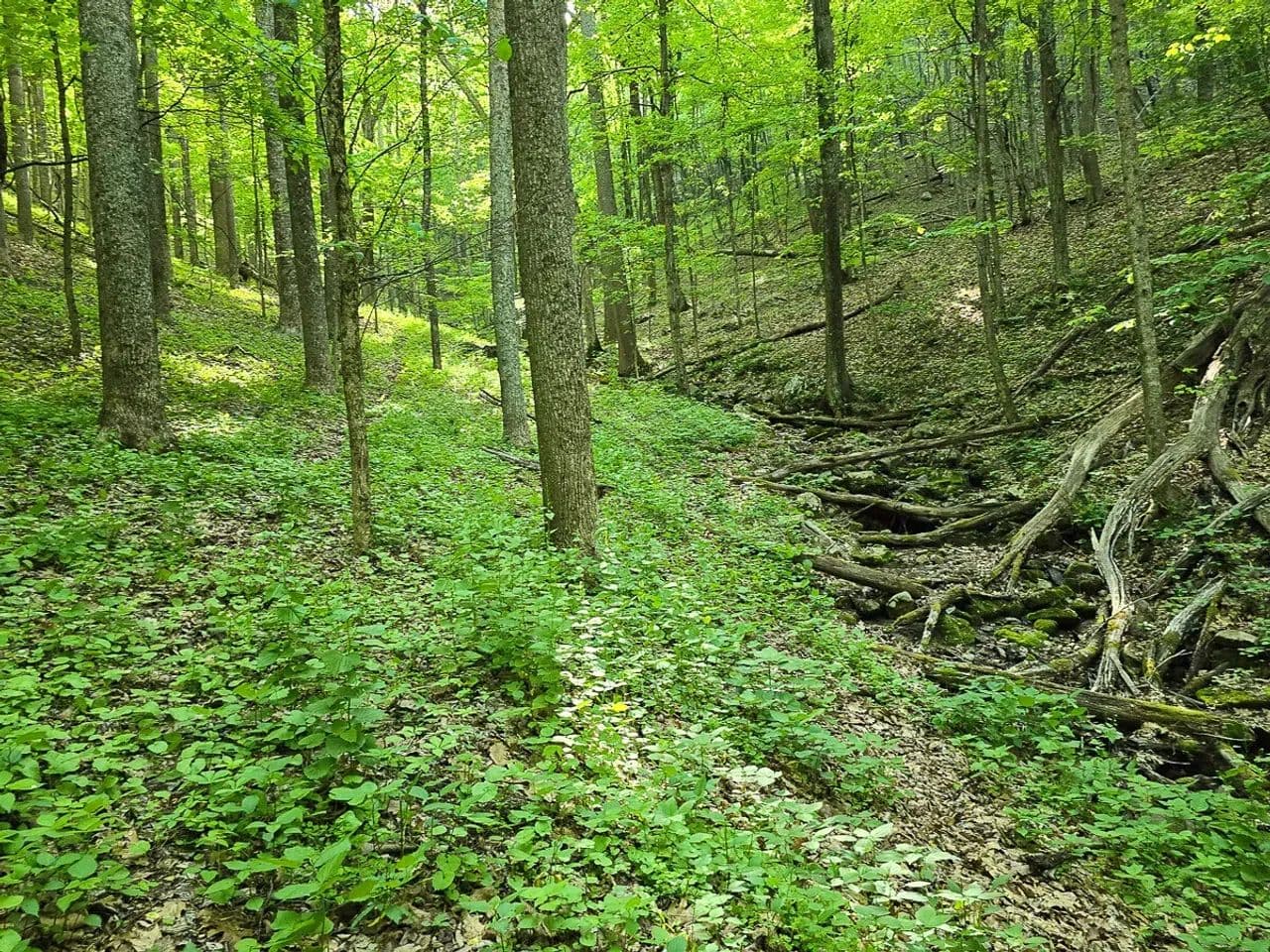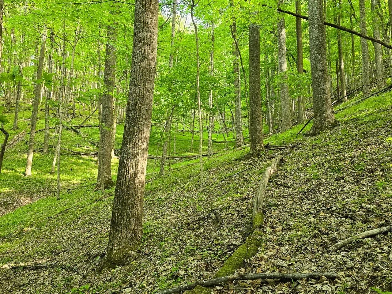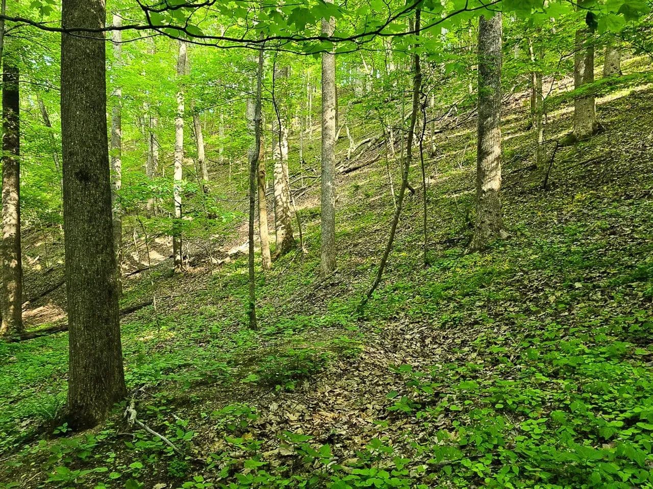 The land features a natural spring and a beautiful, clear mountain creek that winds along the property, adding both charm and a natural water source. Towering oaks, maples, and other hardwoods provide a shady canopy, rich fall color, and ideal habitat for wildlife. This is nice hunting tract, common game species seen on this property include deer, black bear, and turkey.