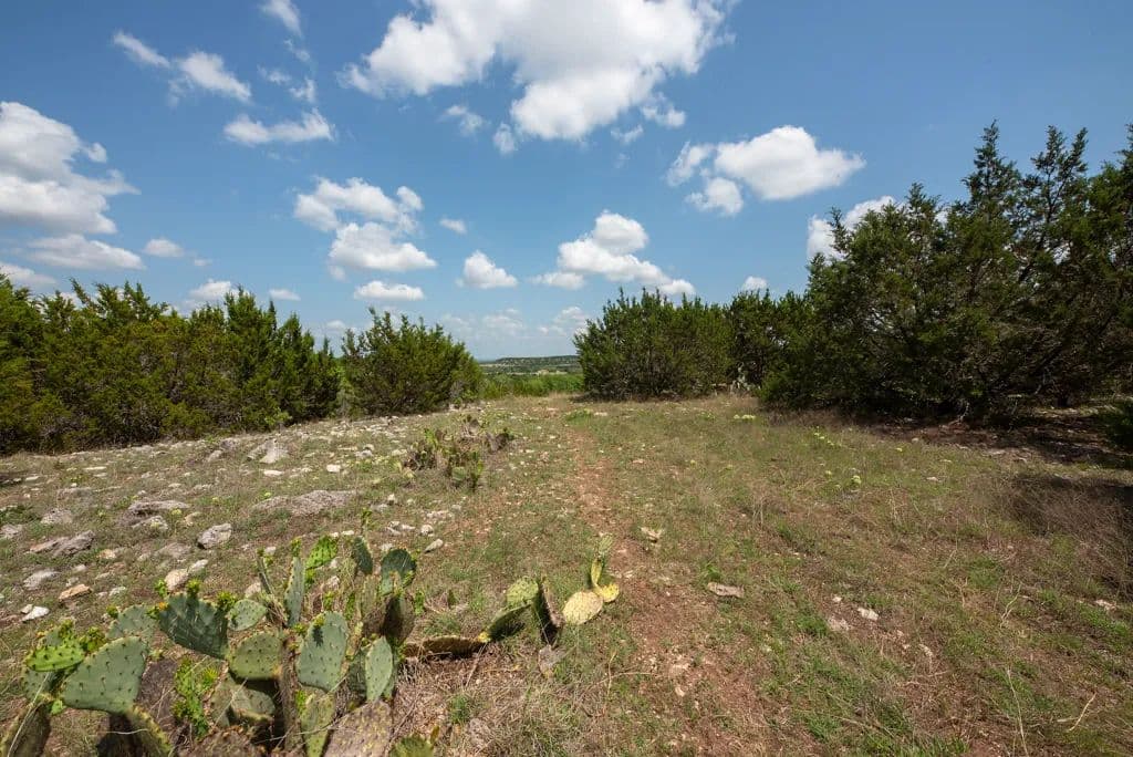 Located within Texas' Grand Prairie region, the ranch’s rolling terrain offers approximately 80 feet of elevation change, ranging from 1,480 to 1,560 feet above sea level. The higher elevations feature limestone outcrops and darker soils, while the lower elevations transition into gravelly clay loams and fertile silty clay loams. This diverse landscape supports rich wildlife habitats and offers scenic views, characteristic of the Texas Hill Country.