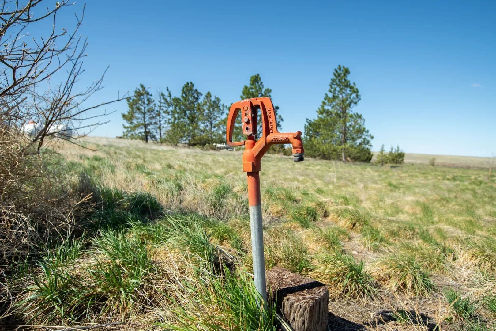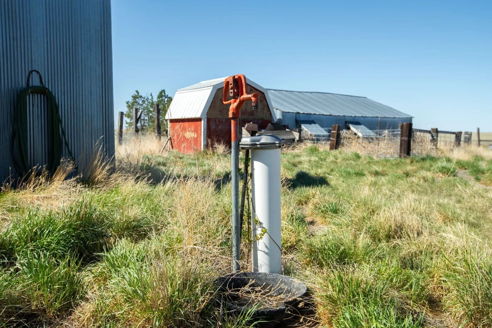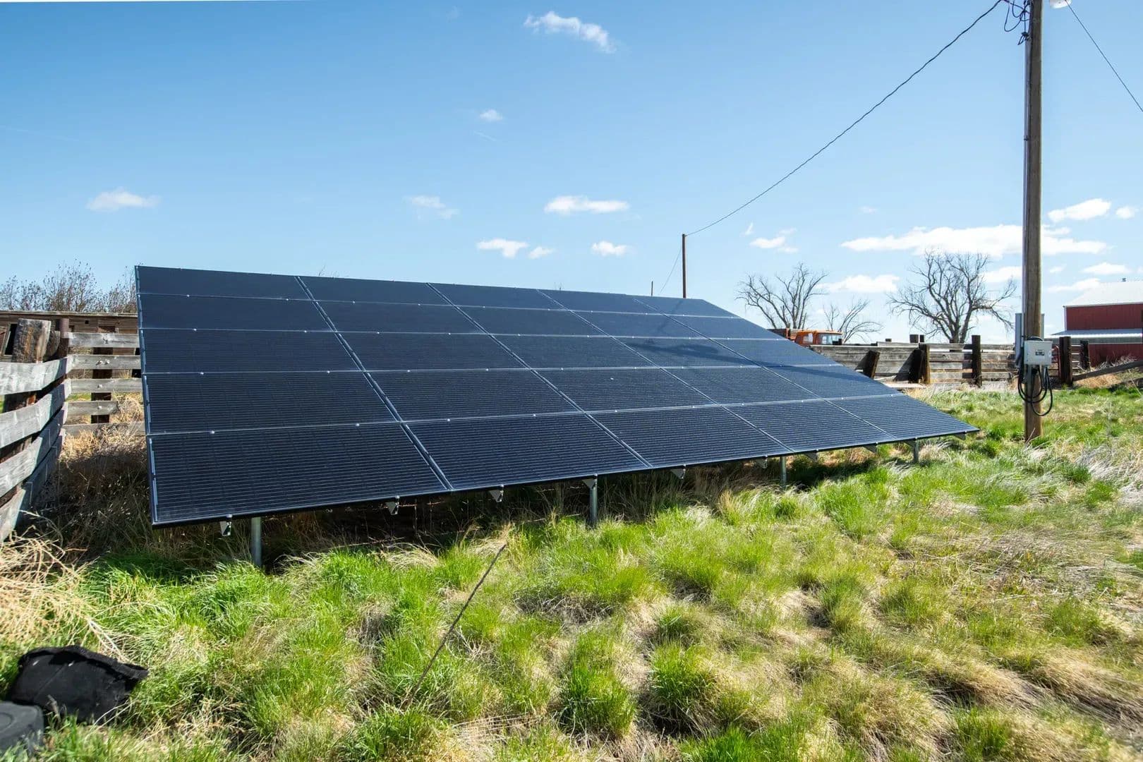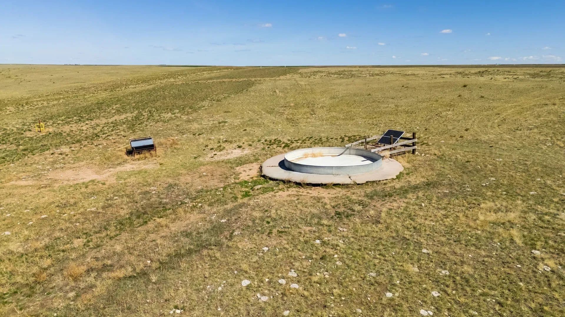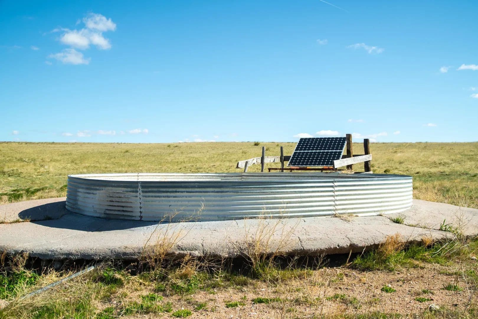 • Solar-powered well with stock tank and solar panels at stockyard.