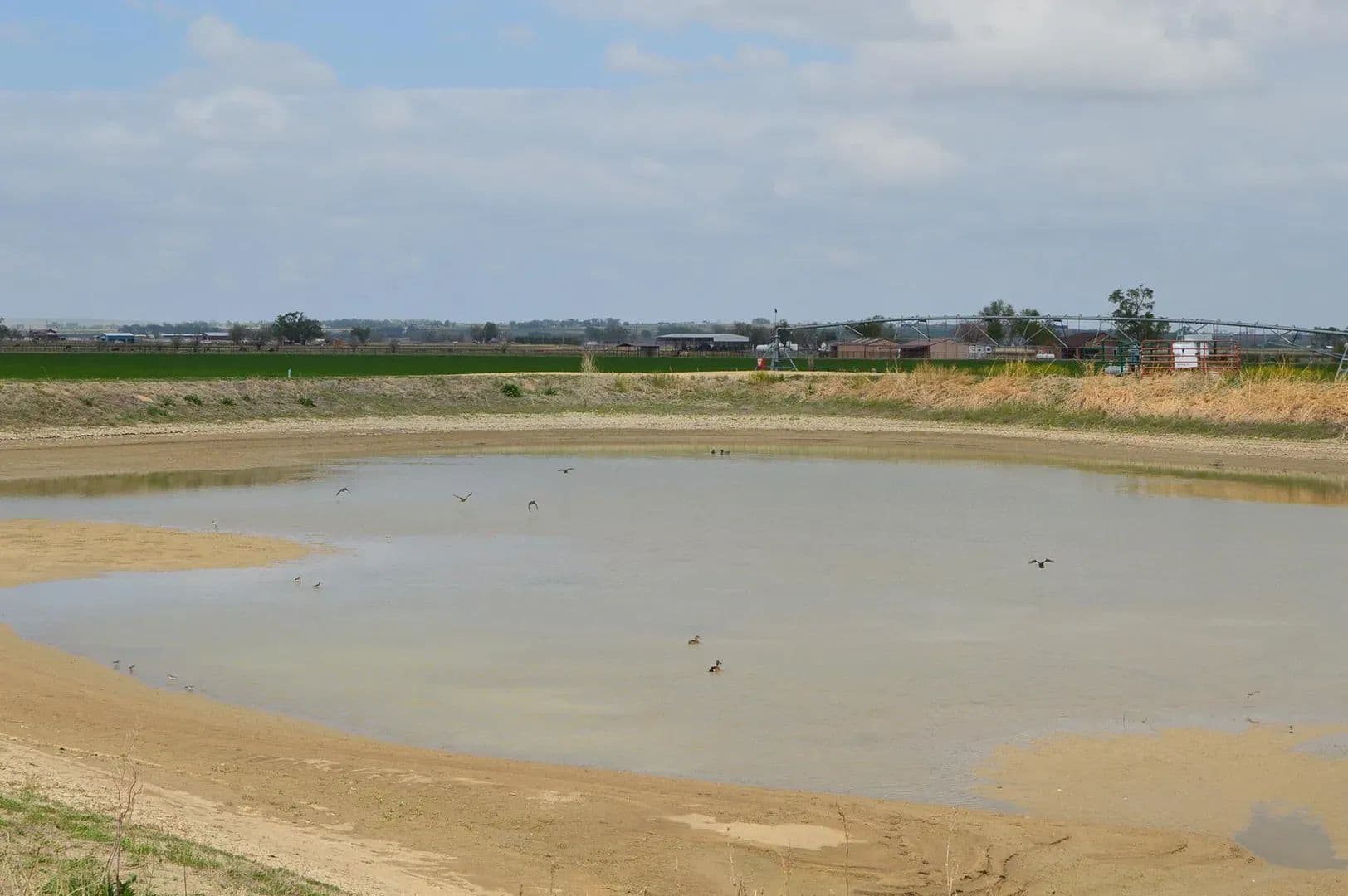 South Farm: 141± acres with 100 acres irrigated by a 2018 Zimmatic pivot and supplied by a 10± acre-foot pond. Water rights include 120 shares of Otero Canal, with additional Catlin water transferable from the North Farm via a 12” underground pipeline. Pivot corners are irrigated with a concrete ditch and risers. Re-seeded to alfalfa in 2024, this field has historically yielded 3 tons/acre of alfalfa/grass hay. Corn and wheat base included. Access from paved County Roads Z and 24.