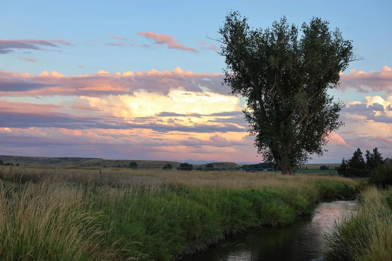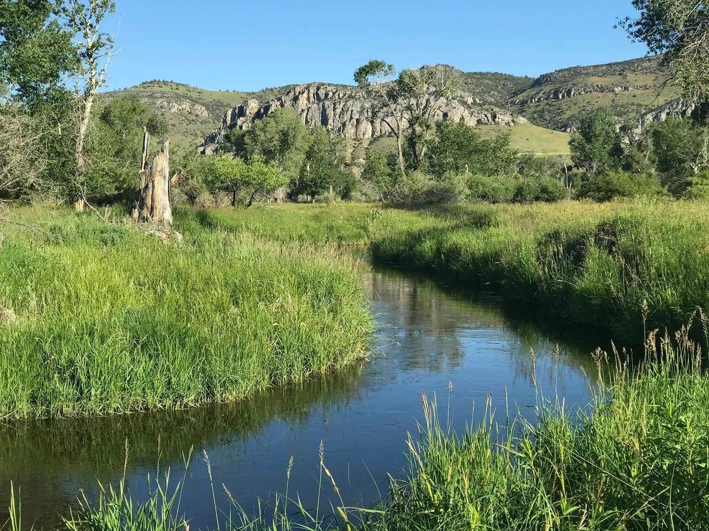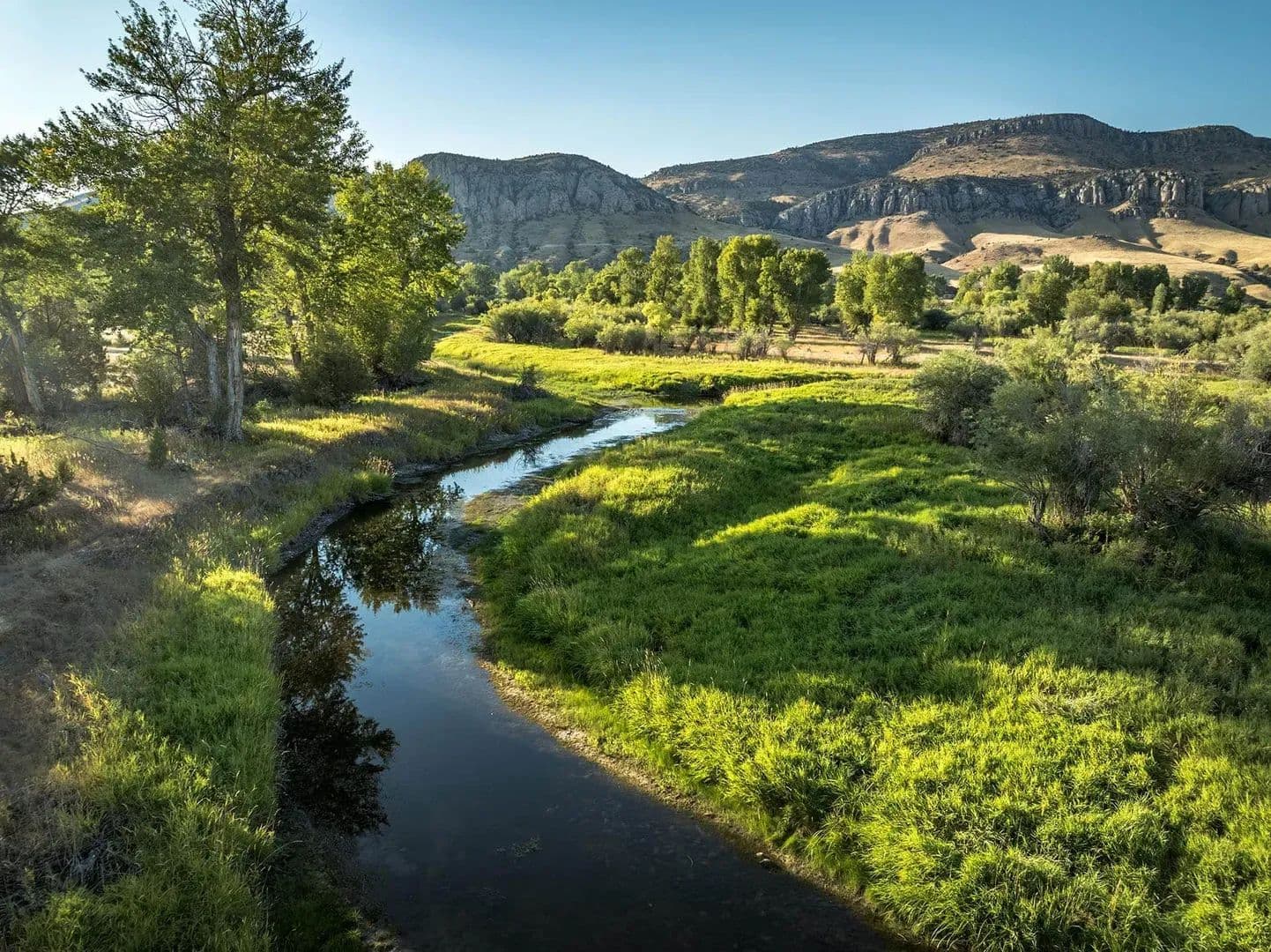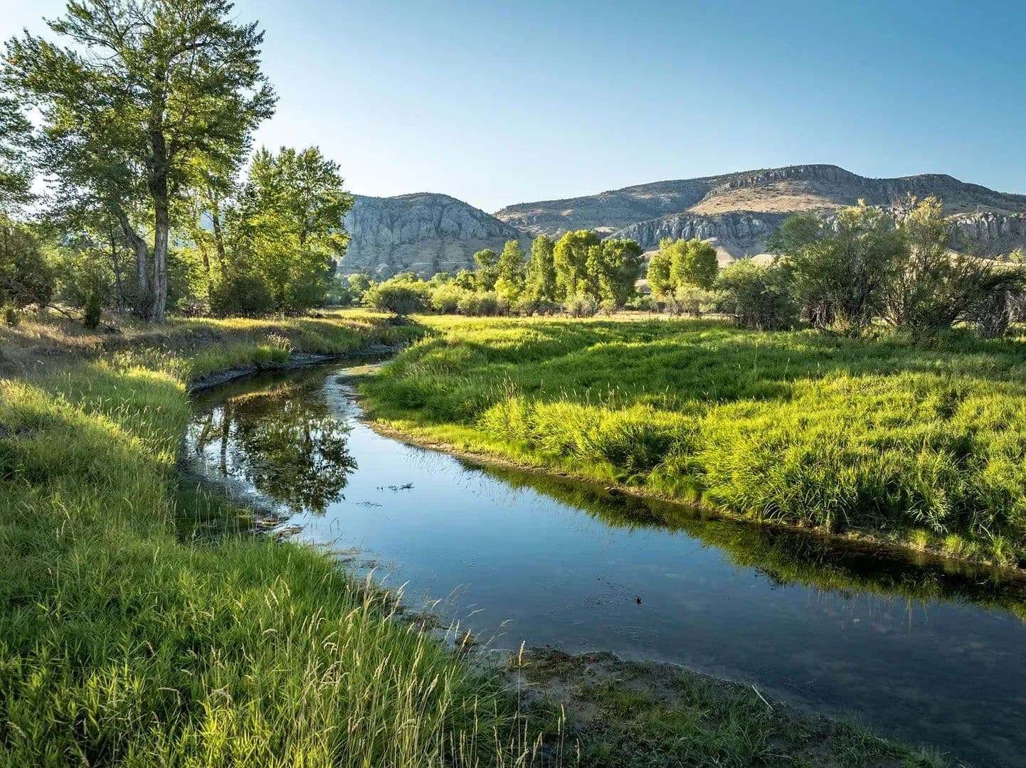 Perhaps the most unique aspect of the ranch is the lush, spring-laden bottomland along the Jefferson River. Here, springs, wetland complexes, and remnant river sloughs intertwine among hundred-year-old cottonwoods. The wildlife is prolific. A wide variety of waterfowl, including ducks (mallards, widgeon, blue-winged teal, cinnamon teal), Canada geese, and tundra swans, as well as geese, turkey, pheasant, eagles, sandhill cranes, and songbirds, are perpetually present. Big game, including whitetail deer, moose, and occasionally elk also call the ranch home.