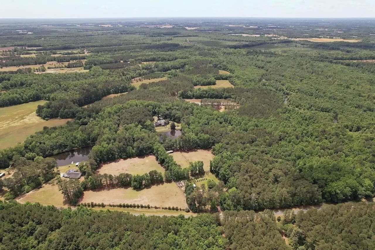 Strategically located for privacy without sacrificing convenience, the estate is just 1 hour from North Myrtle Beach, SC, 1 hour from Fayetteville, NC, and 30 minutes from Lumberton, NC—making it ideal for weekend getaways, destination weddings, or full-time country living with easy access to the coast and nearby cities.