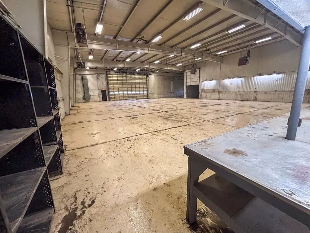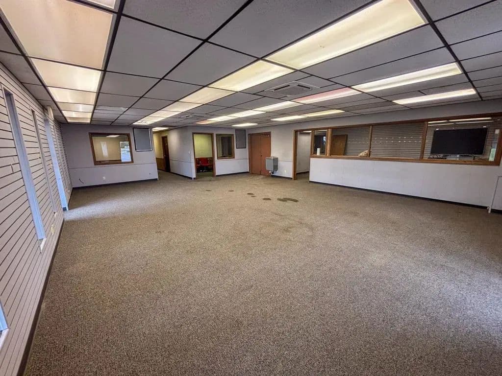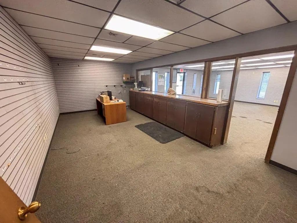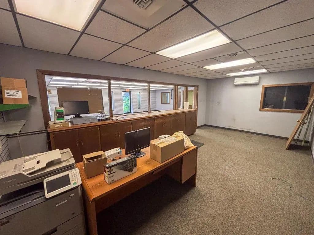 An additional 2,600 square feet of finished office space enhances the property’s operational appeal. This area includes four private offices, men’s and women’s lavatories, a showroom or display area, a back counter/parts area, and a break room for staff. Mini-split units throughout the office ensure a comfortable climate year-round.