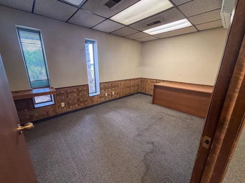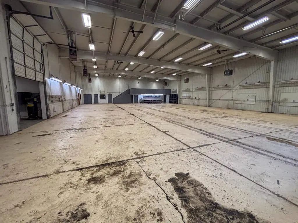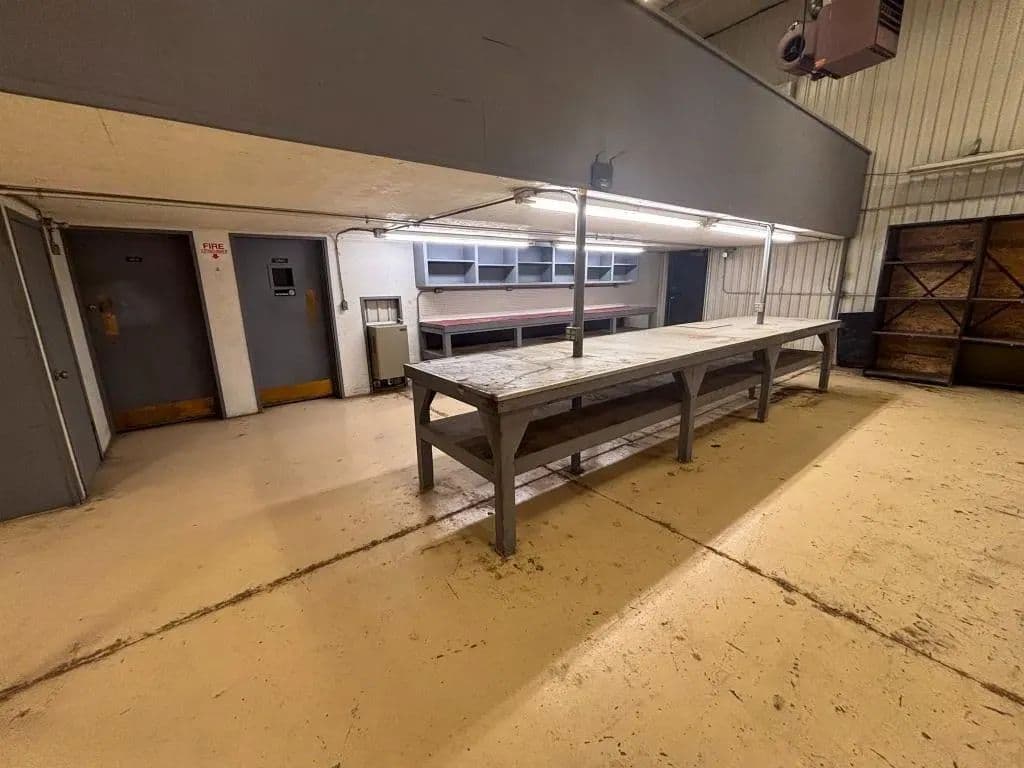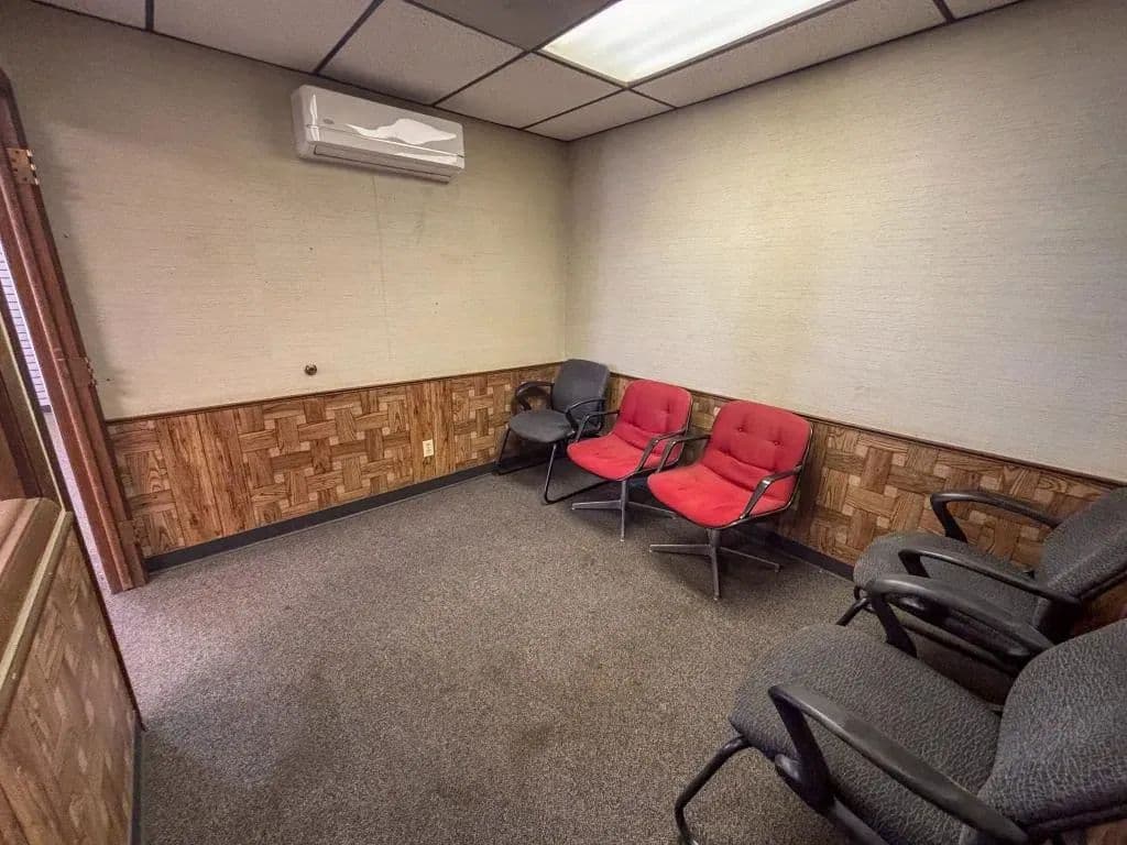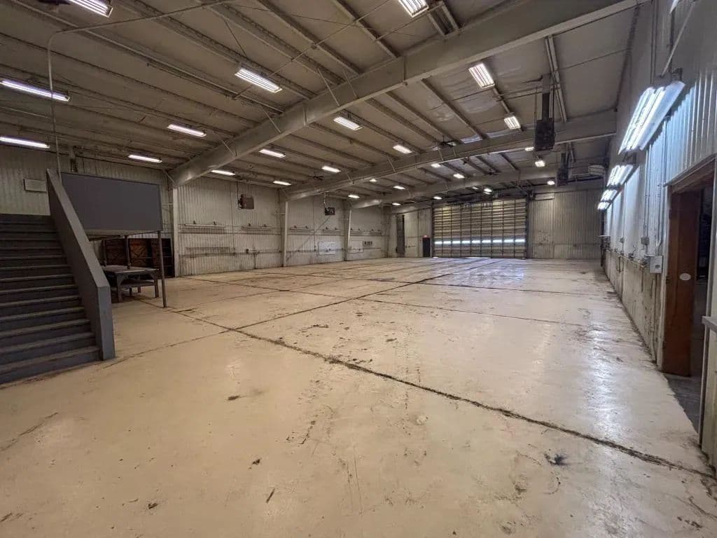 An additional 2,600 square feet of finished office space enhances the property’s operational appeal. This area includes four private offices, men’s and women’s lavatories, a showroom or display area, a back counter/parts area, and a break room for staff. Mini-split units throughout the office ensure a comfortable climate year-round.