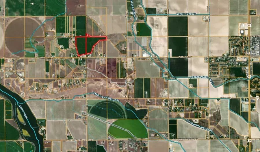 Prime 34-acre farmland in Wilder, Idaho, in the heart of Canyon County's agricultural region. Investment Opportunity with a long-term lease in place. Level ground ideal for row crops, pasture, or permanent plantings. Strong investment with long-term lease in place for immediate income. Potential for building lot permit. Land