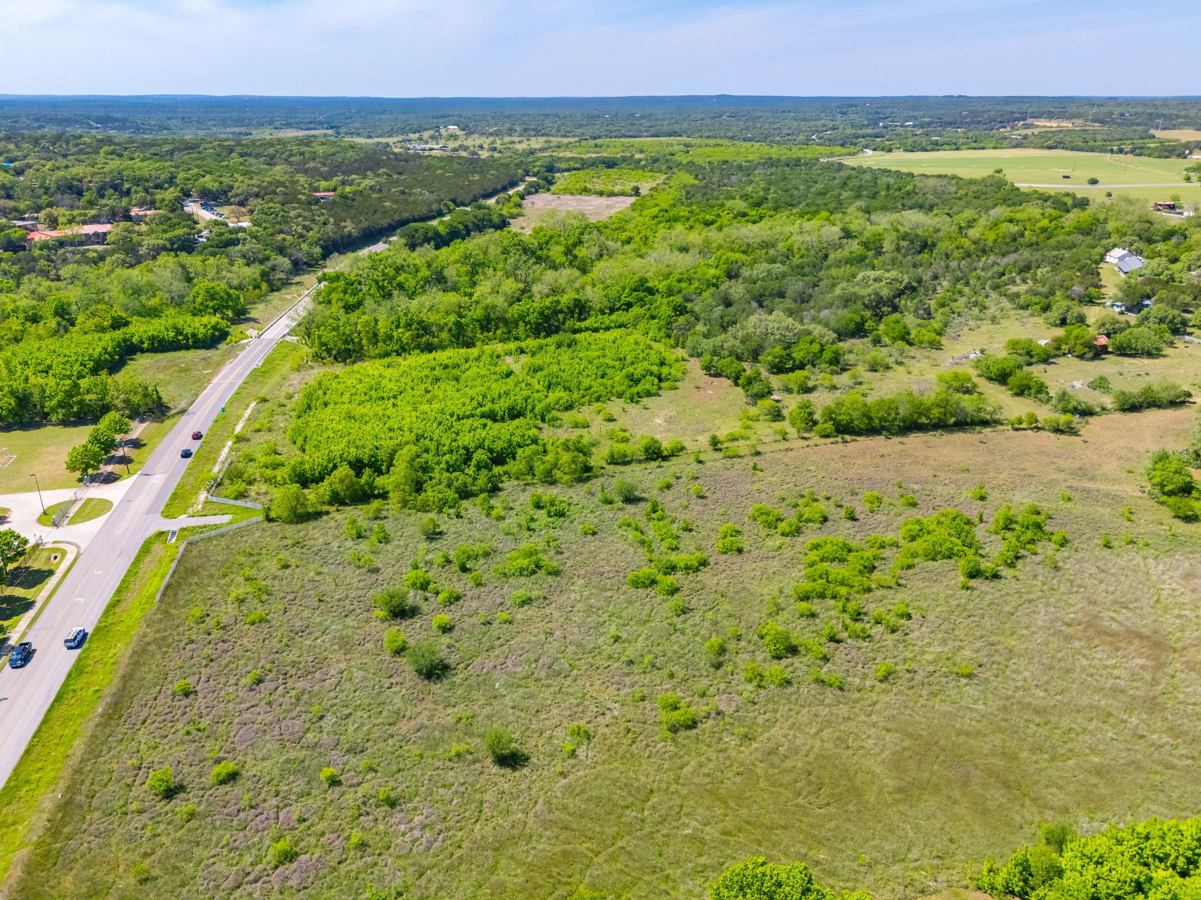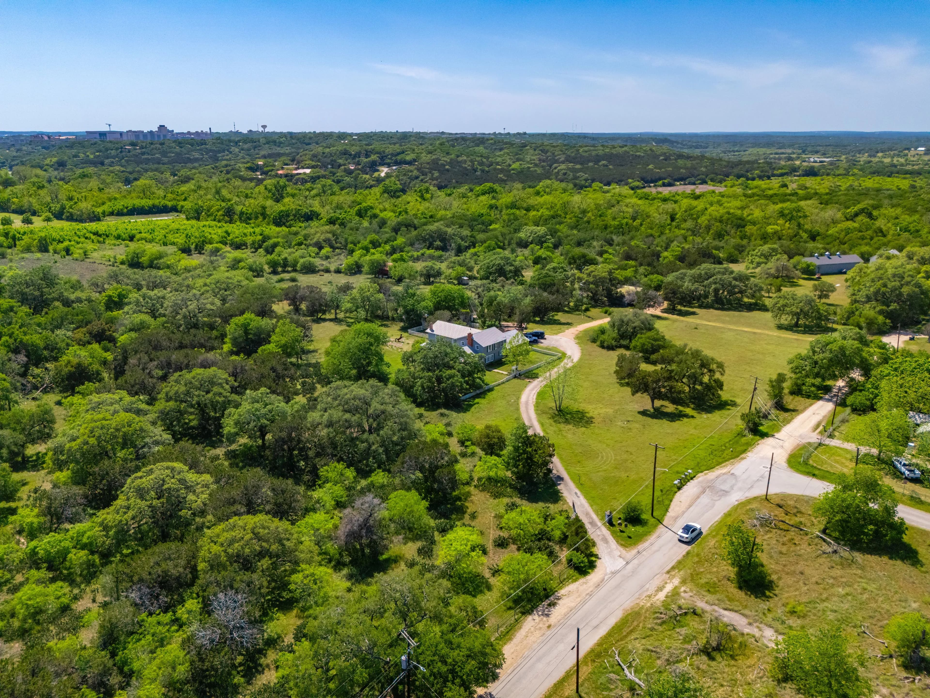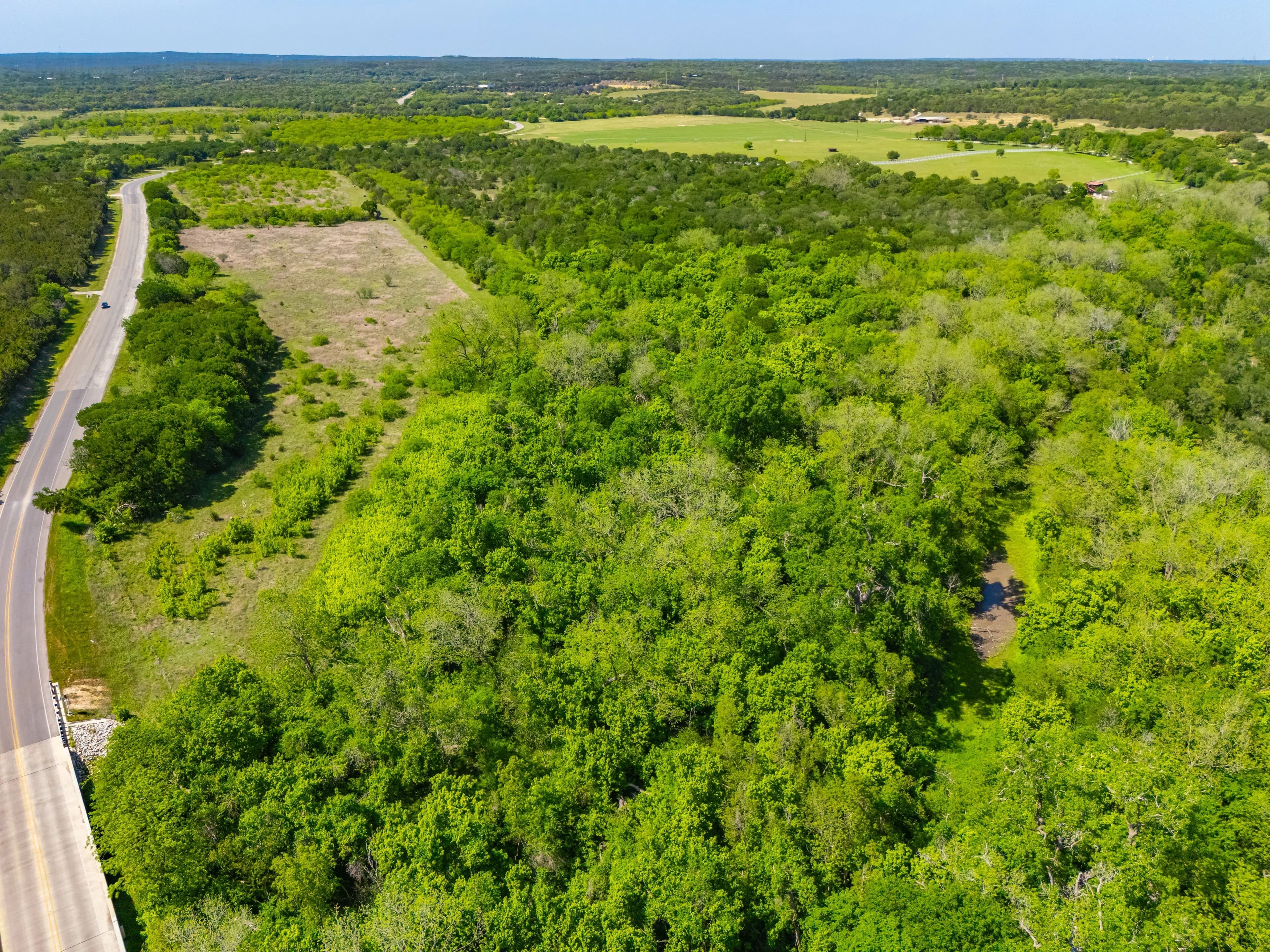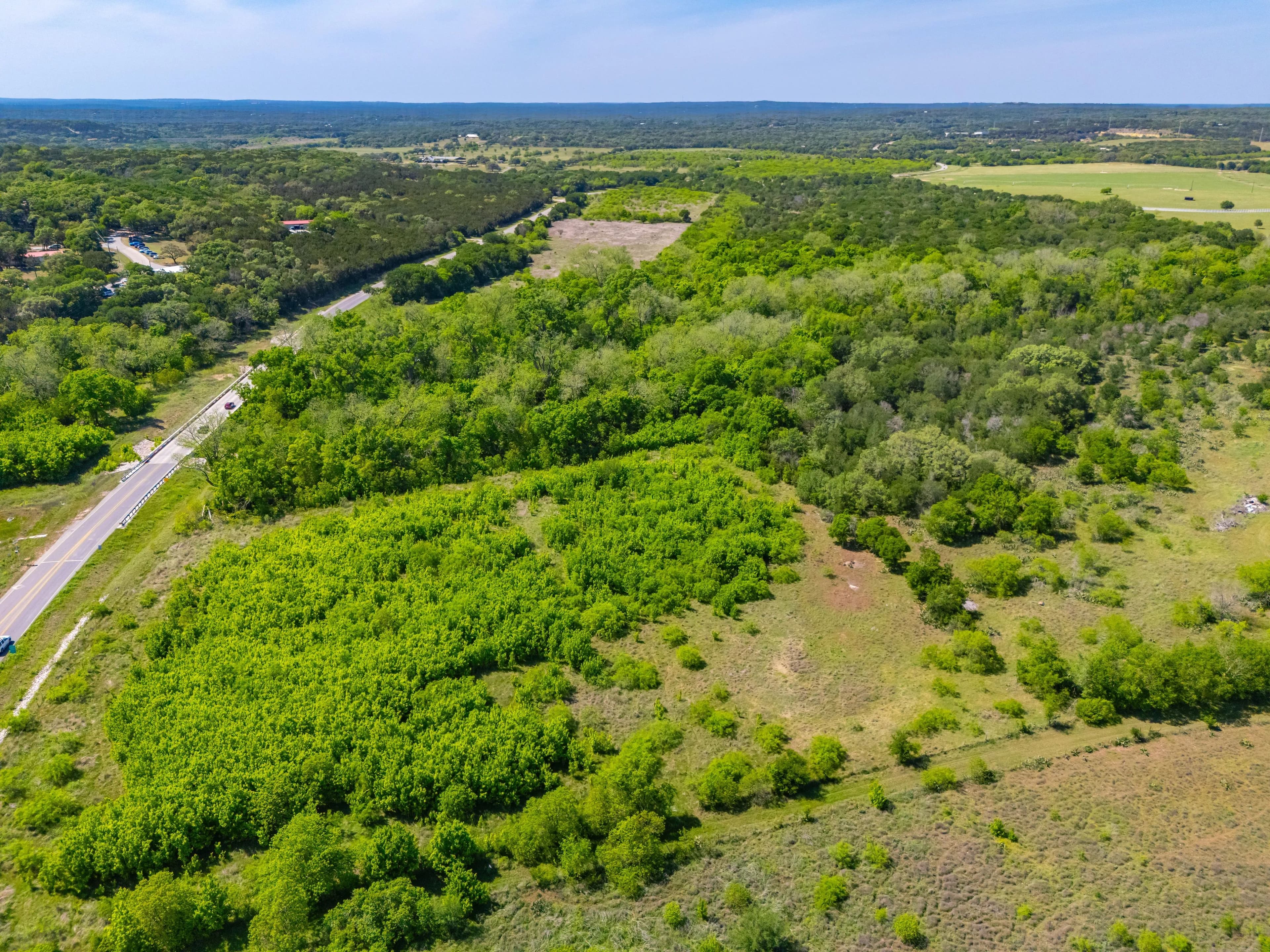 The ranch is located off of Spring Rd, just one mile from the Texas State University football stadium. Its position offers convenient proximity to IH-35 without the disturbance of road noise. Additionally, Lime Kiln Road/CR 225 is the Western boundary, providing multiple access and entry points.