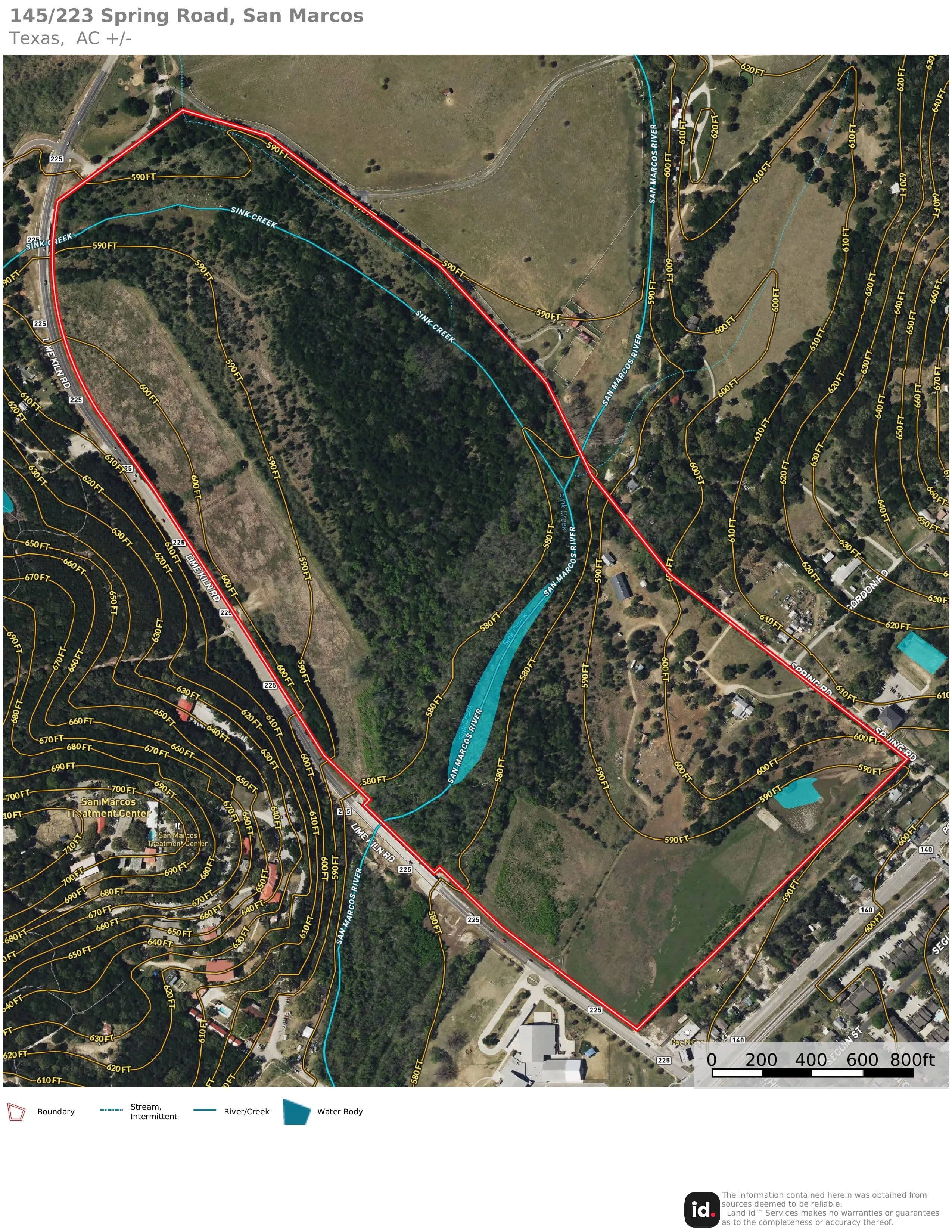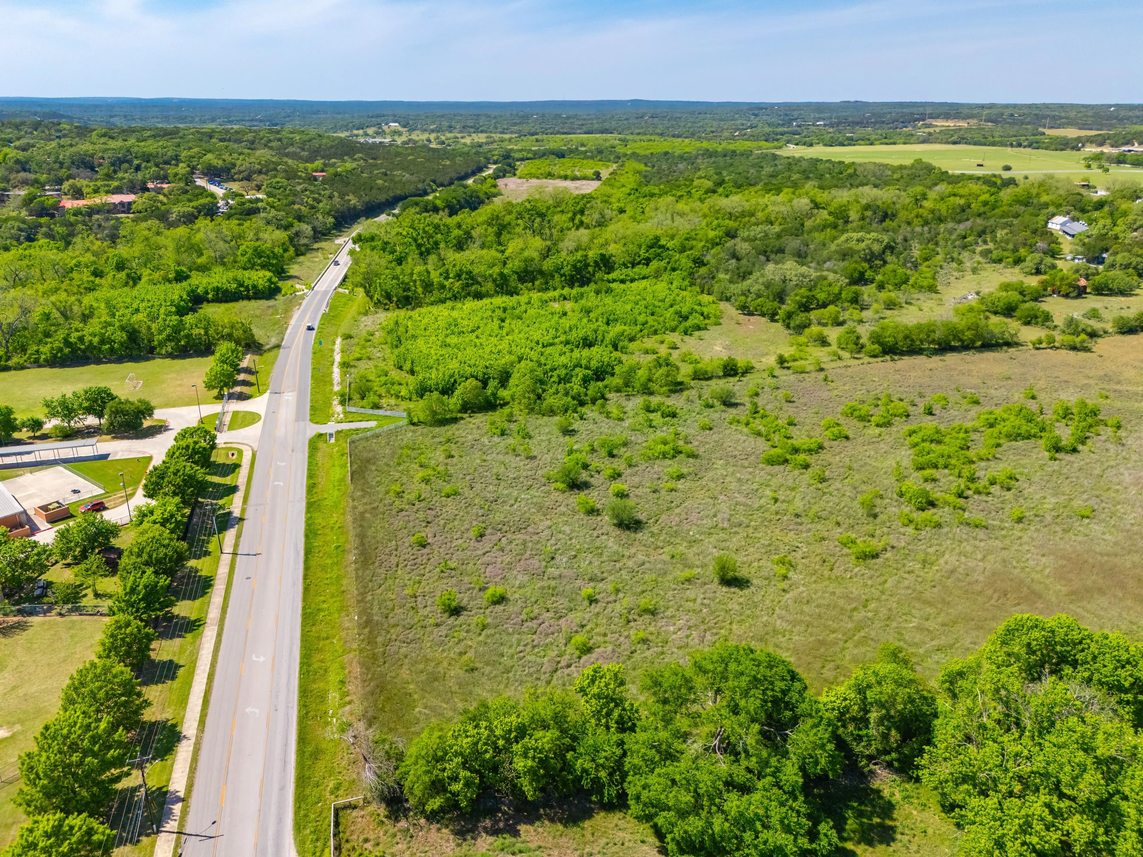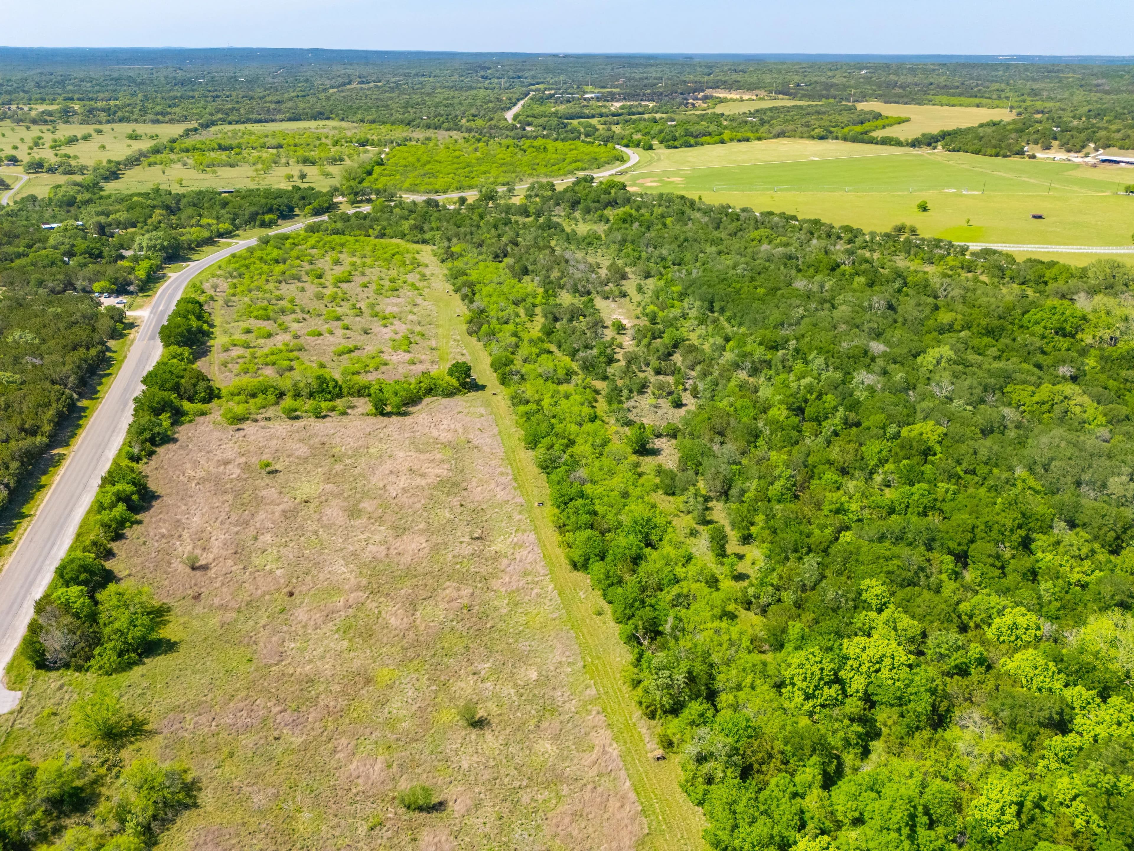 The ranch is located off of Spring Rd, just one mile from the Texas State University football stadium. Its position offers convenient proximity to IH-35 without the disturbance of road noise. Additionally, Lime Kiln Road/CR 225 is the Western boundary, providing multiple access and entry points.