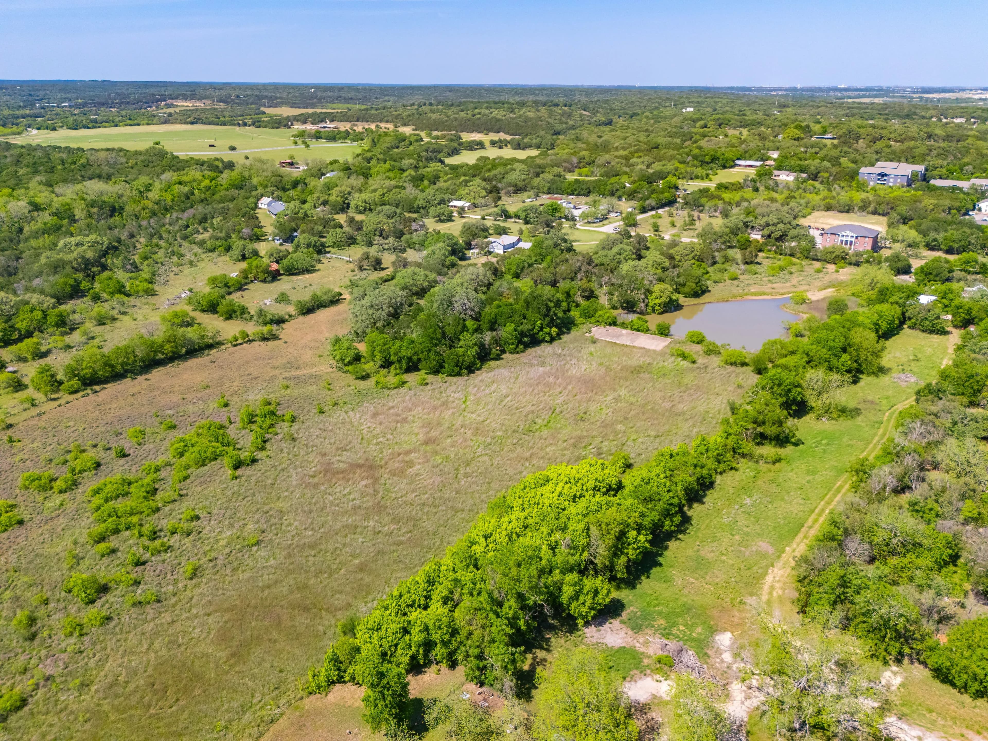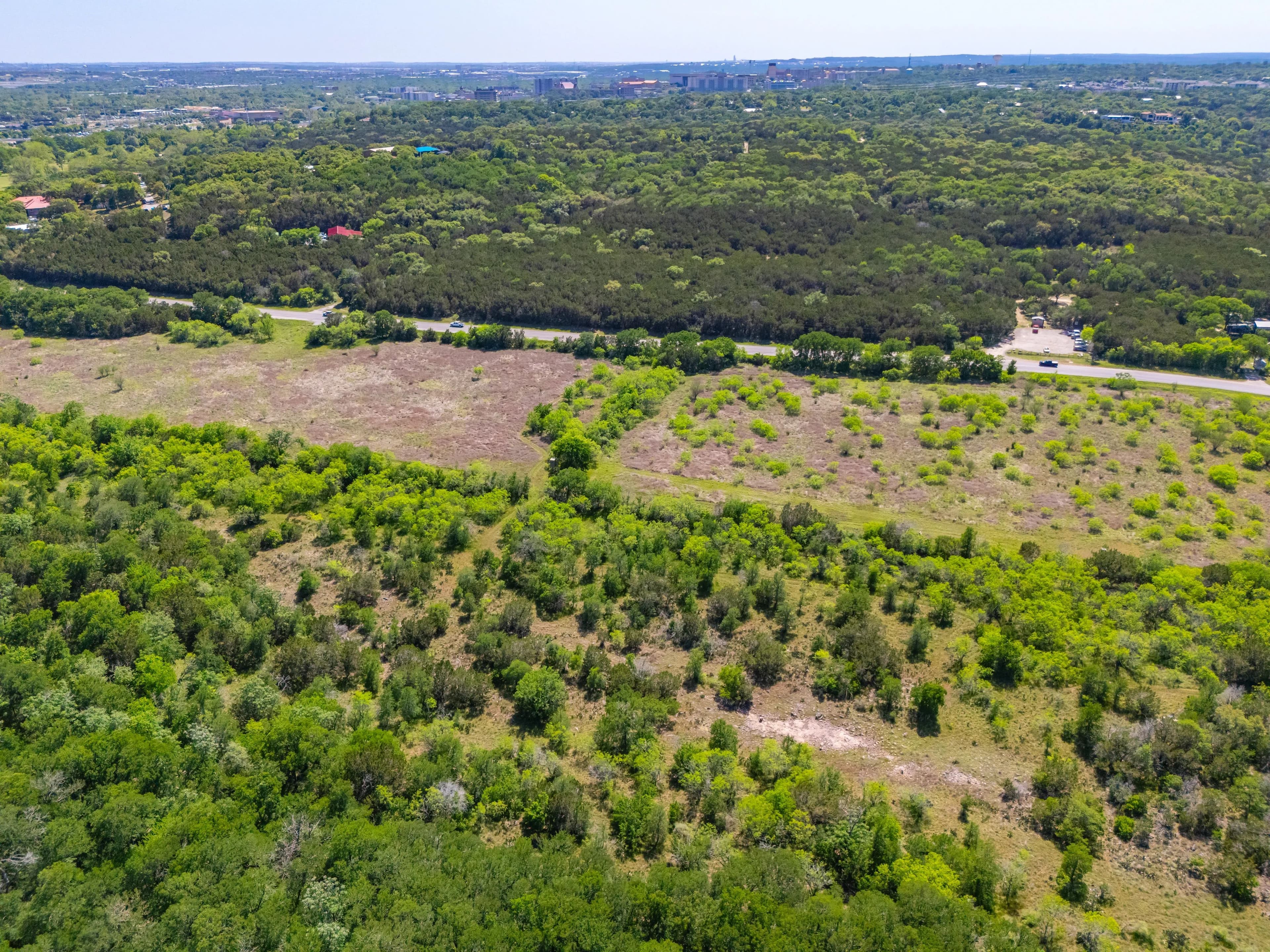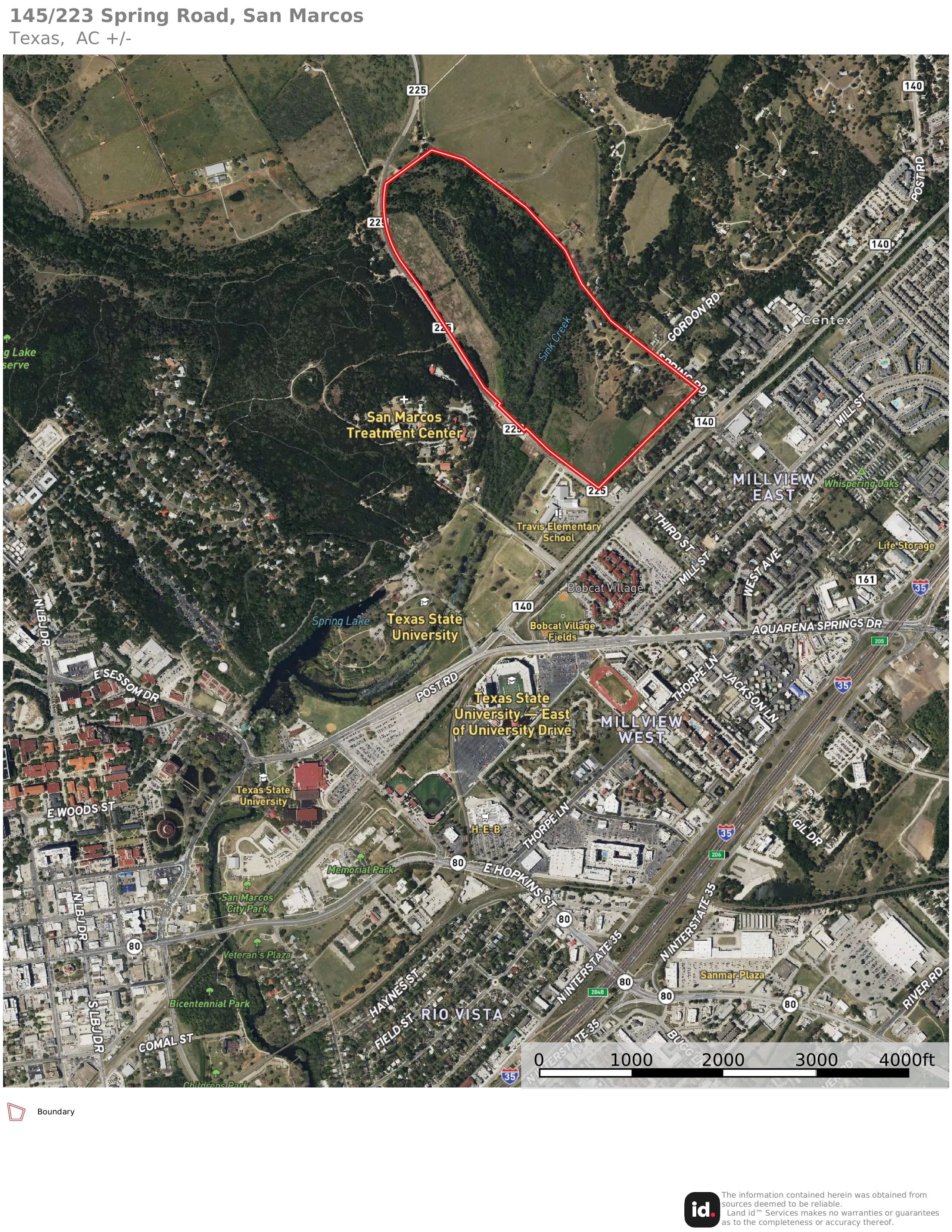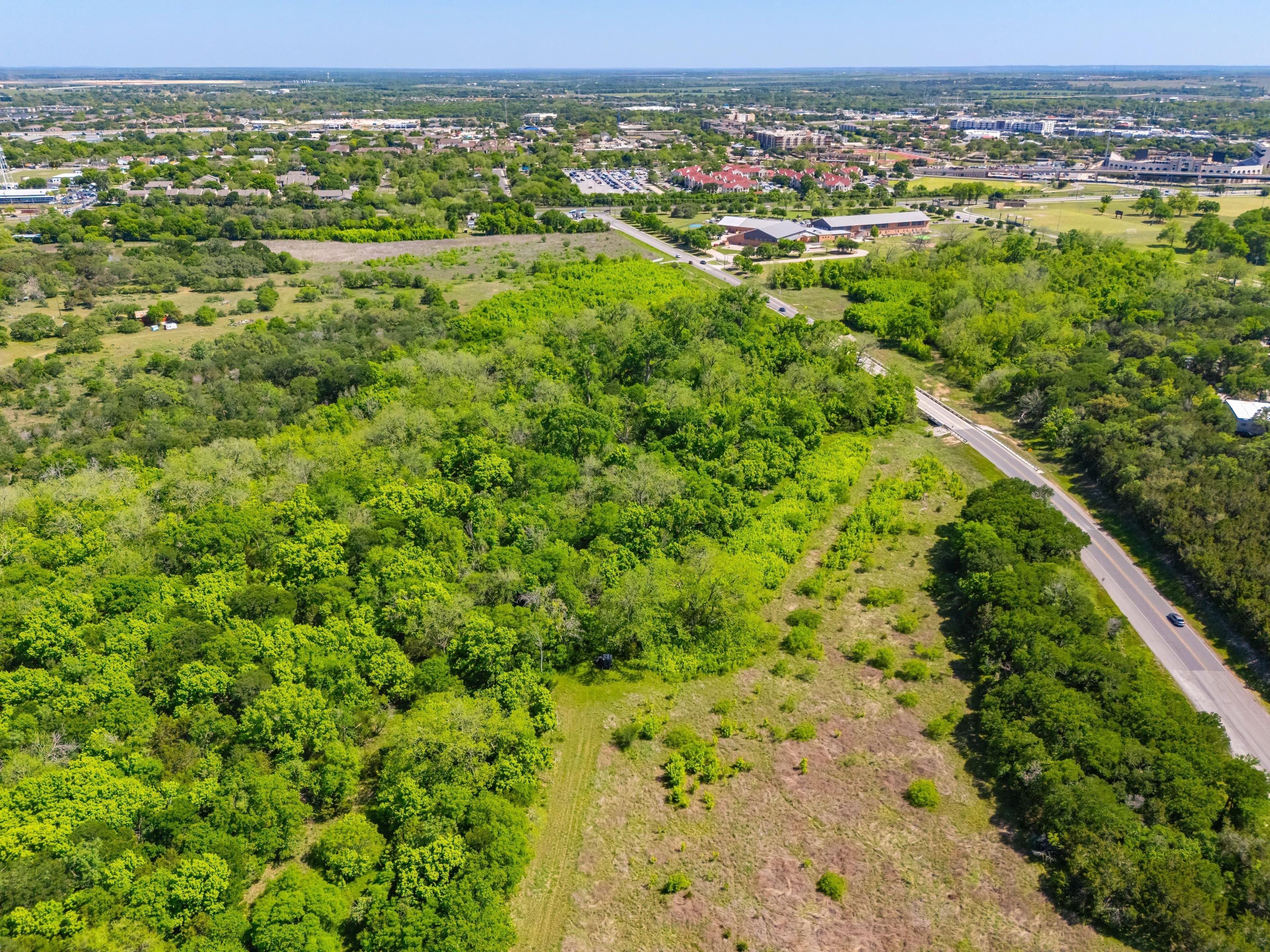 The ranch is located off of Spring Rd, just one mile from the Texas State University football stadium. Its position offers convenient proximity to IH-35 without the disturbance of road noise. Additionally, Lime Kiln Road/CR 225 is the Western boundary, providing multiple access and entry points.
