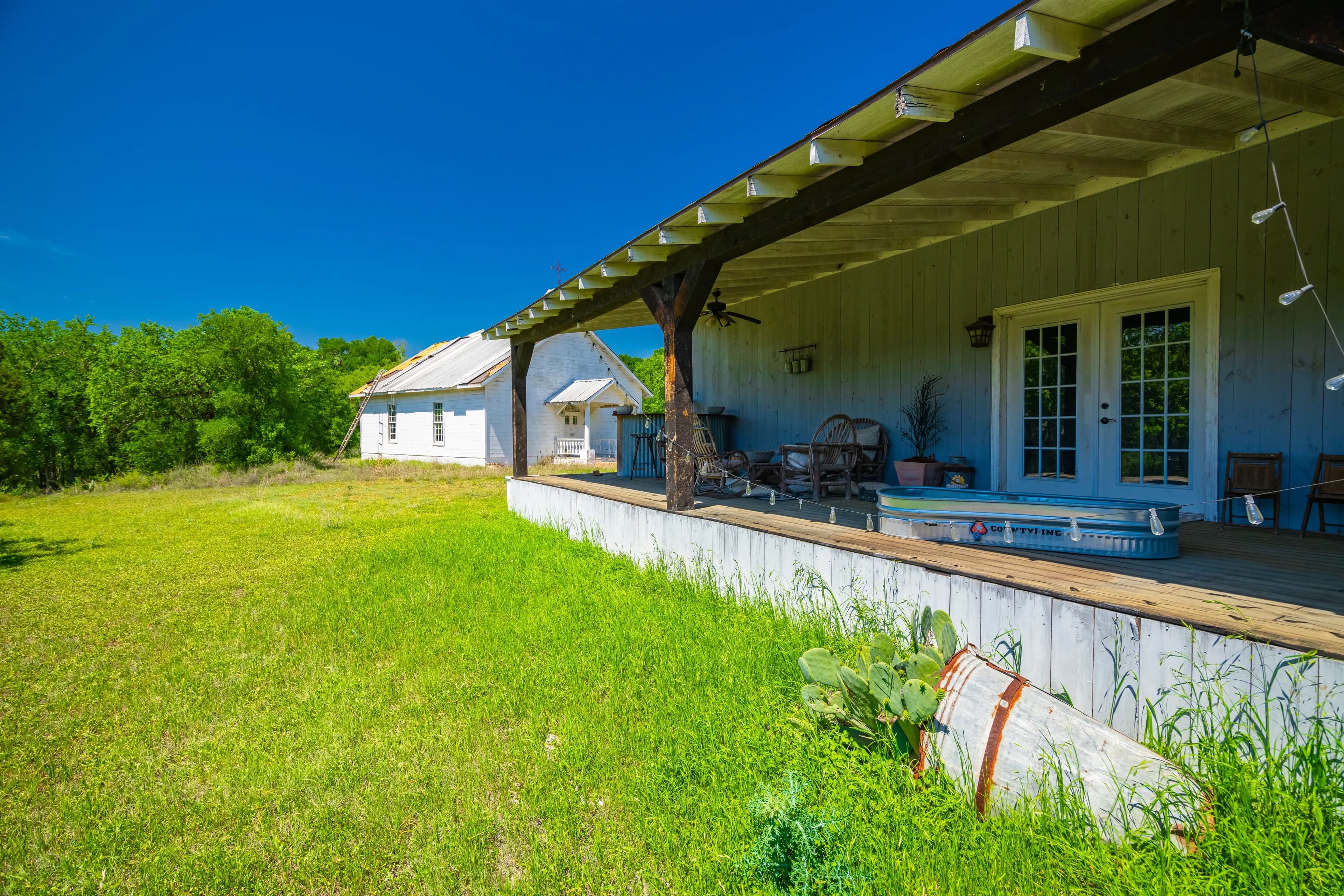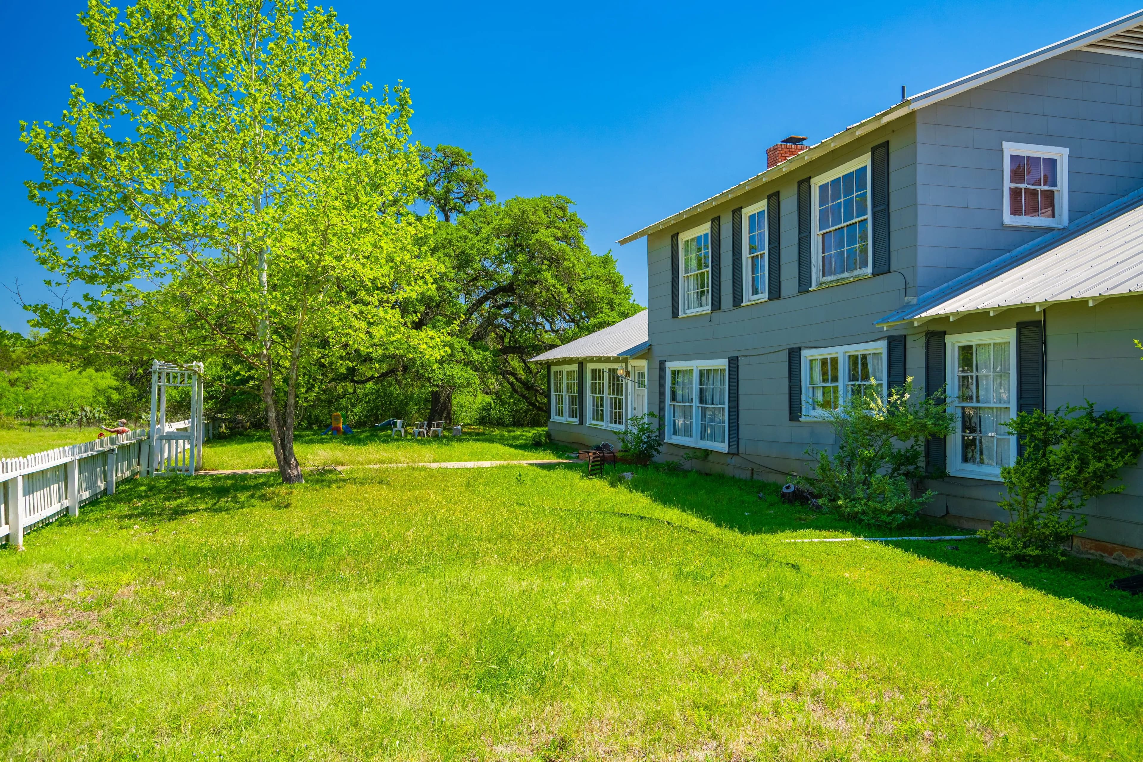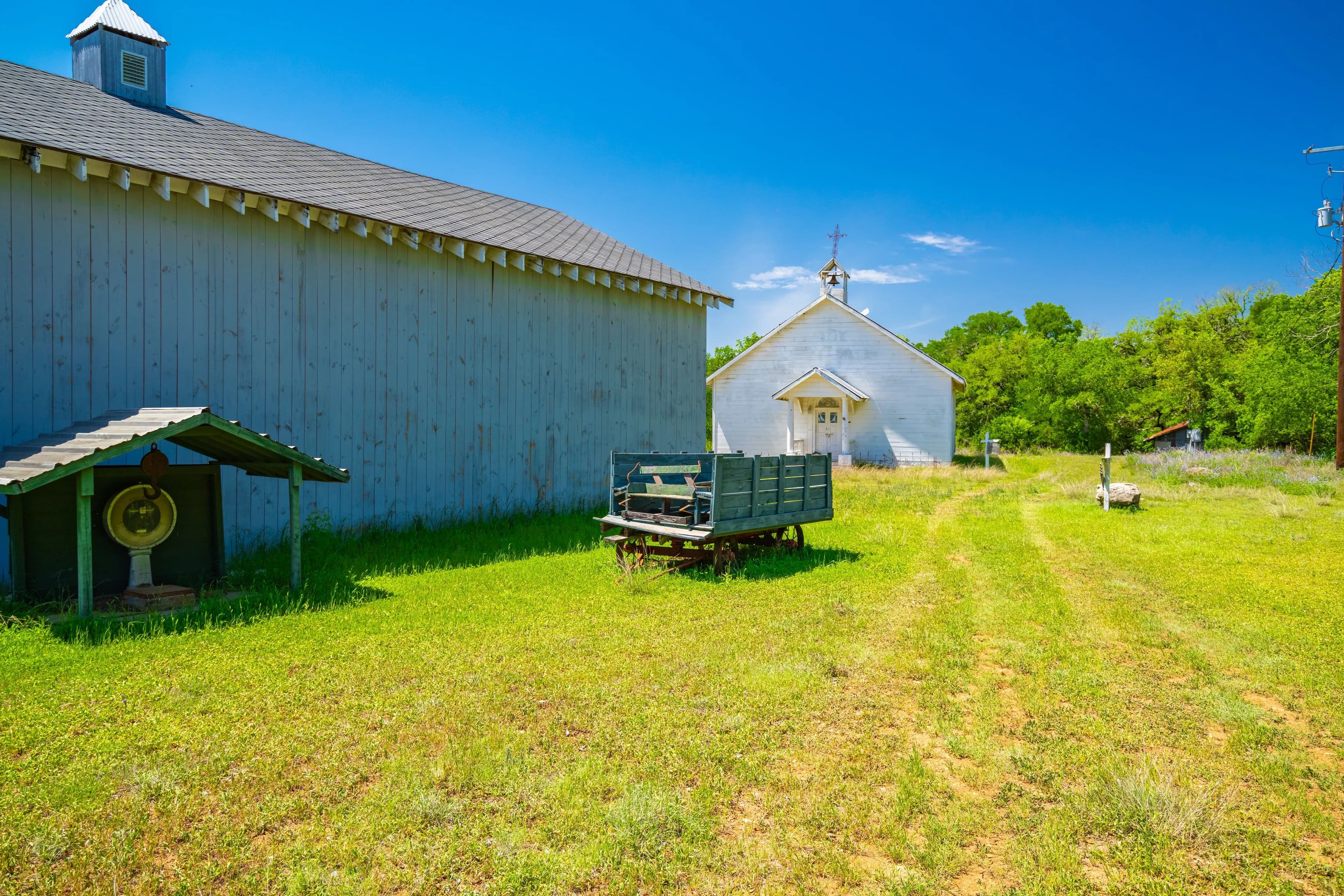 Nestled near the Spring Road entrance, the property features a 4,760 square foot two-story main house built in the 1950s with a two-car carport. The residence offers a charming farmhouse ambiance and includes four bedrooms, five bathrooms, and several living and dining spaces. Beyond the main house, additional improvements include two guest cottages, a log cabin, an outbuilding, an event center, and a private chapel. Both the event center and chapel were completed in 2020 and are event-ready. The property is perimeter fenced including some areas with cross fencing.